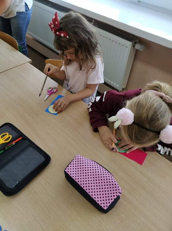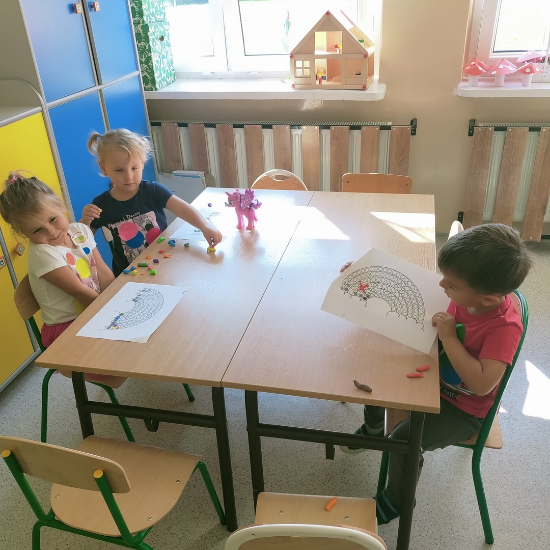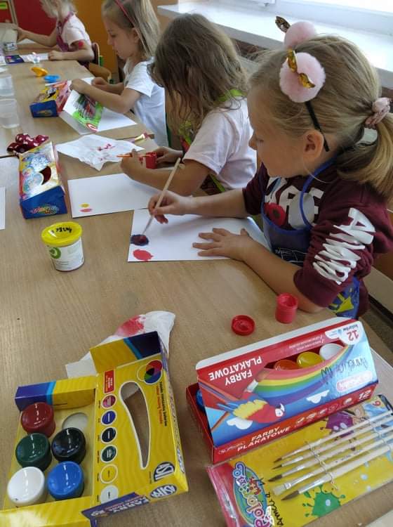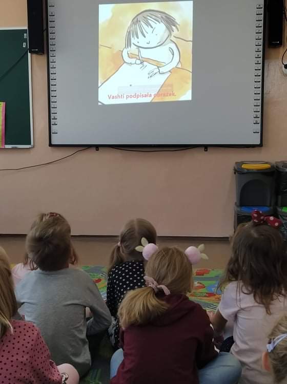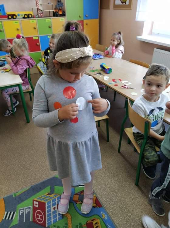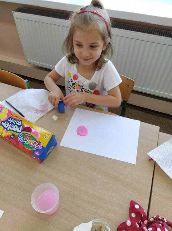 Wspólne świętowanie rozpoczęliśmy od obejrzenia krótkiej bajki o małej Vashti. Tego dnia ubrania przedszkolaków zostały wzbogacone akcentem kropek. Po projekcji filmu rozpoczęły się zabawy, tańce, wykonaliśmy też piękne prace plastyczne.
