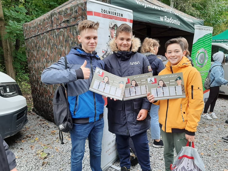 24 września, na zaproszenie Wójta Gminy Jedlińsk Kamila Dziewierza, uczniowie klas 8 z terenu gminy uczestniczyli w Mazowieckich Młodzieżowych Zawodach Strzeleckich Formacji Mundurowych. Organizatorzy, tj. Fabryka Broni "Łucznik" Radom, XI Liceum Ogólnokształcące z Oddziałami Integracyjnymi im. Stanisława Staszica w Radomiu, Gmina Jedlińsk, zadbali o atrakcyjną oprawę zawodów . Towarzyszący wydarzeniu piknik doskonale wpisał się w „Plan doradztwa zawodowego” naszej szkoły. Uczniowie poznali specyfikę zawodów mundurowych, m.in. policjanta, strażaka, ratownika medycznego i ratownika WOPR, inspektora transportu drogowego, funkcjonariusza służb granicznych. Mieli okazję uzyskać informacje o szkołach ponadpodstawowych w regionie, w których są klasy mundurowe, otrzymali wiele przydatnych materiałów promocyjnych. Ogromne zainteresowanie, szczególnie chłopców, wzbudziła broń i możliwość sprawdzenia swoich strzeleckich umiejętności oraz krótki pokaz technik samoobrony.