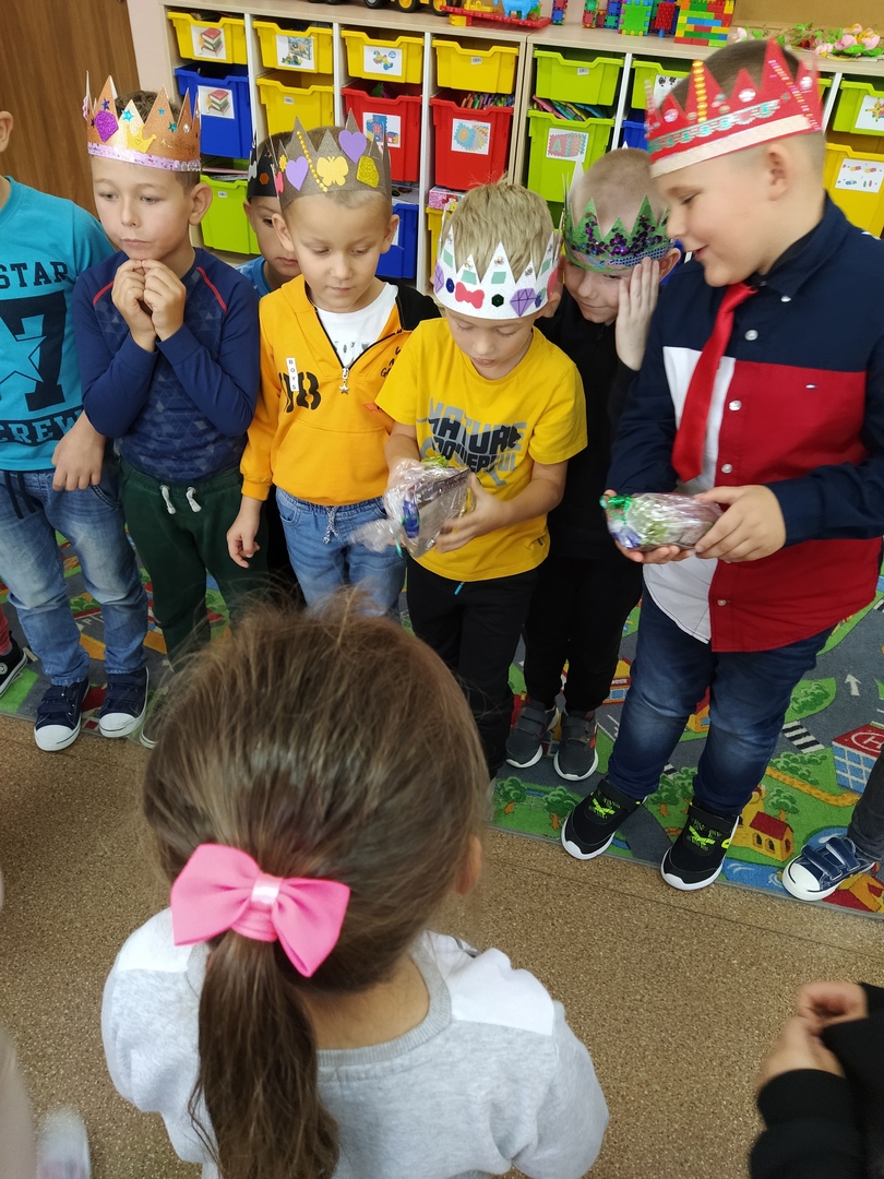 W ostatnim tygodniu września w naszym przedszkolu świętowaliśmy Dzień Chłopaka. W tym dniu dziewczynki wręczyły chłopcom pięknie ozdobione korony, dyplomy oraz złożyły życzenia. Był to czas pełen wrażeń, radości i dobrej zabawy. Nie zabrakło także słodkiego poczęstunku.