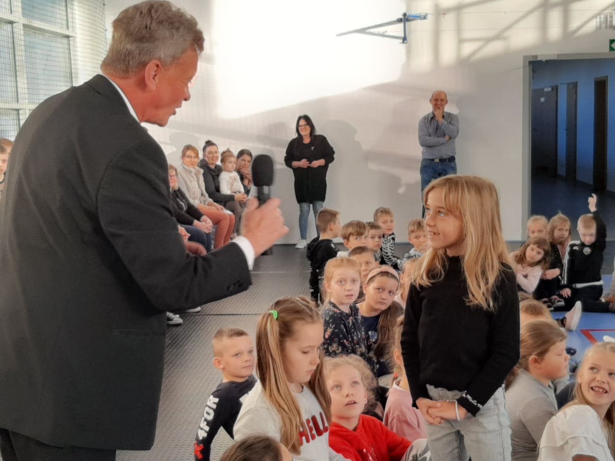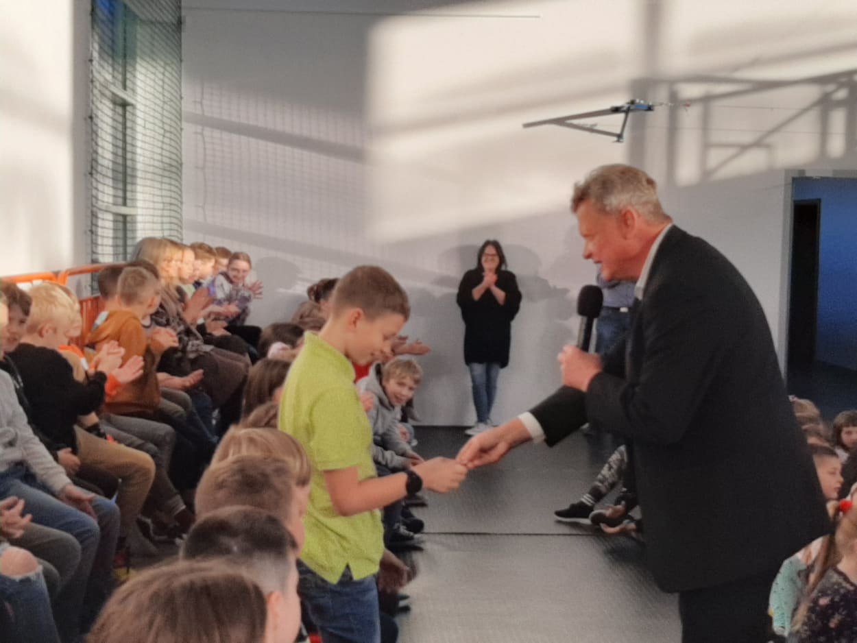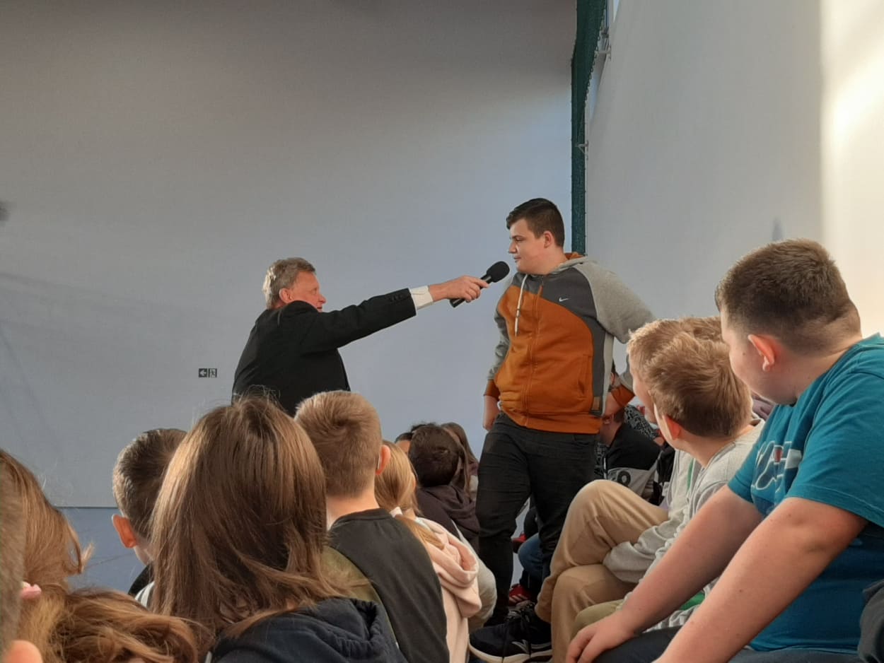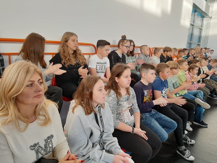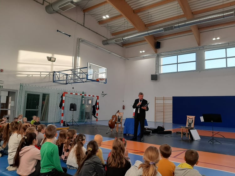 Uczniowie utrwalili swoją wiedzę o instrumentach smyczkowych, rozwiązywali muzyczne zagadki, a nawet próbowali swoich sił w trudnej sztuce dyrygowania.