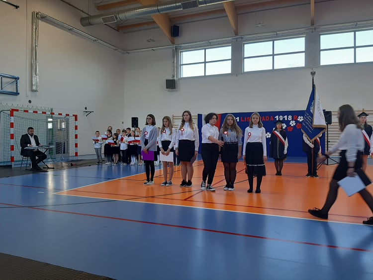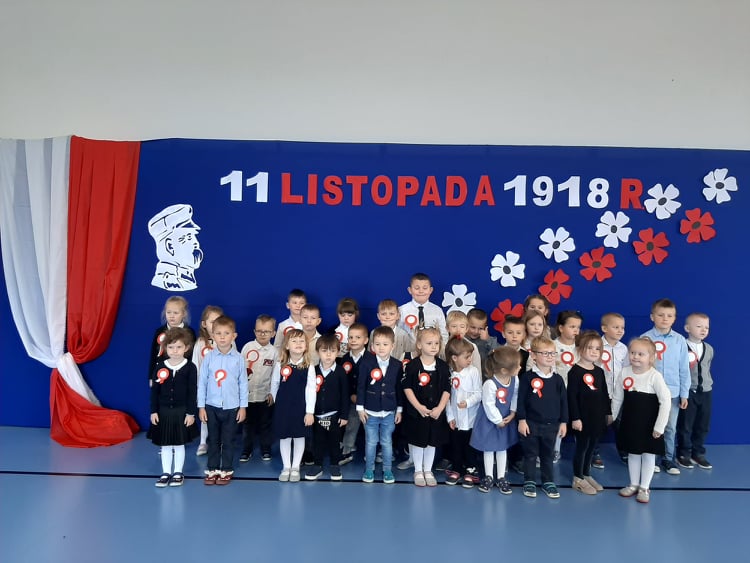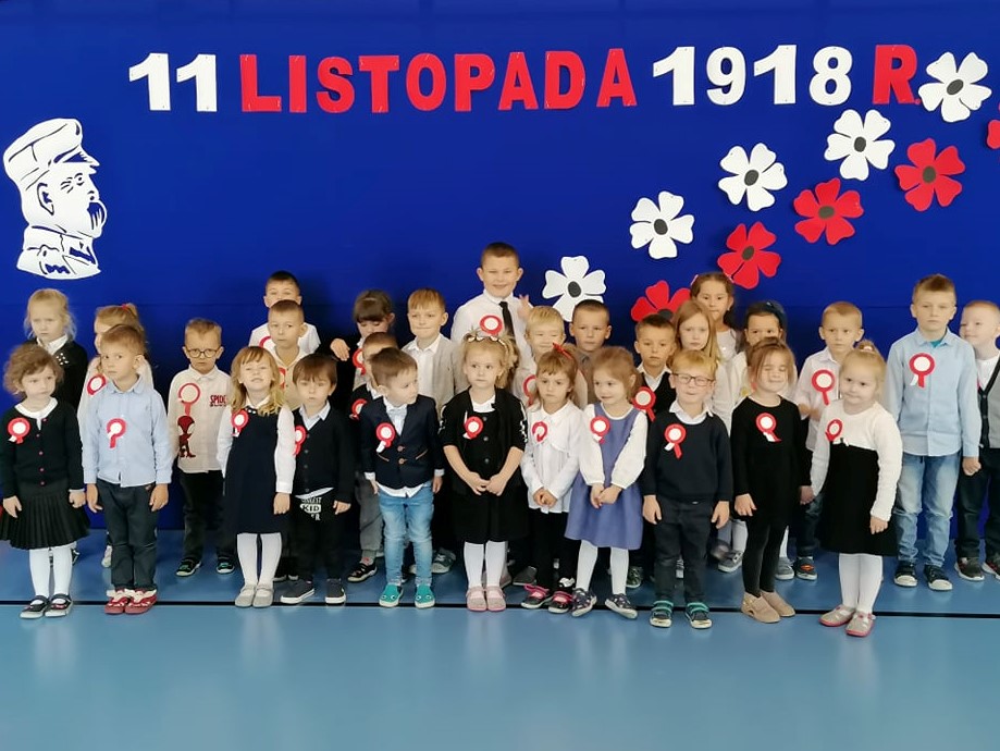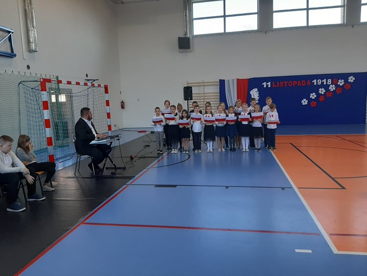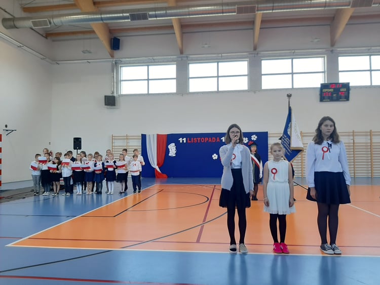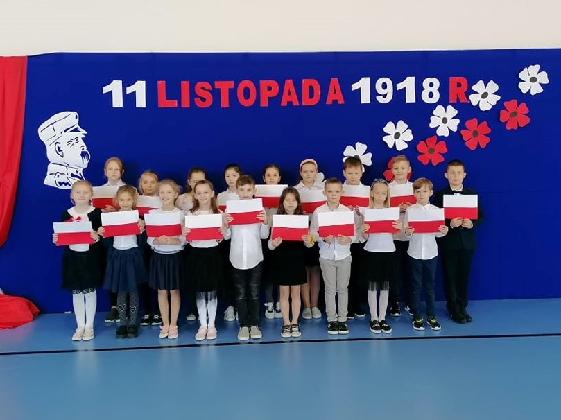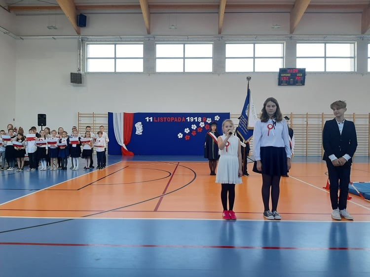 Pomimo obowiązującego reżimu sanitarnego, społeczność szkolna godnie uczciła Narodowe Święto Niepodległości. Korytarze oraz sale lekcyjne zostały ozdobione pracami w biało-czerwonych barwach. Punktualnie o godzinie 11.11, zgodnie z regulaminem akcji „Szkoła do hymnu”, zgromadzeni w sali gimnastycznej uczniowie, nauczycieli i pracownicy odśpiewali 4 zwrotki hymnu państwowego. Następnie zaprezentowany został krótki montaż słowno-muzyczny z udziałem dzieci z oddziałów przedszkolnych, chóru klasy III oraz uczniów klas VII i VIII. Na zakończenie uroczystości wiersze patriotyczne wygłosili laureaci XXV Gminnego Konkursu Poezji.