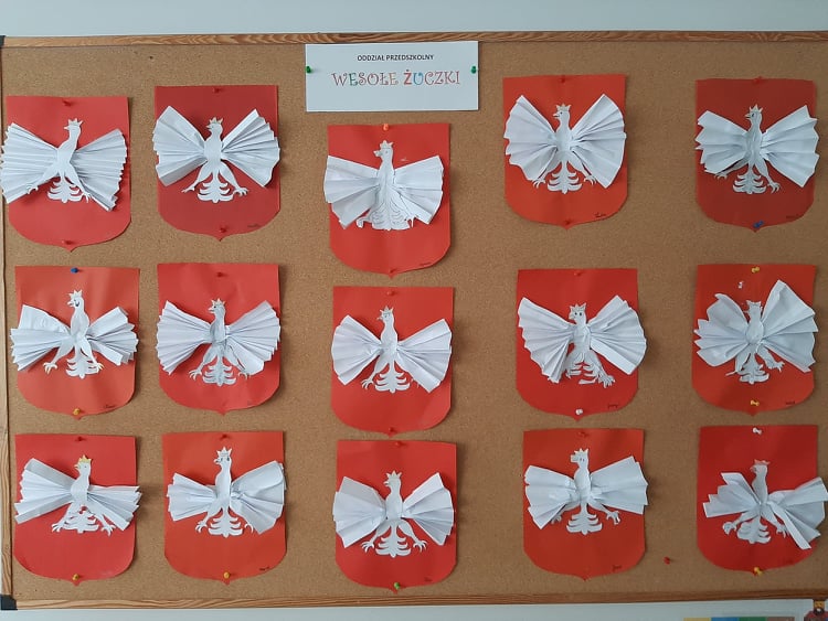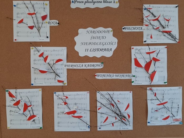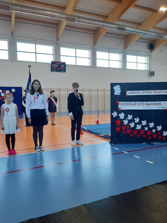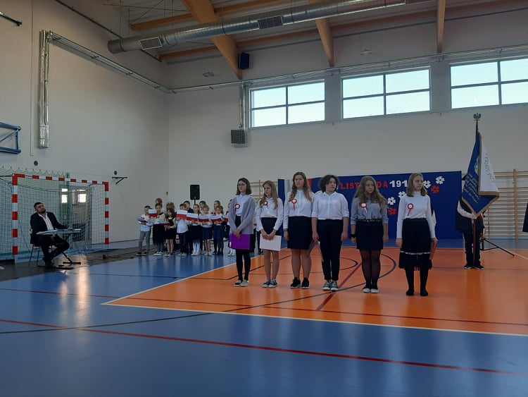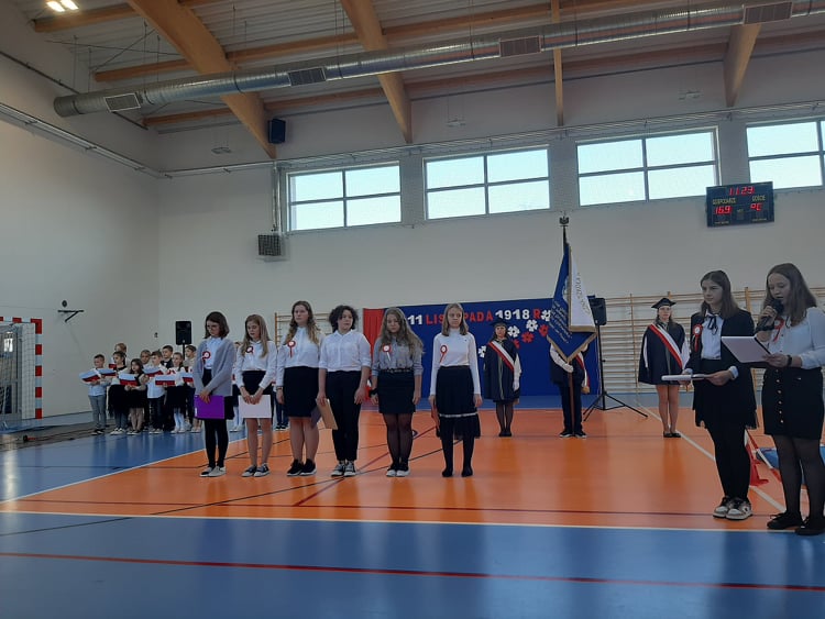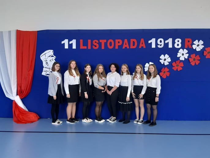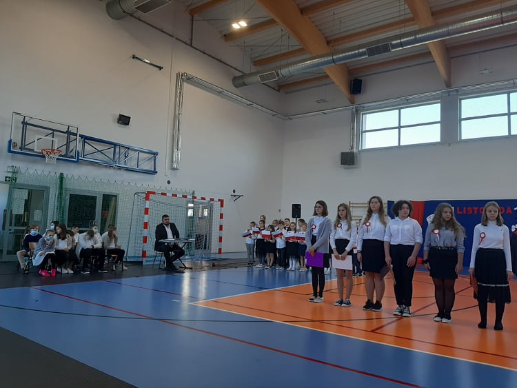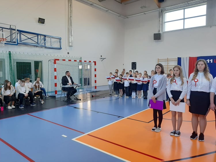 Pomimo obowiązującego reżimu sanitarnego, społeczność szkolna godnie uczciła Narodowe Święto Niepodległości. Korytarze oraz sale lekcyjne zostały ozdobione pracami w biało-czerwonych barwach. Punktualnie o godzinie 11.11, zgodnie z regulaminem akcji „Szkoła do hymnu”, zgromadzeni w sali gimnastycznej uczniowie, nauczycieli i pracownicy odśpiewali 4 zwrotki hymnu państwowego. Następnie zaprezentowany został krótki montaż słowno-muzyczny z udziałem dzieci z oddziałów przedszkolnych, chóru klasy III oraz uczniów klas VII i VIII. Na zakończenie uroczystości wiersze patriotyczne wygłosili laureaci XXV Gminnego Konkursu Poezji.