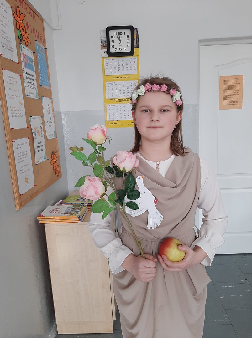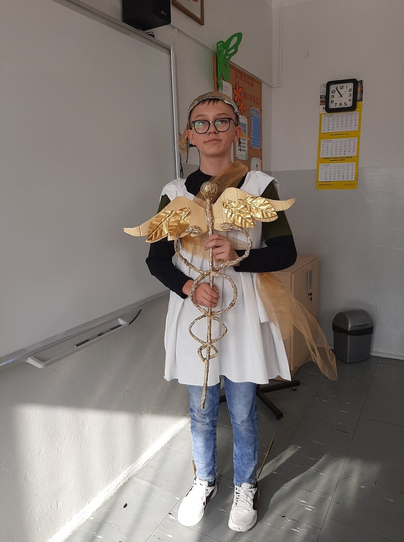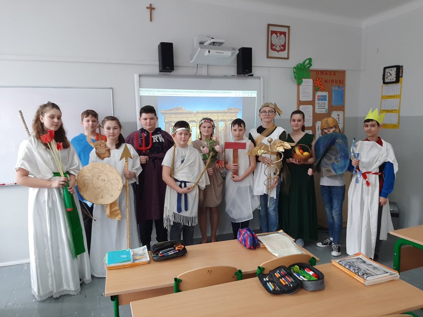 Miniprojekt edukacyjny dla uczniów klasy piątej „Z wizytą na Olimpie” utrwalał wiadomości z historii i języka polskiego dotyczące politeistycznej religii mieszkańców starożytnej Grecji. Uczniowie sami wybrali boginię/boga, samodzielnie przygotowali wiadomości, które prezentowali na lekcji podsumowującej projekt oraz przebranie i atrybuty charakterystyczne dla wybranej postaci.