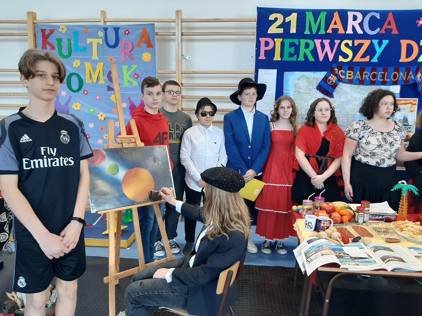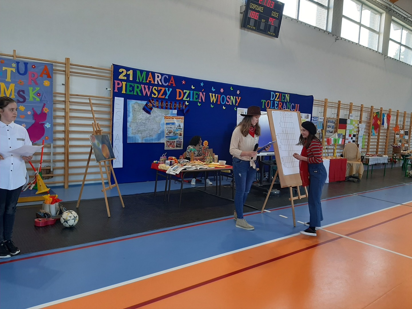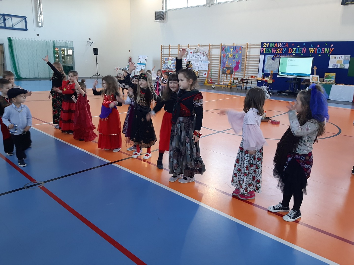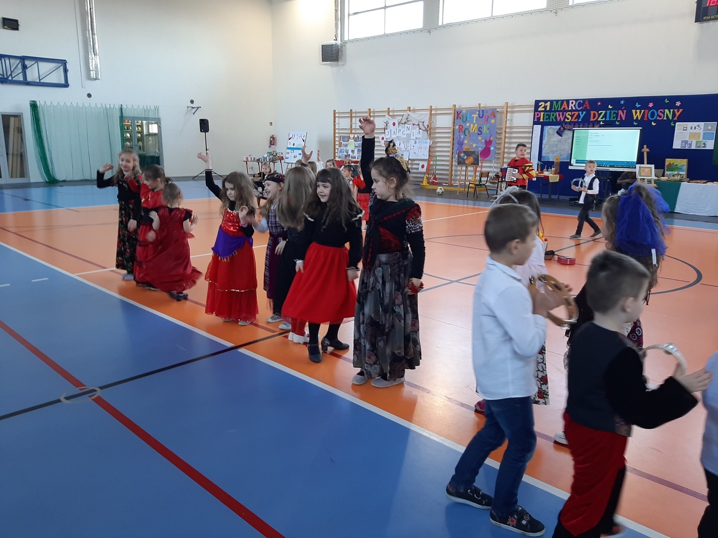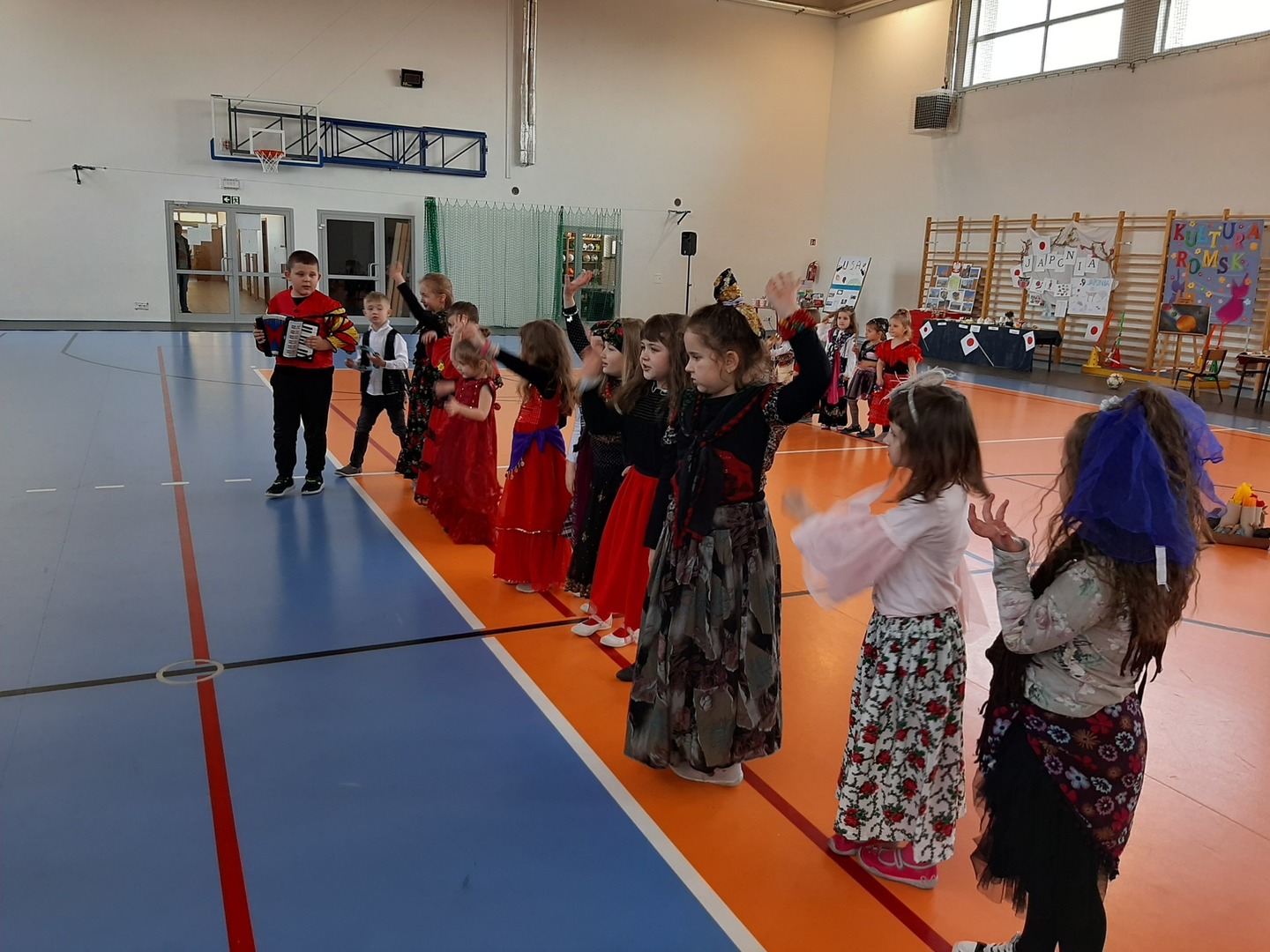 W ramach obchodów Dnia Tolerancji każda klasa, a nawet oddziały przedszkolne, przedstawiły informacje o wybranym kraju lub mniejszości etnicznej. Uczniowie przygotowali przepiękne ekspozycje, prezentacje multimedialne, stroje i regionalne potrawy. Dzisiaj podróżowaliśmy bez ograniczeń! Odwiedziliśmy daleką Japonię, obejrzeliśmy romskie tańce, zachwyciły nas lawendowe pola Prowansji i flamenco w słonecznej Hiszpanii. Jedni poznawali greckich bogów i niemieckich kompozytorów, a inni zajadali się włoskim spaghetti, amerykańskim popcornem i... polskimi pierogami.