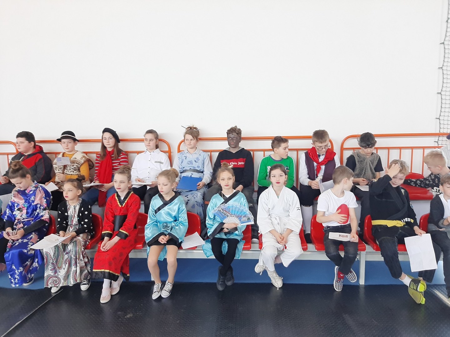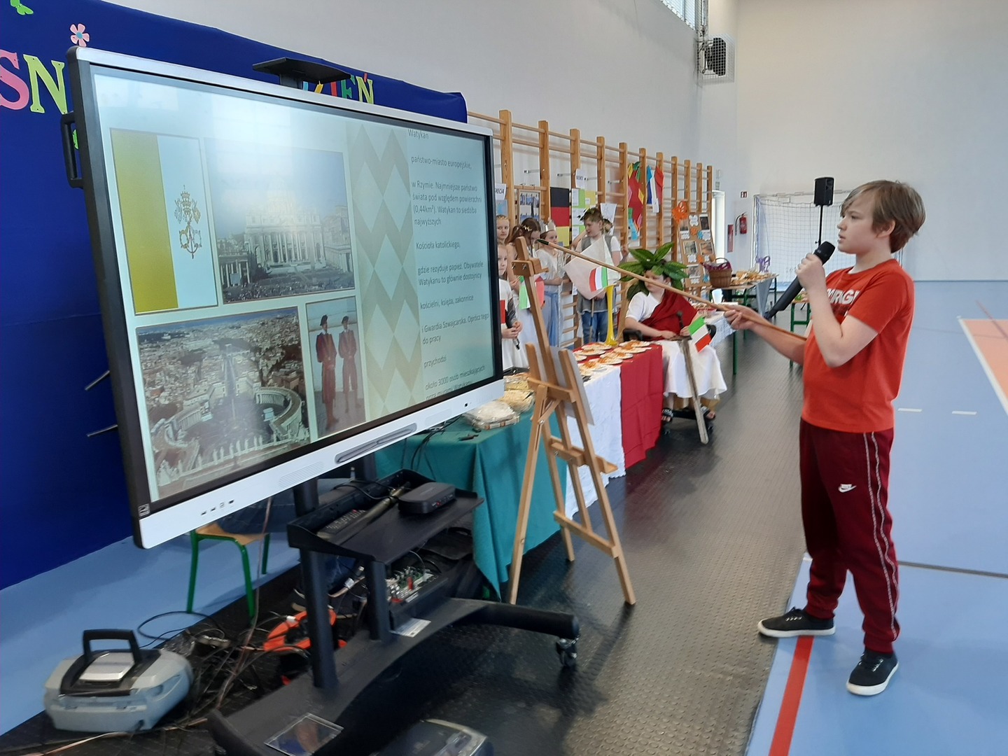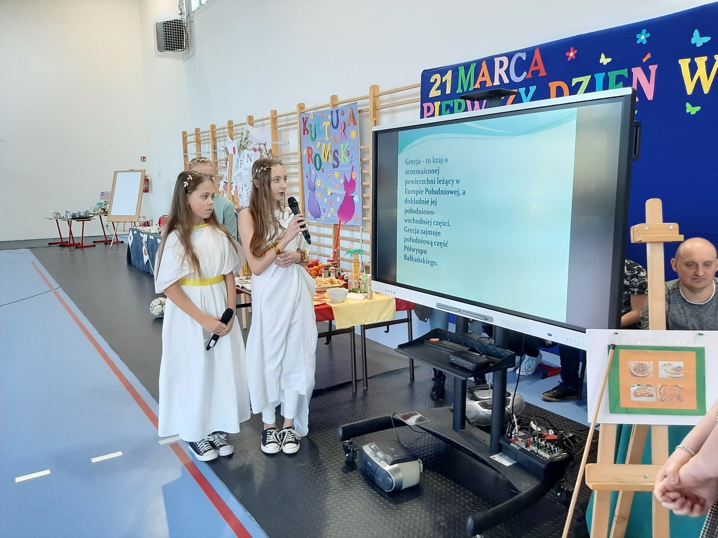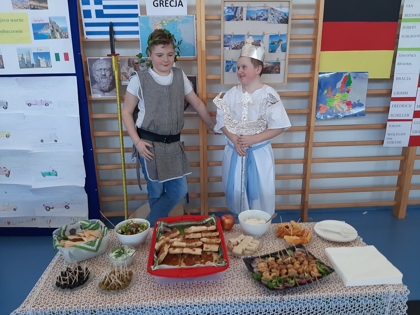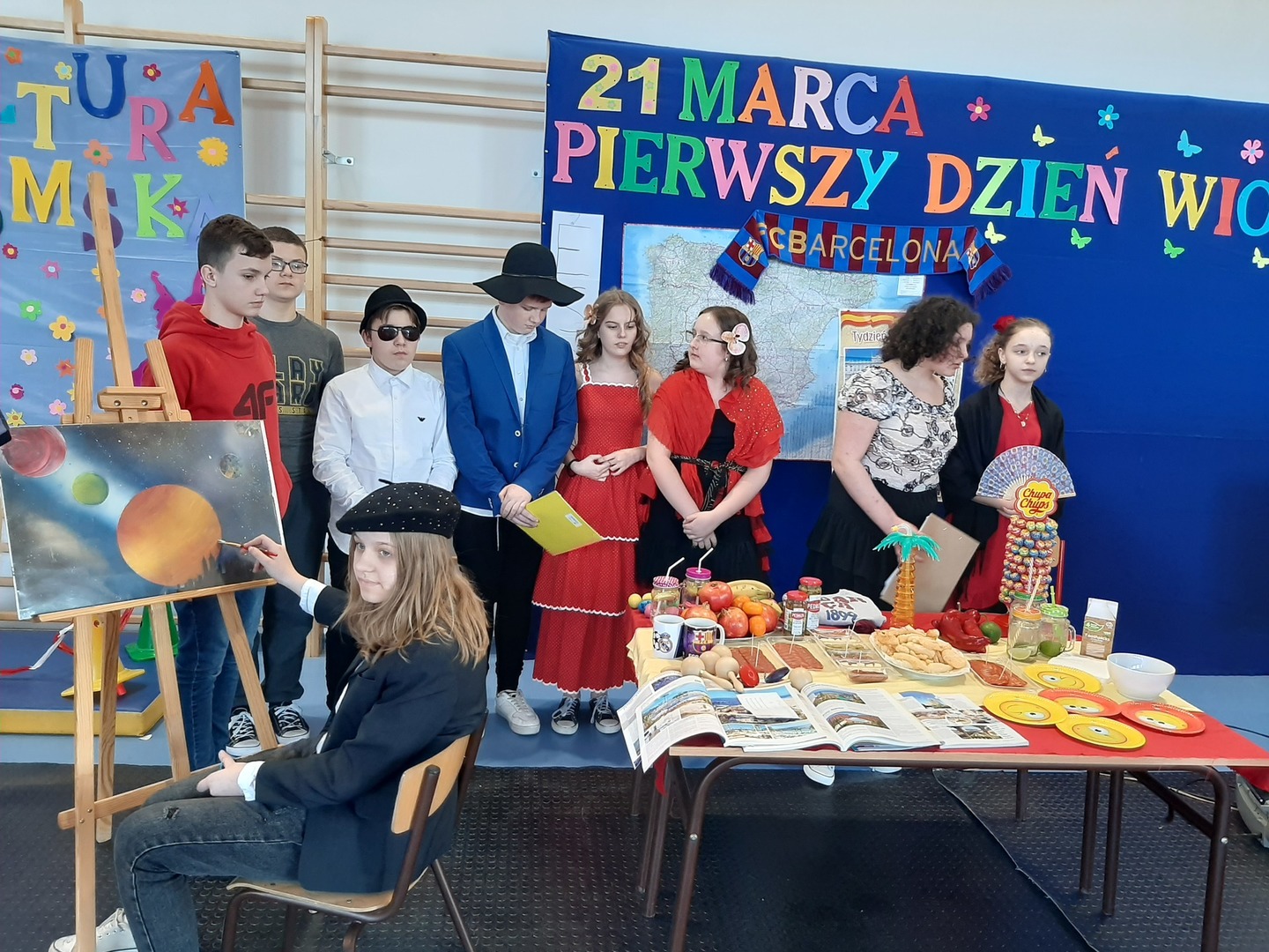 W ramach obchodów Dnia Tolerancji każda klasa, a nawet oddziały przedszkolne, przedstawiły informacje o wybranym kraju lub mniejszości etnicznej. Uczniowie przygotowali przepiękne ekspozycje, prezentacje multimedialne, stroje i regionalne potrawy. Dzisiaj podróżowaliśmy bez ograniczeń! Odwiedziliśmy daleką Japonię, obejrzeliśmy romskie tańce, zachwyciły nas lawendowe pola Prowansji i flamenco w słonecznej Hiszpanii. Jedni poznawali greckich bogów i niemieckich kompozytorów, a inni zajadali się włoskim spaghetti, amerykańskim popcornem i... polskimi pierogami.