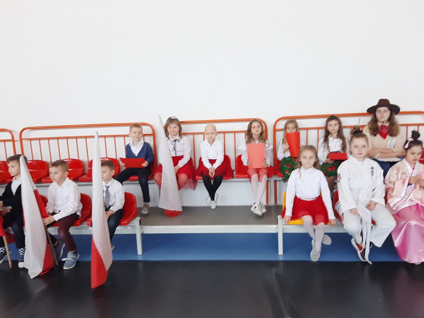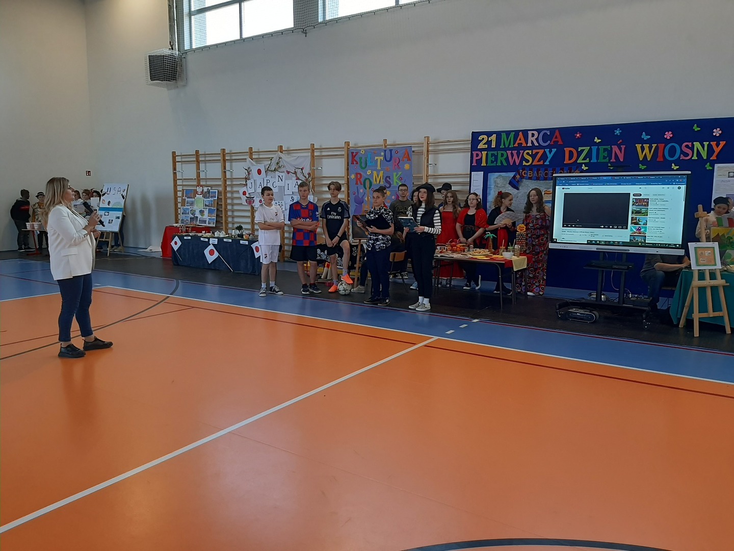 Wszystkich nas wzruszył występ uczniów klasy VIII, którzy przypięli do ubrań niebiesko-żółte wstążki na znak solidarności z narodem ukraińskim. Na zakończenie swojej prezentacji poprosili o uczczenie minutą ciszy poległych i zaprotestowali przeciwko wojnie.