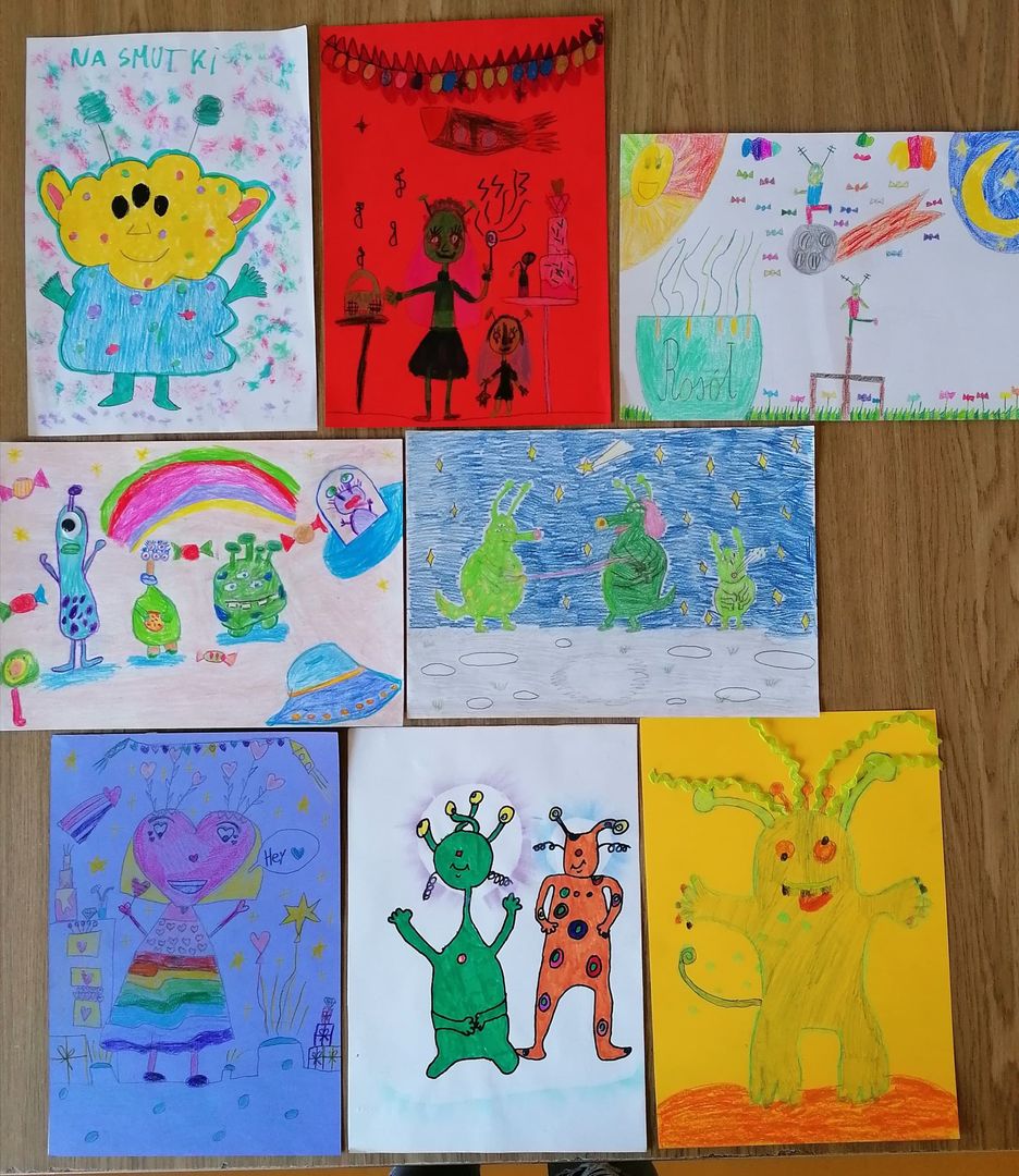 Konkurs dedykowany był dla uczniów klas I-III uczęszczających do świetlicy szkolnej. Postać ufoludka, który rozprasza wszystkie smutki, uczestnicy tworzyli na podstawie treści wiersza Agnieszki Frączek pt.” Na smutki” oraz własnej wyobraźni.