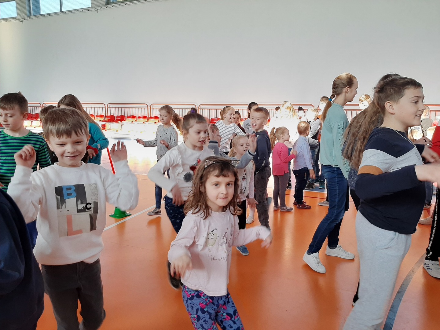 Tematem przewodnim ostatnich zajęć była wiosna. Dzieci naśladowały budzącą się z zimowego snu przyrodę – rosły w rytm muzyki, kumkały jak żabki, imitowały lot motyla.