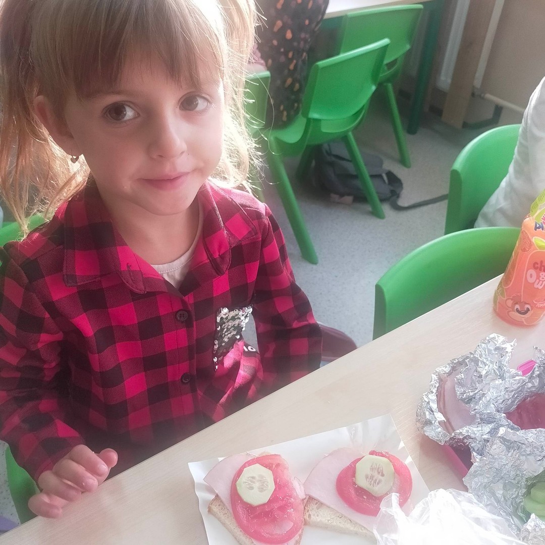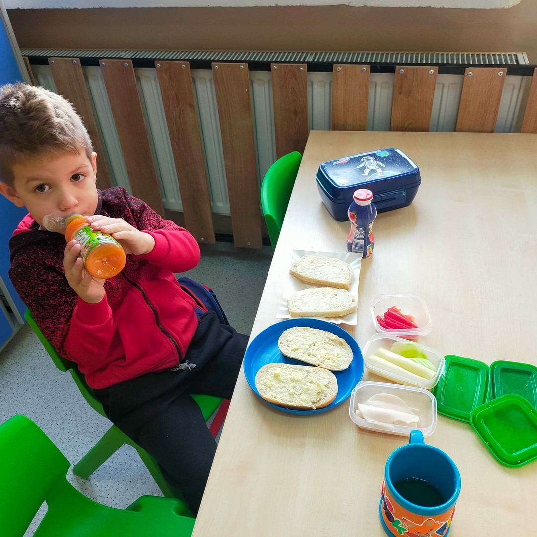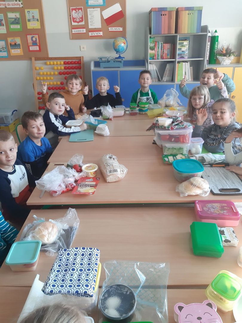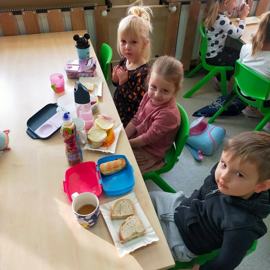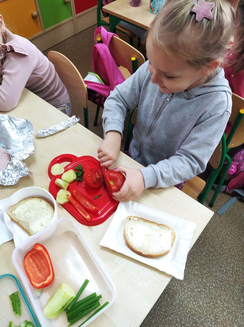 W dniach 8 i 9 listopada dzieci z oddziałów przedszkolnych i klasy 1 wraz z wychowawczyniami wzięły udział w pięknej akcji promującej zdrowe odżywianie podczas wspólnego śniadania, przygotowując smaczne i zdrowe kanapki. Podczas zajęć dzieci dowiedziały się, że śniadanie to najważniejszy posiłek dnia. Dzięki niemu dzieci mają energię do nauki, lepiej koncentrują się podczas lekcji i mają siłę do zabawy. To najlepszy start w nowy dzień! Oprócz tego przeprowadzono pogadanki na temat roli śniadania, jako najważniejszego posiłku w ciągu dnia. Uczniowie dowiedzieli się również, że zdrowe odżywianie to nie tylko zdrowa żywność. Ważne jest też, aby jeść pięć posiłków w ciągu dnia, o stałych porach i bez pośpiechu, systematycznie sięgać po nabiał, ryby i mięsa oraz ciemny chleb zamiast bułek, a także picie soków czy wody zamiast szkodliwych napojów gazowanych. Wspomniano też o niezbędnym ruchu oraz unikaniu słodyczy i chipsów, które są niezdrowe.
