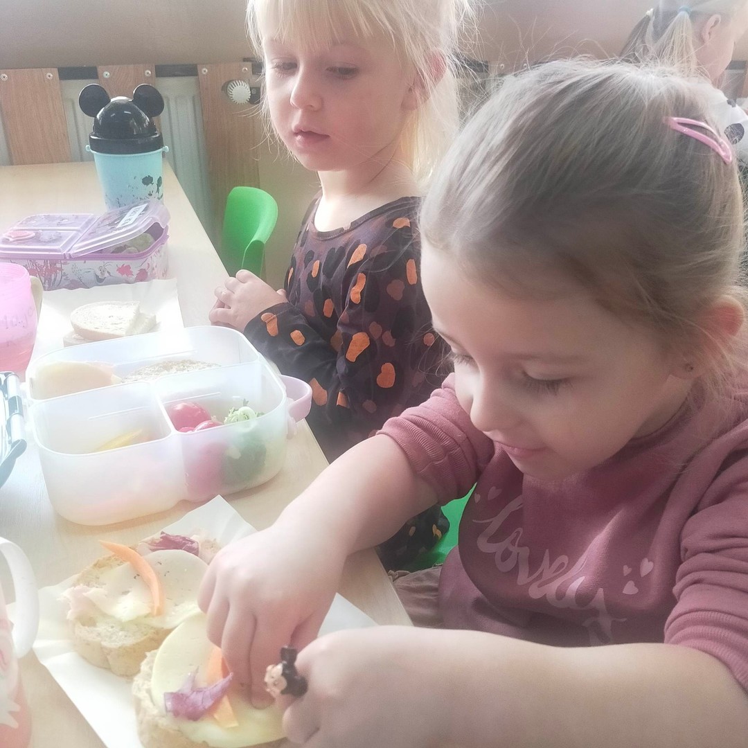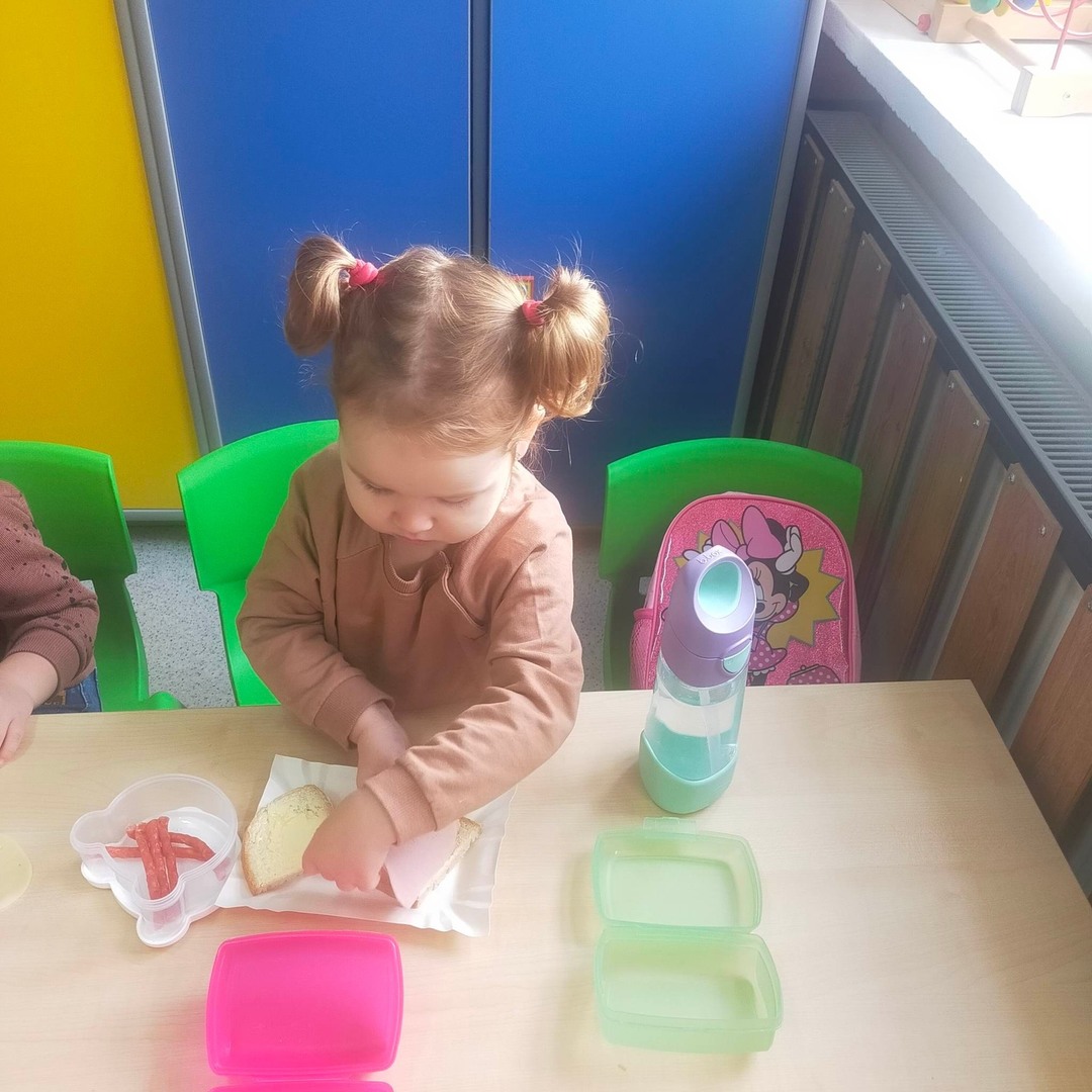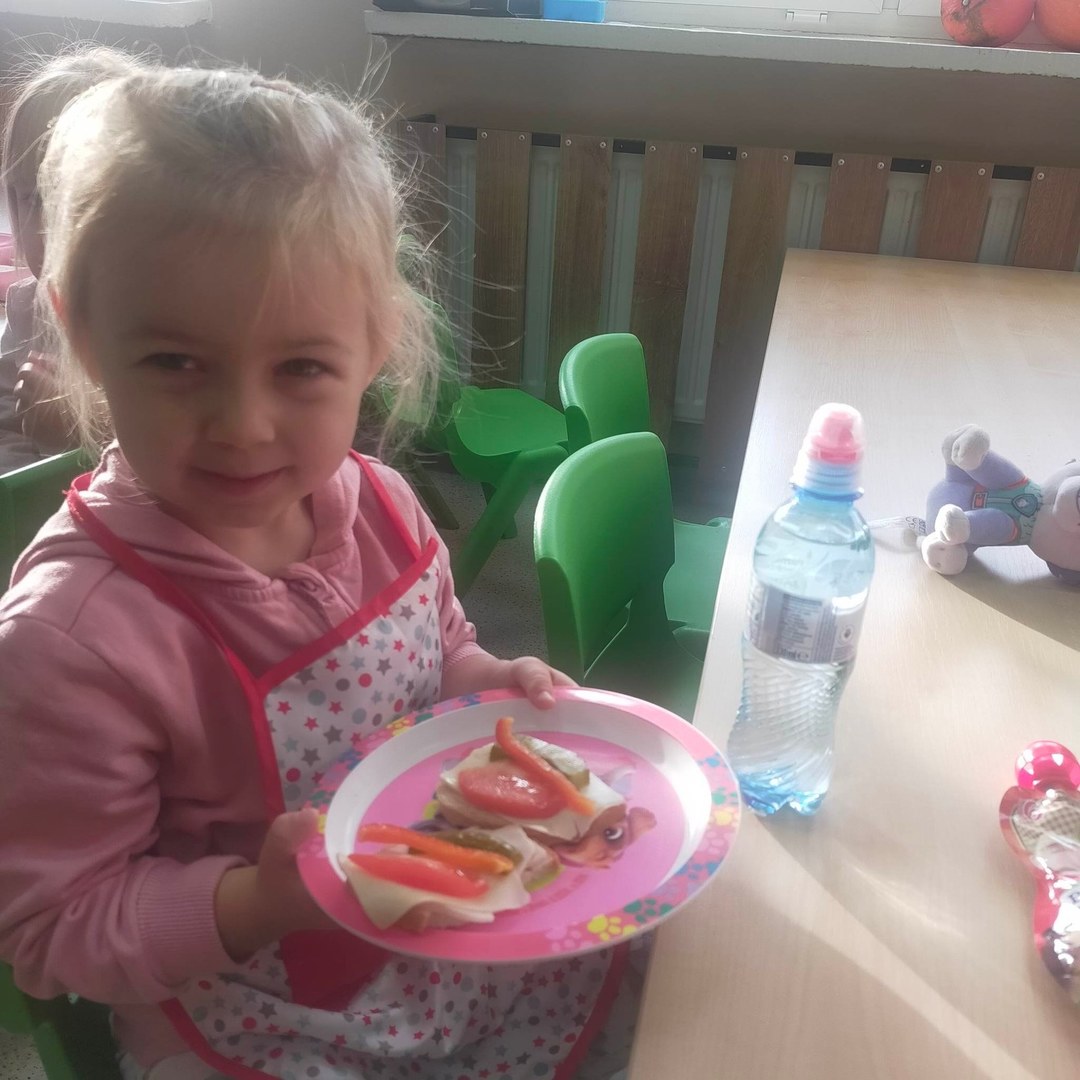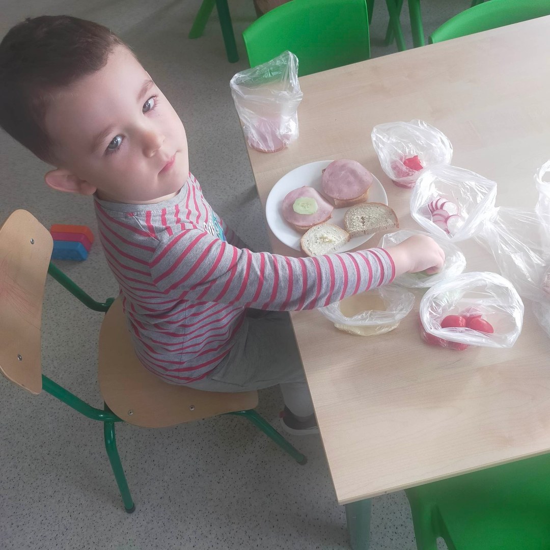 W dniach 8 i 9 listopada dzieci z oddziałów przedszkolnych i klasy 1 wraz z wychowawczyniami wzięły udział w pięknej akcji promującej zdrowe odżywianie podczas wspólnego śniadania, przygotowując smaczne i zdrowe kanapki. Podczas zajęć dzieci dowiedziały się, że śniadanie to najważniejszy posiłek dnia. Dzięki niemu dzieci mają energię do nauki, lepiej koncentrują się podczas lekcji i mają siłę do zabawy. To najlepszy start w nowy dzień! Oprócz tego przeprowadzono pogadanki na temat roli śniadania, jako najważniejszego posiłku w ciągu dnia. Uczniowie dowiedzieli się również, że zdrowe odżywianie to nie tylko zdrowa żywność. Ważne jest też, aby jeść pięć posiłków w ciągu dnia, o stałych porach i bez pośpiechu, systematycznie sięgać po nabiał, ryby i mięsa oraz ciemny chleb zamiast bułek, a także picie soków czy wody zamiast szkodliwych napojów gazowanych. Wspomniano też o niezbędnym ruchu oraz unikaniu słodyczy i chipsów, które są niezdrowe.