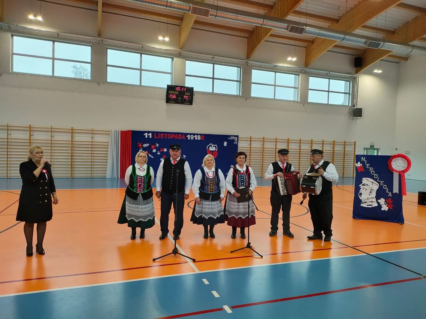 Na zakończenie do wspólnego śpiewania utworów patriotycznych zaprosił wszystkich uczestników akademii zespół ludowy “Czerwone Korale”.