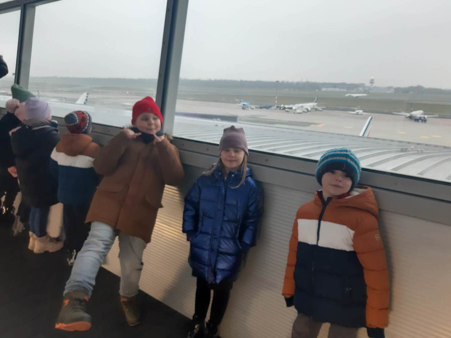 Kolejnym punktem wycieczki był taras widokowy na lotnisku Chopina. Dzieci zobaczyły starty i lądowania kilku samolotów oraz zakupiły pamiątki. Na koniec naszej wycieczki pojechaliśmy do McDonald’s.