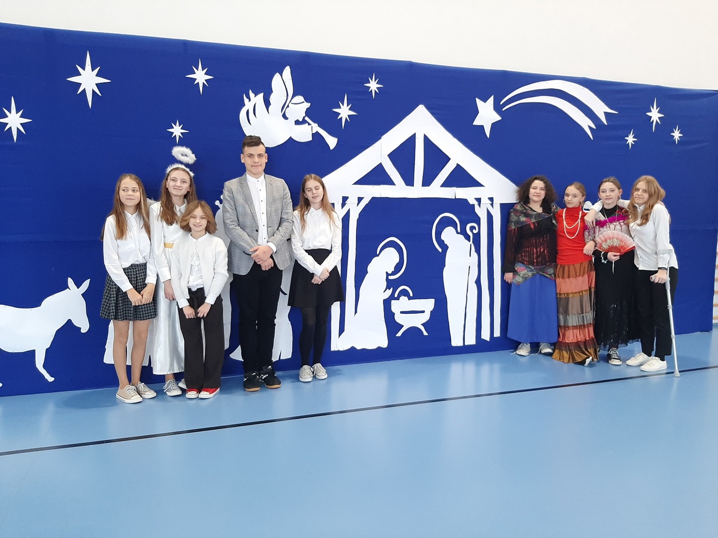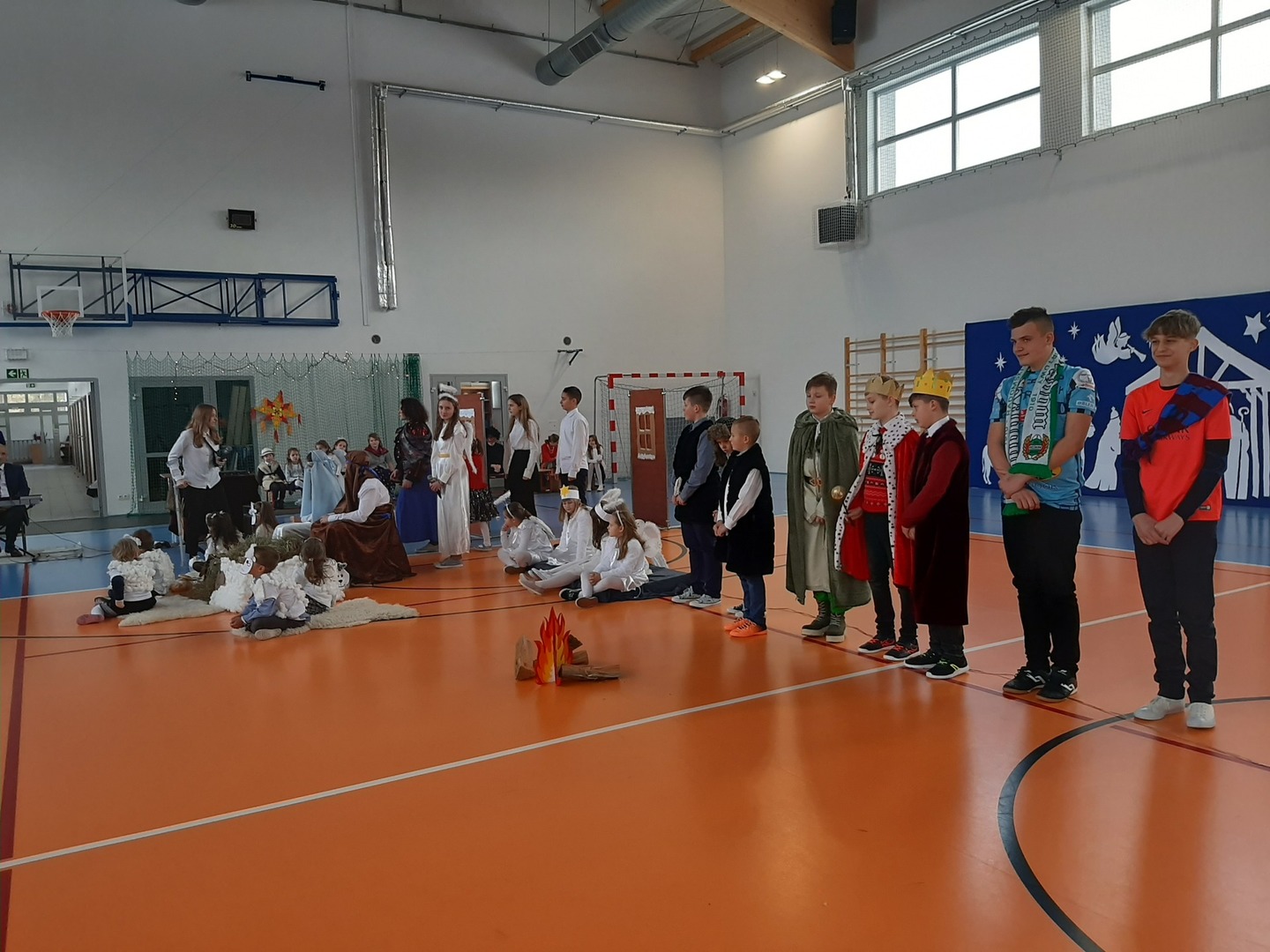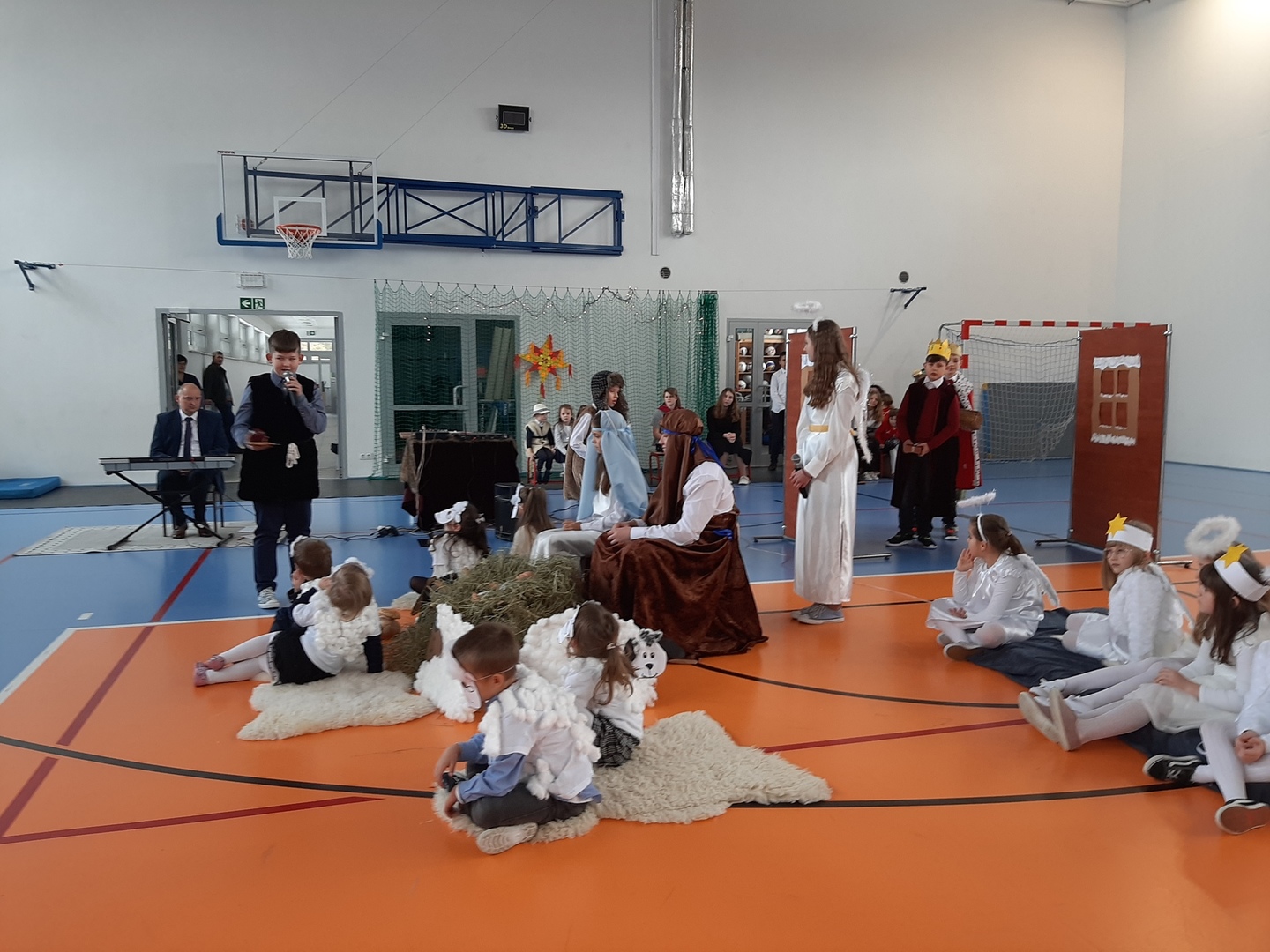 Otóż właśnie Jezus narodził się dziś TU – w Ludwikowie, w naszej szkole. A to za przyczyną przedstawienia, które przypomniało tę , jakże wzruszającą, biblijną historię. Była w tej historii oczywiście Maryja, był Józef, pasterze i królowie. Był żłobek i siano…