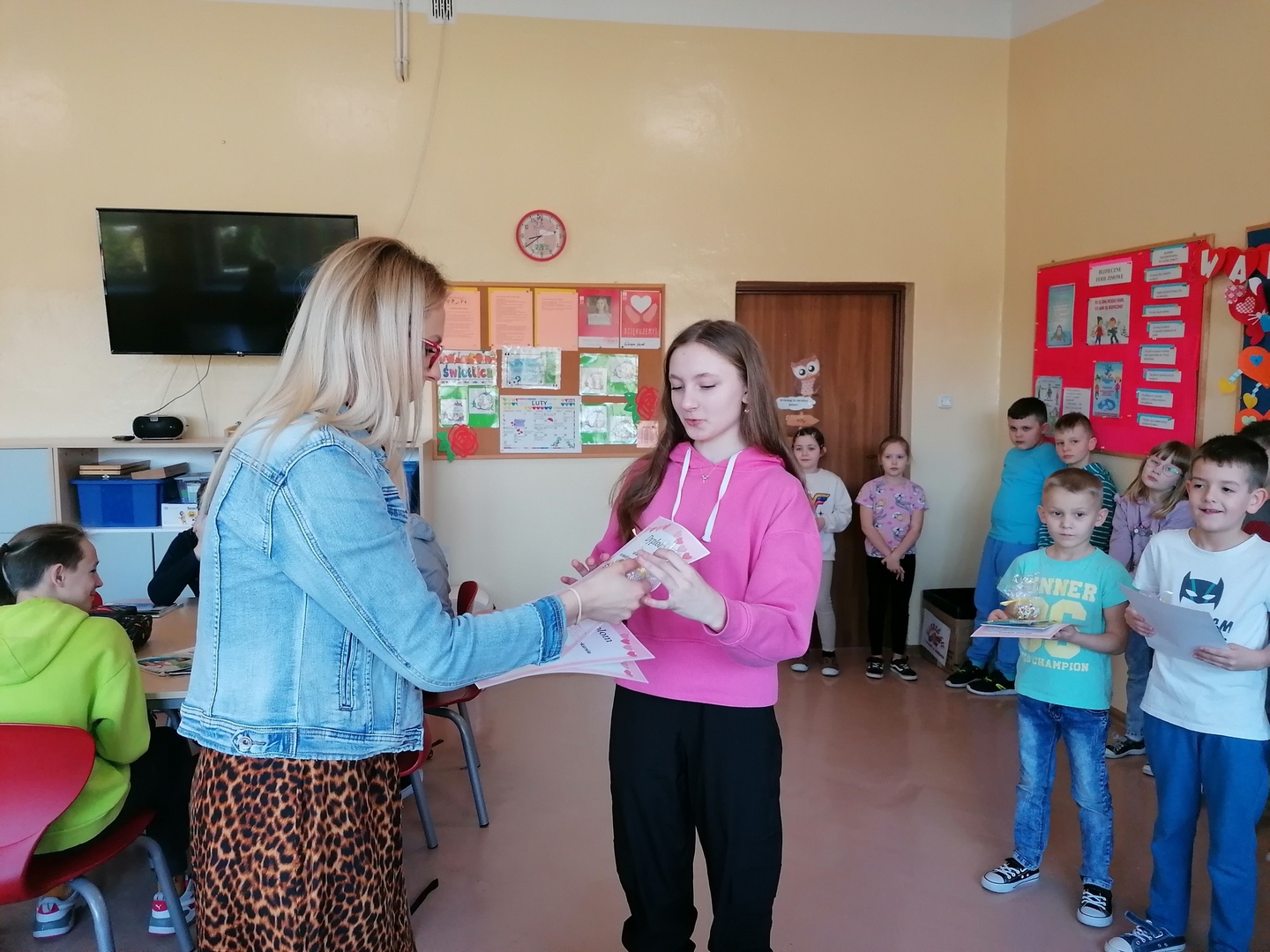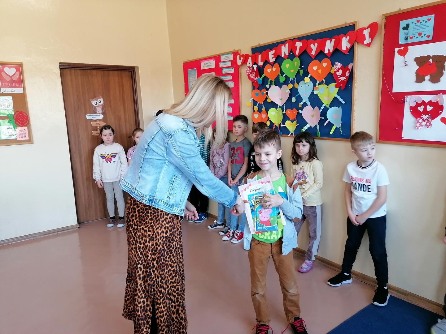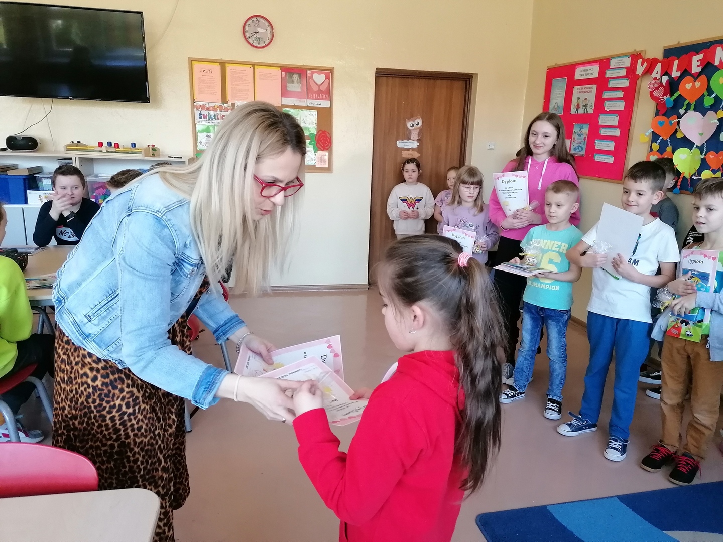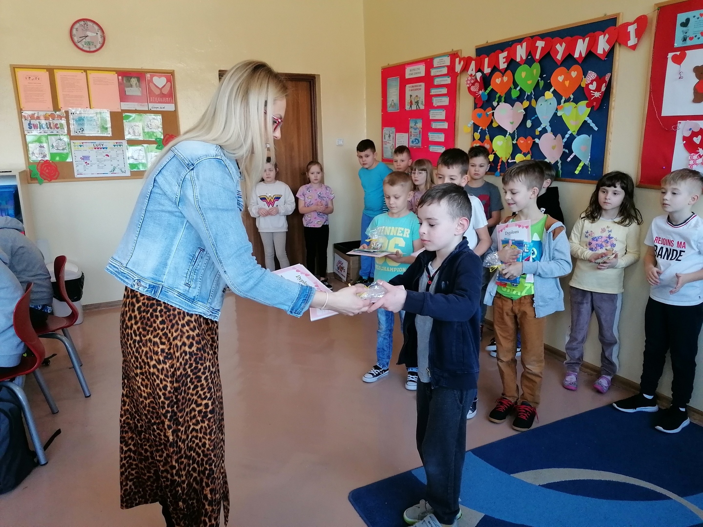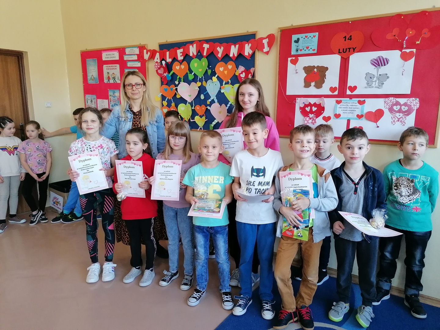 W dniu 1 marca 2023 roku w świetlicy szkolnej nastąpiło rozstrzygnięcie konkursu "Plakat walentynkowy". Zadaniem dzieci było wykonanie dowolną techniką pracy przedstawiającej symbole walentynkowe.