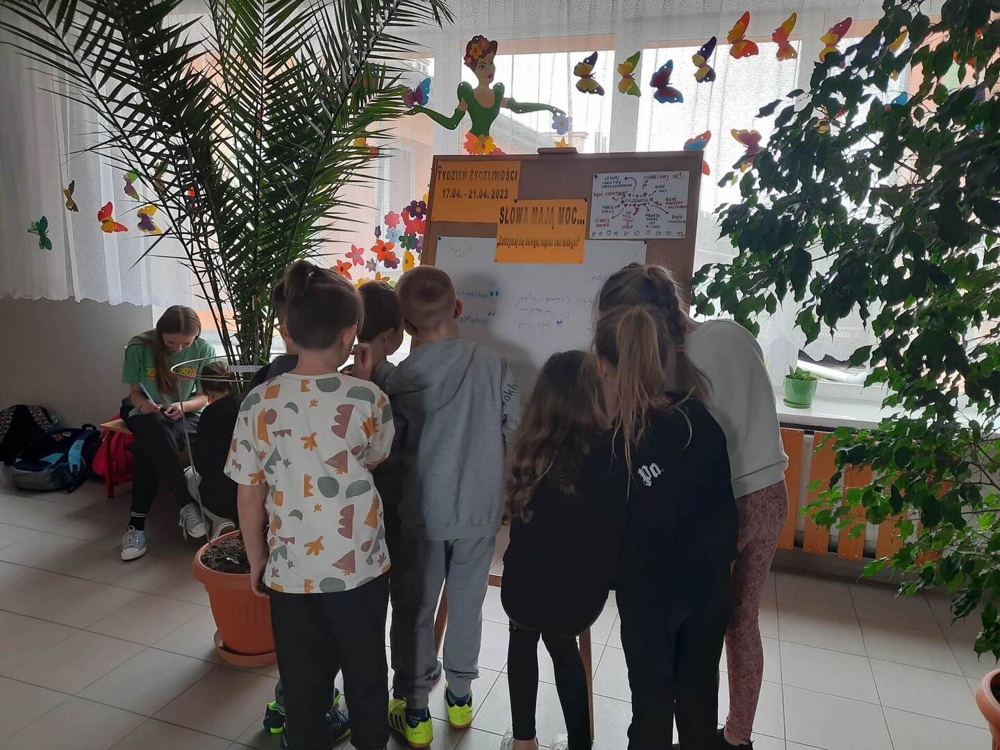 W dniach od 17 do 22 kwietnia 2023r. w PSP im. Jana Pawła II w Ludwikowie biblioteka szkolna i SU zorganizowali akcję „Słowa maja moc - Tydzień Życzliwości”.