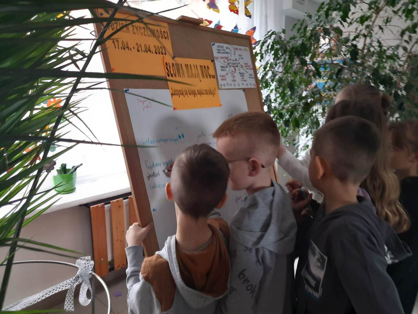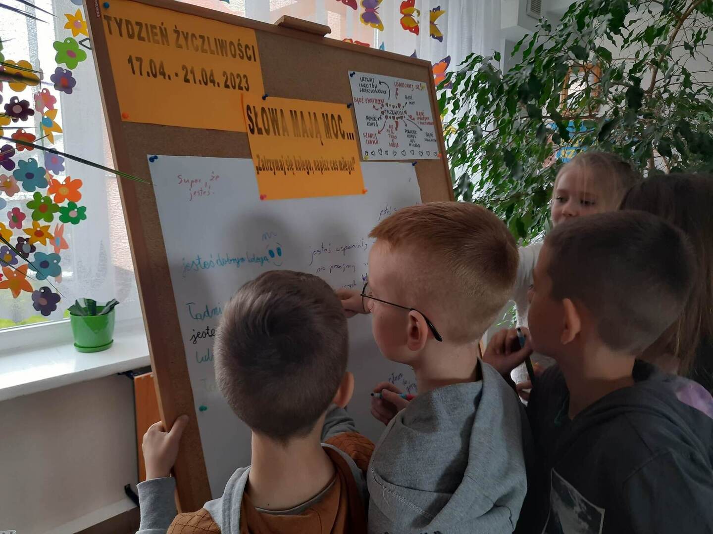 - 17.04.2023r. na holu ustawiona została „Szkolna Tablica Życzliwości”, która cieszyła się ogromnym zainteresowaniem, na każdej przerwie, każdego dnia była oblegana. Uczniowie pisali hasła, pozytywne myśli i pozdrowienia, miłe słowa do kolegów i koleżanek, do pracowników szkoły…