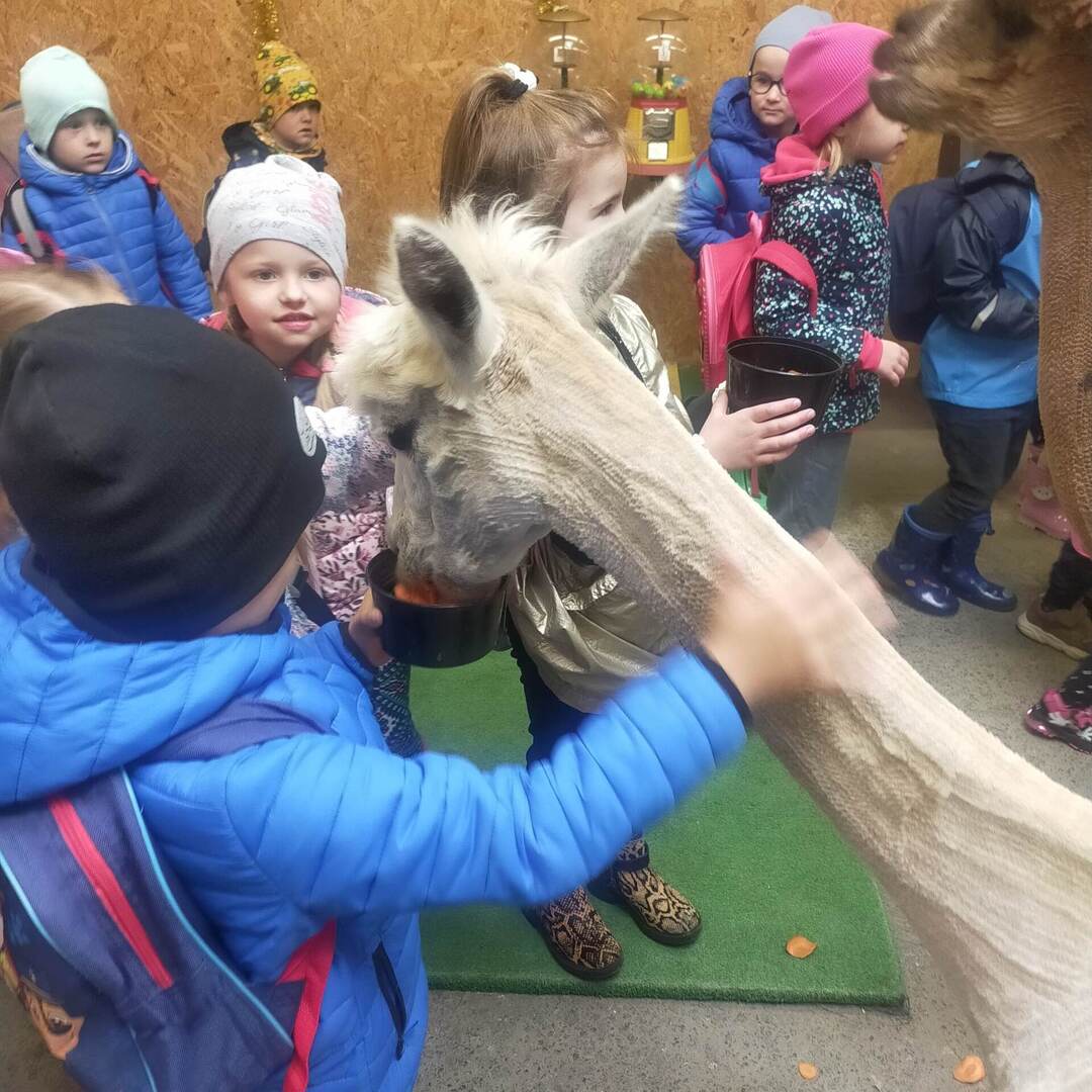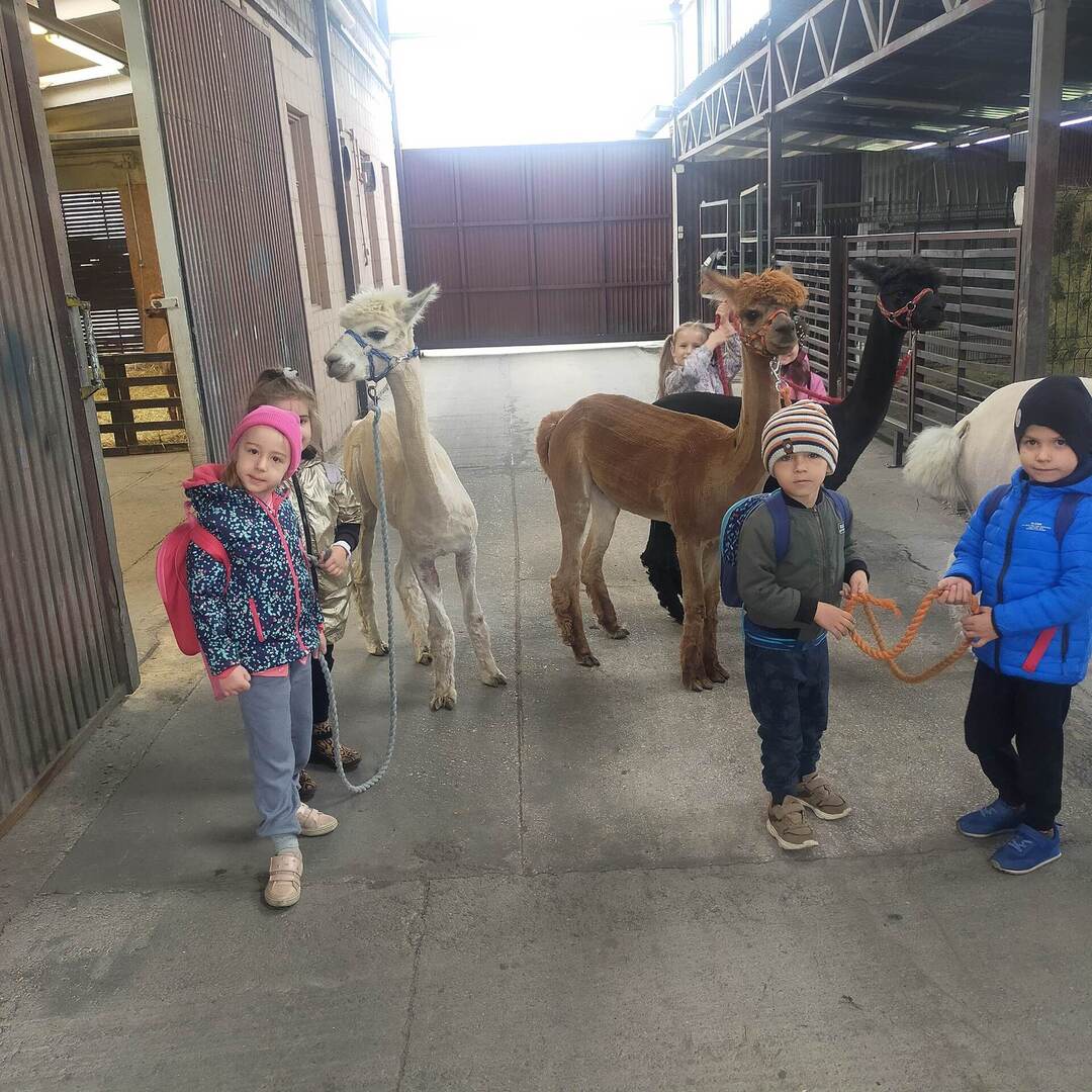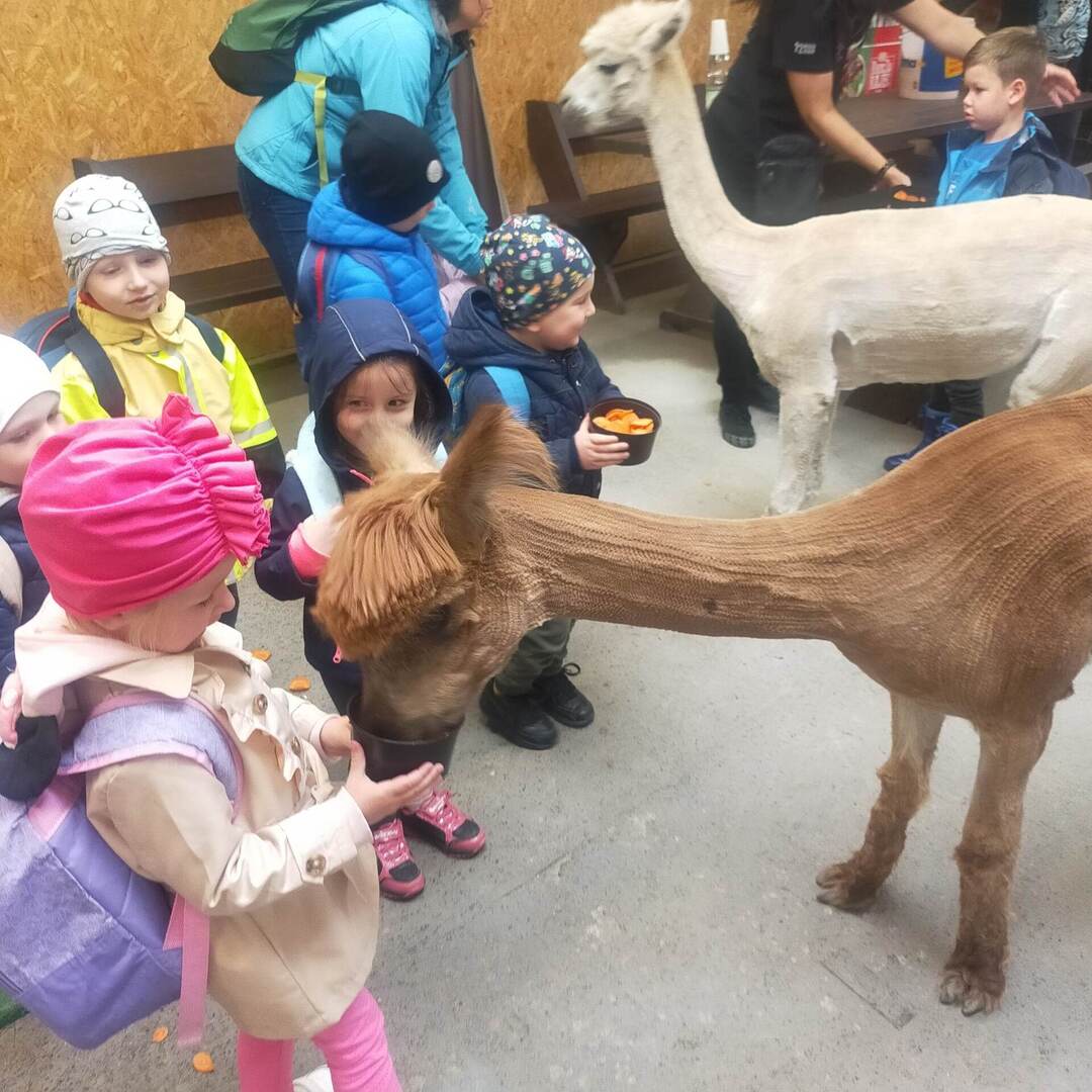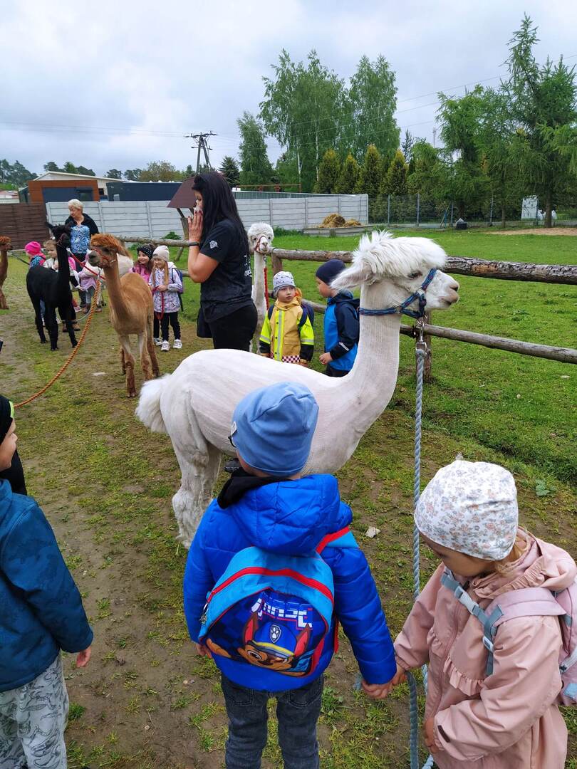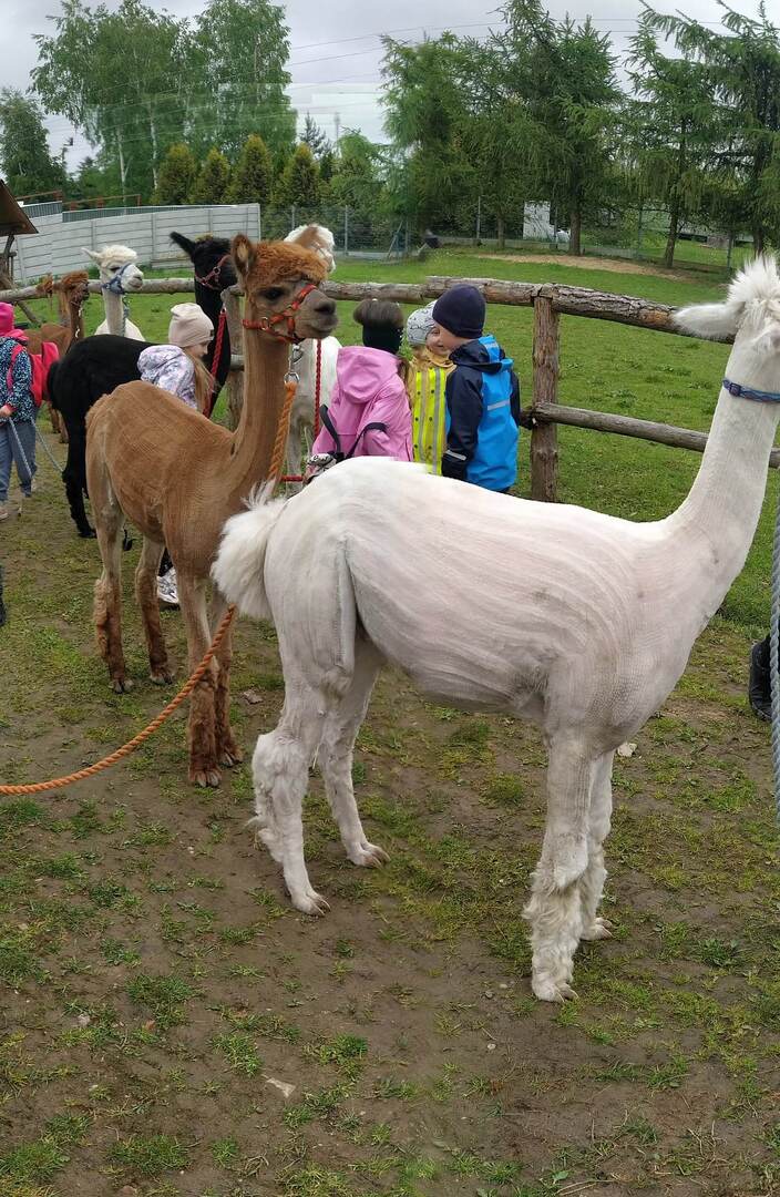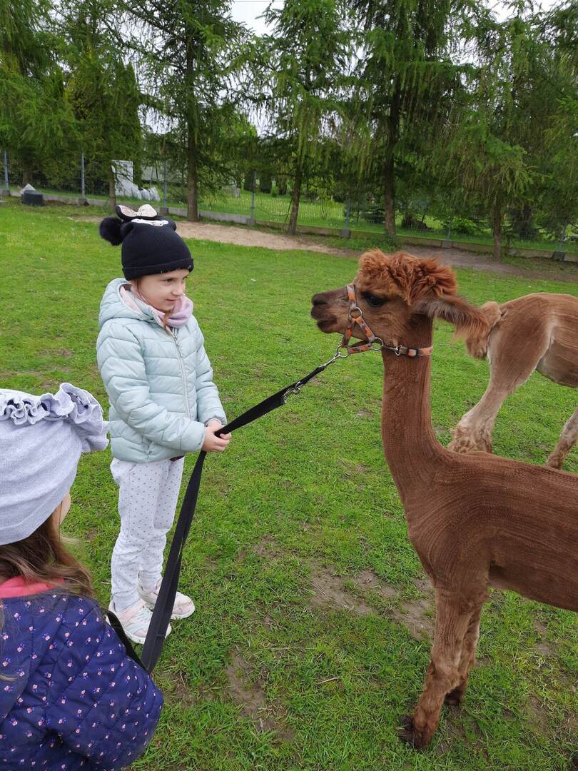19 maja 2023r. dzieci z grup przedszkolnych wybrały się na wycieczkę do Rancza Rajec, aby spotkać się z kilkoma najmilszymi zwierzętami po słońcem. Alpaki to przeurocze zwierzęta, które obniżają poziom stresu i uwalniają endorfiny. Dzieci były tak szczęśliwe, że uśmiech z ich twarzy nie schodził podczas całego pobytu na ranczu. Przedszkolaki mogły dotykać, przytulać i karmić zwierzątka oraz fotografować się z nimi. Ponadto, panie, które opiekują się Alpakami, zapoznały dzieci z hodowlą, miejscem pochodzenia oraz zwyczajami tych zwierząt. Atrakcją było również wyprowadzenie alpaki na spacer – dzieciaki mogły przez chwilę poprowadzić ją samodzielnie. Spotkanie zakończyło się wspólnym ogniskiem i degustacją upieczonych kiełbasek.