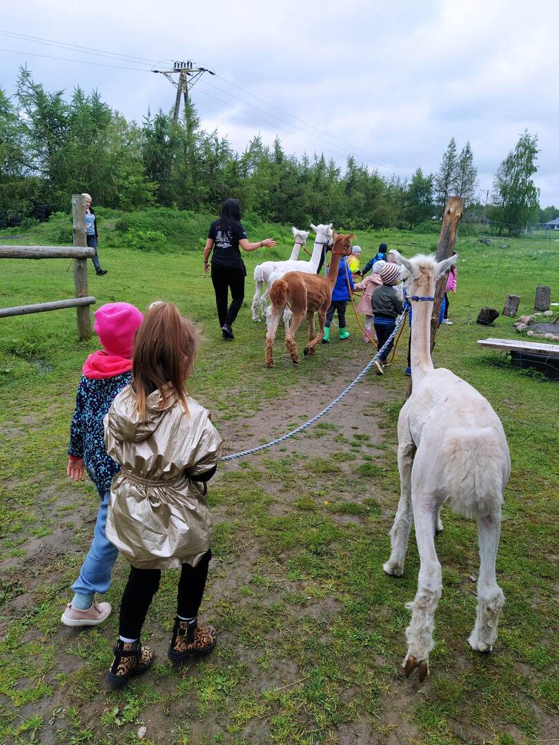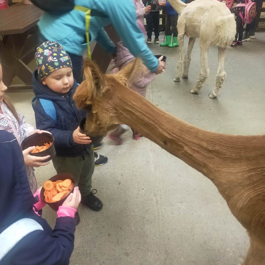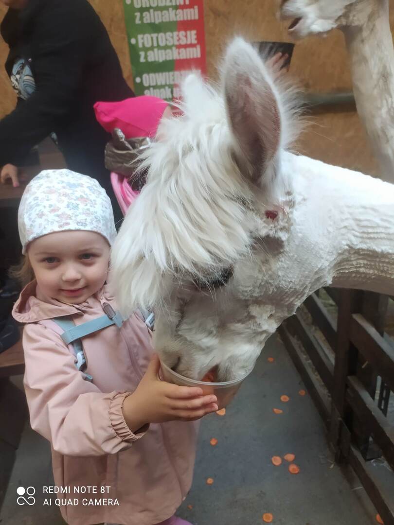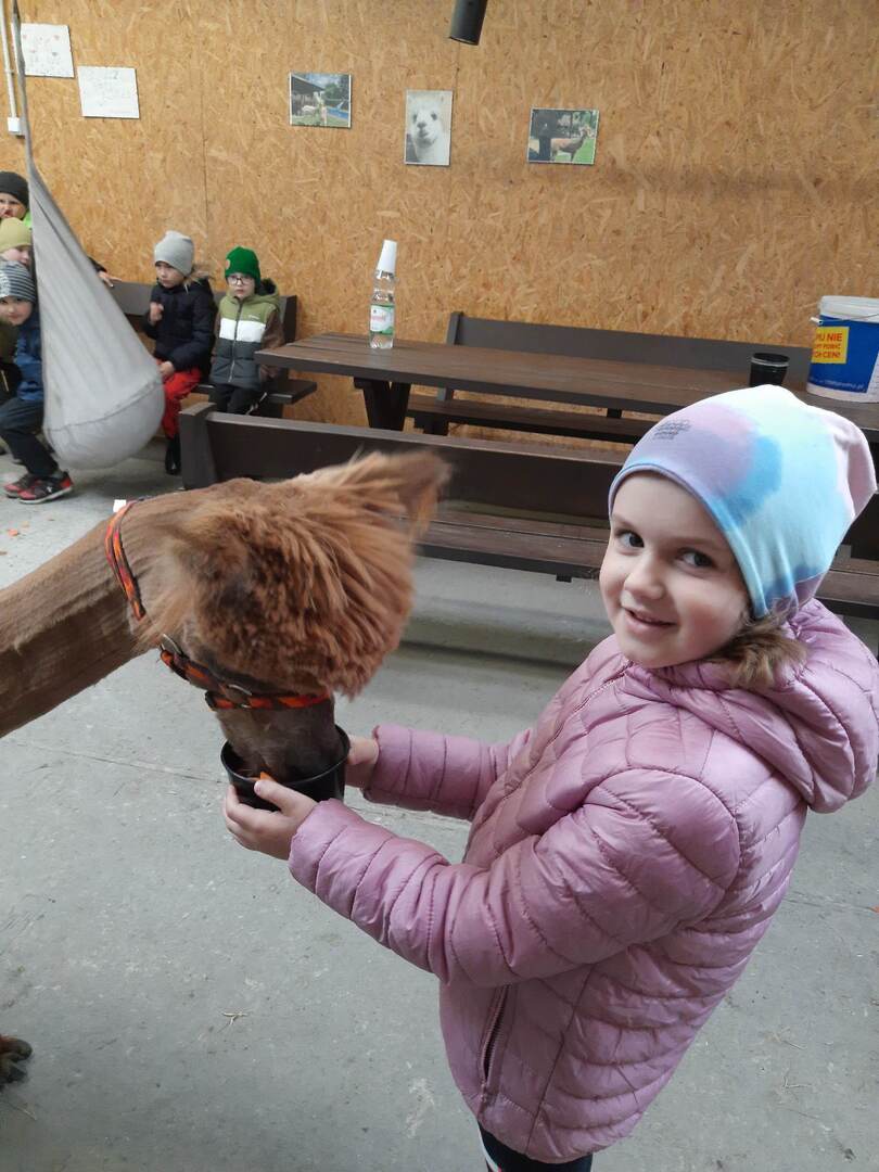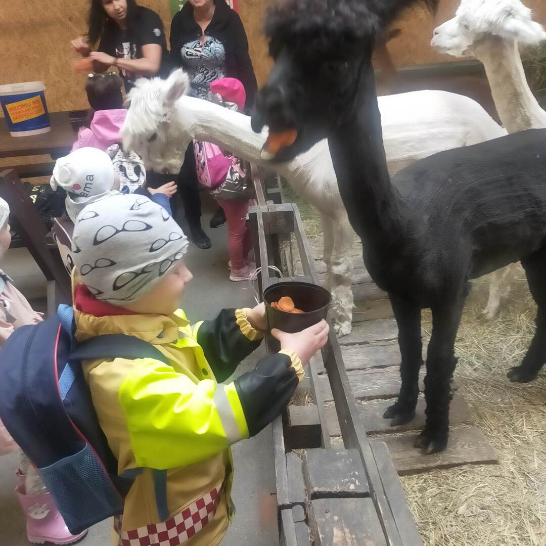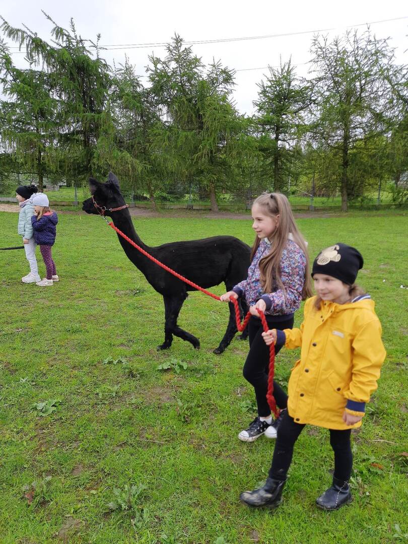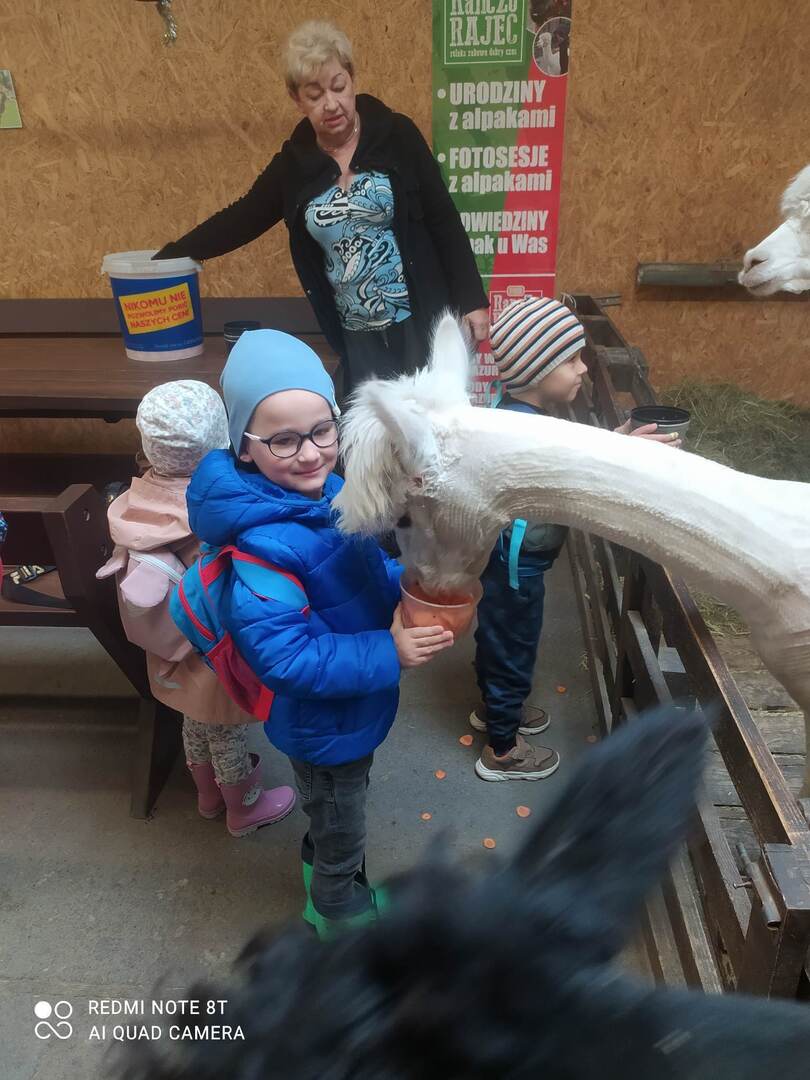 19 maja 2023r. dzieci z grup przedszkolnych wybrały się na wycieczkę do Rancza Rajec, aby spotkać się z kilkoma najmilszymi zwierzętami po słońcem. Alpaki to przeurocze zwierzęta, które obniżają poziom stresu i uwalniają endorfiny. Dzieci były tak szczęśliwe, że uśmiech z ich twarzy nie schodził podczas całego pobytu na ranczu. Przedszkolaki mogły dotykać, przytulać i karmić zwierzątka oraz fotografować się z nimi. Ponadto, panie, które opiekują się Alpakami, zapoznały dzieci z hodowlą, miejscem pochodzenia oraz zwyczajami tych zwierząt. Atrakcją było również wyprowadzenie alpaki na spacer – dzieciaki mogły przez chwilę poprowadzić ją samodzielnie. Spotkanie zakończyło się wspólnym ogniskiem i degustacją upieczonych kiełbasek.