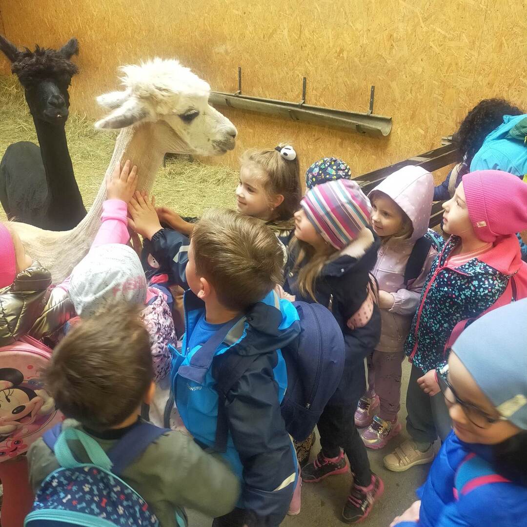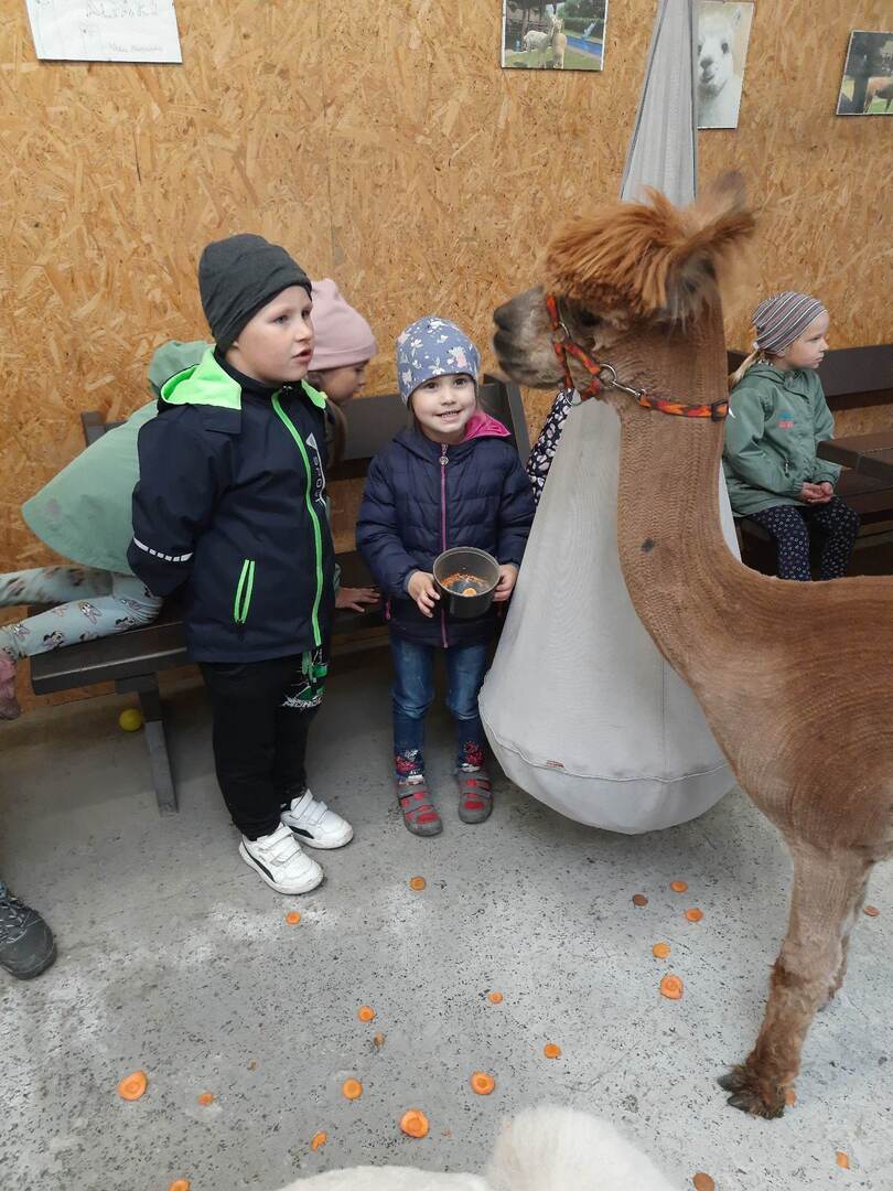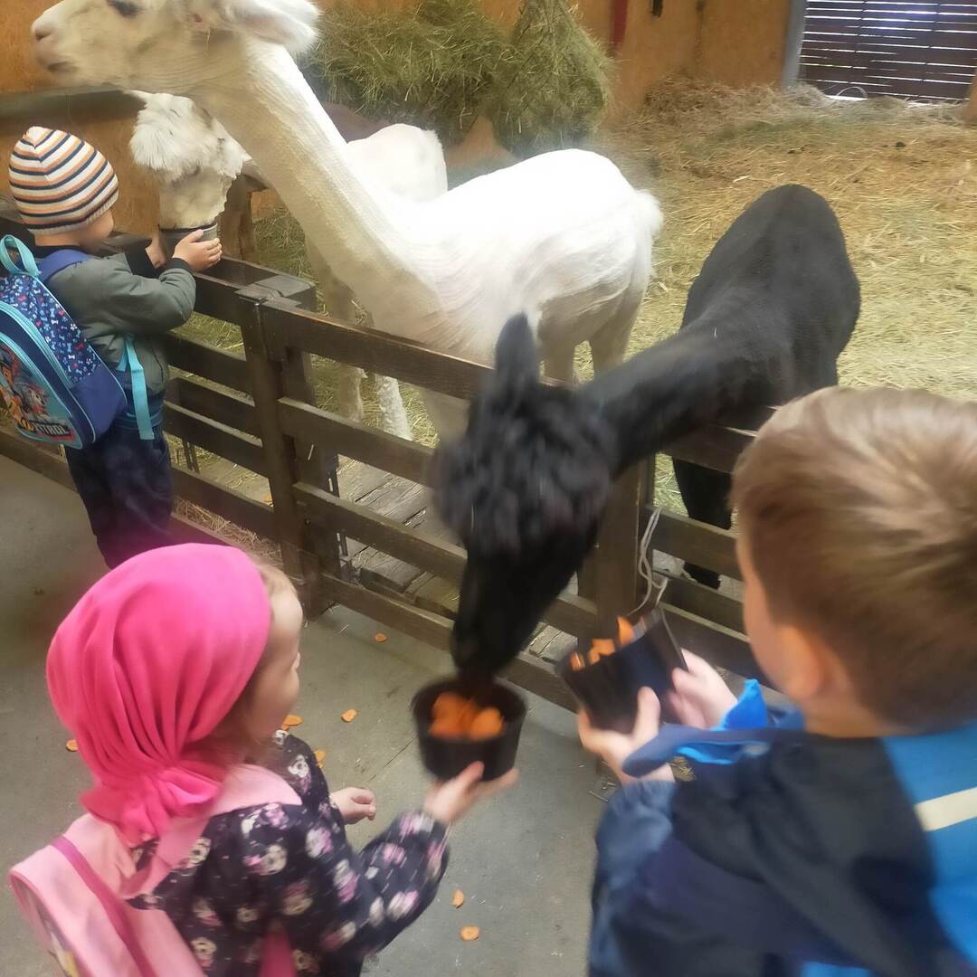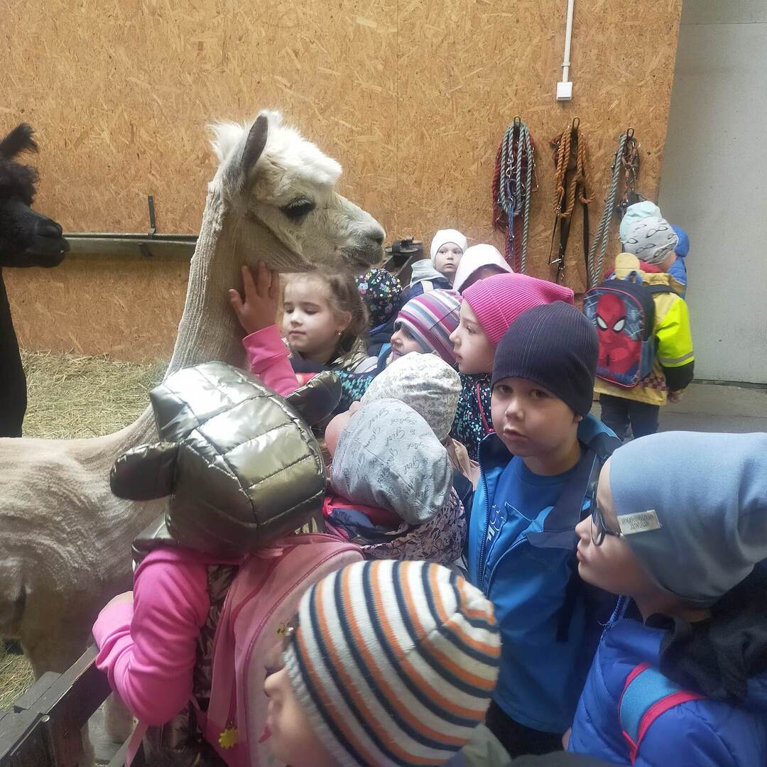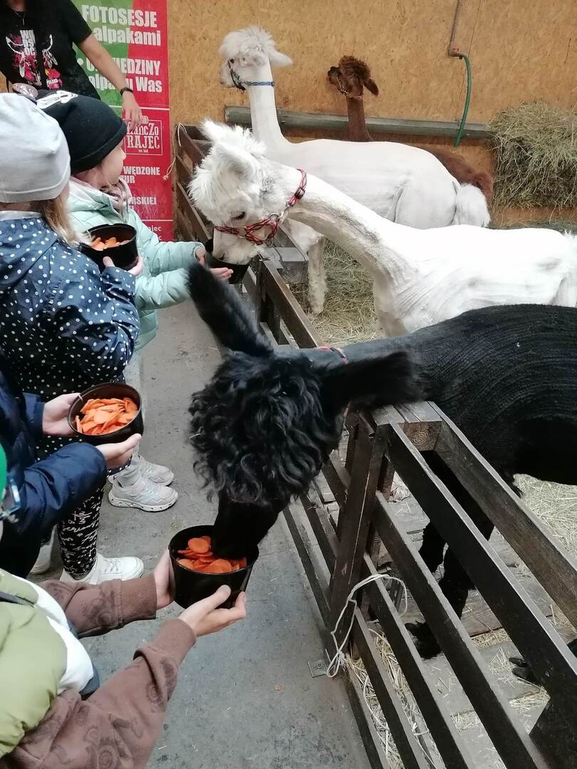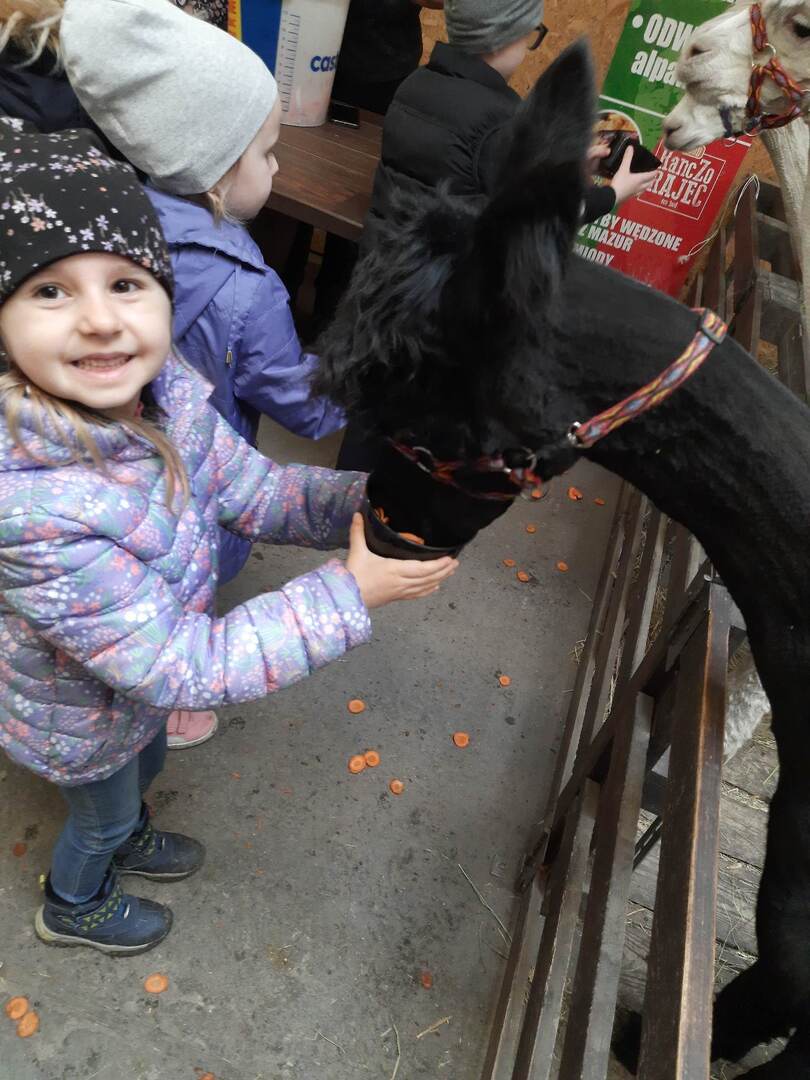 19 maja 2023r. dzieci z grup przedszkolnych wybrały się na wycieczkę do Rancza Rajec, aby spotkać się z kilkoma najmilszymi zwierzętami po słońcem. Alpaki to przeurocze zwierzęta, które obniżają poziom stresu i uwalniają endorfiny. Dzieci były tak szczęśliwe, że uśmiech z ich twarzy nie schodził podczas całego pobytu na ranczu. Przedszkolaki mogły dotykać, przytulać i karmić zwierzątka oraz fotografować się z nimi. Ponadto, panie, które opiekują się Alpakami, zapoznały dzieci z hodowlą, miejscem pochodzenia oraz zwyczajami tych zwierząt. Atrakcją było również wyprowadzenie alpaki na spacer – dzieciaki mogły przez chwilę poprowadzić ją samodzielnie. Spotkanie zakończyło się wspólnym ogniskiem i degustacją upieczonych kiełbasek.