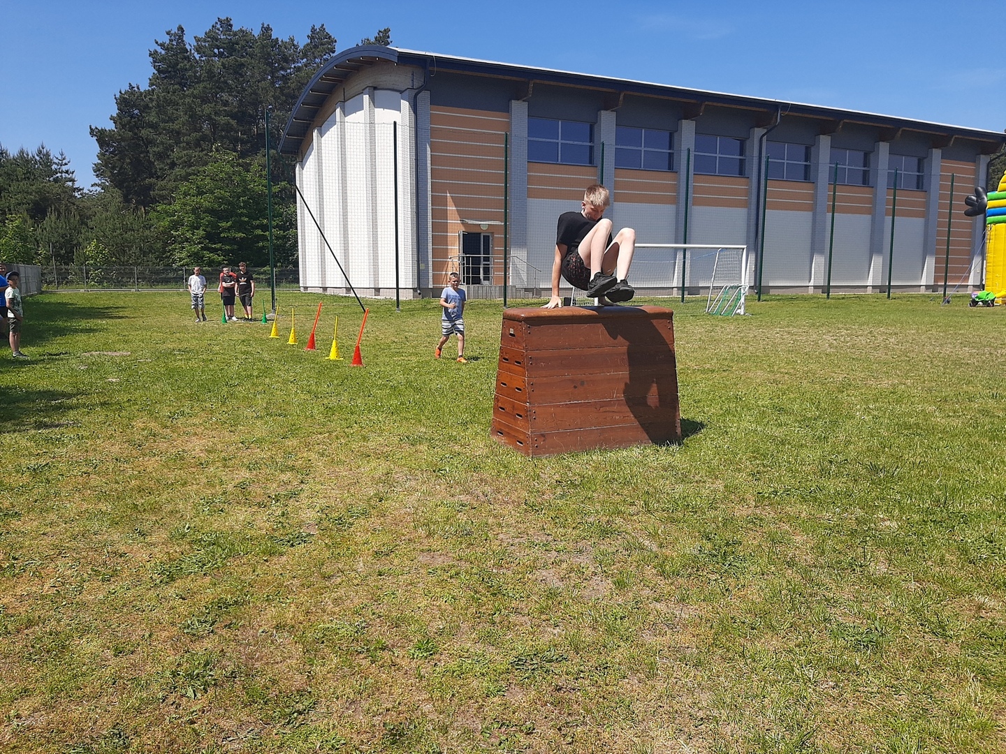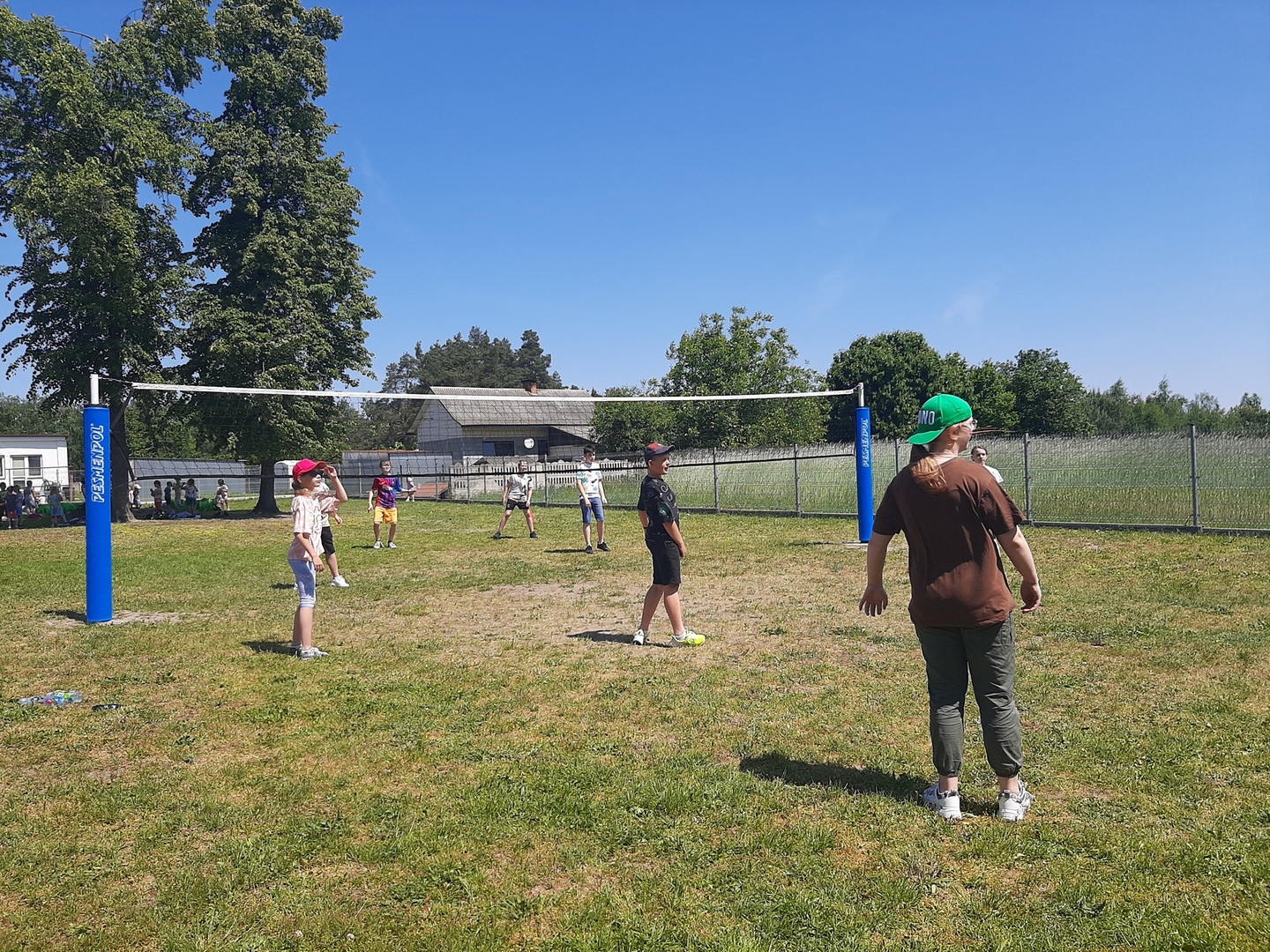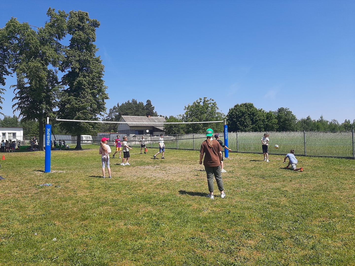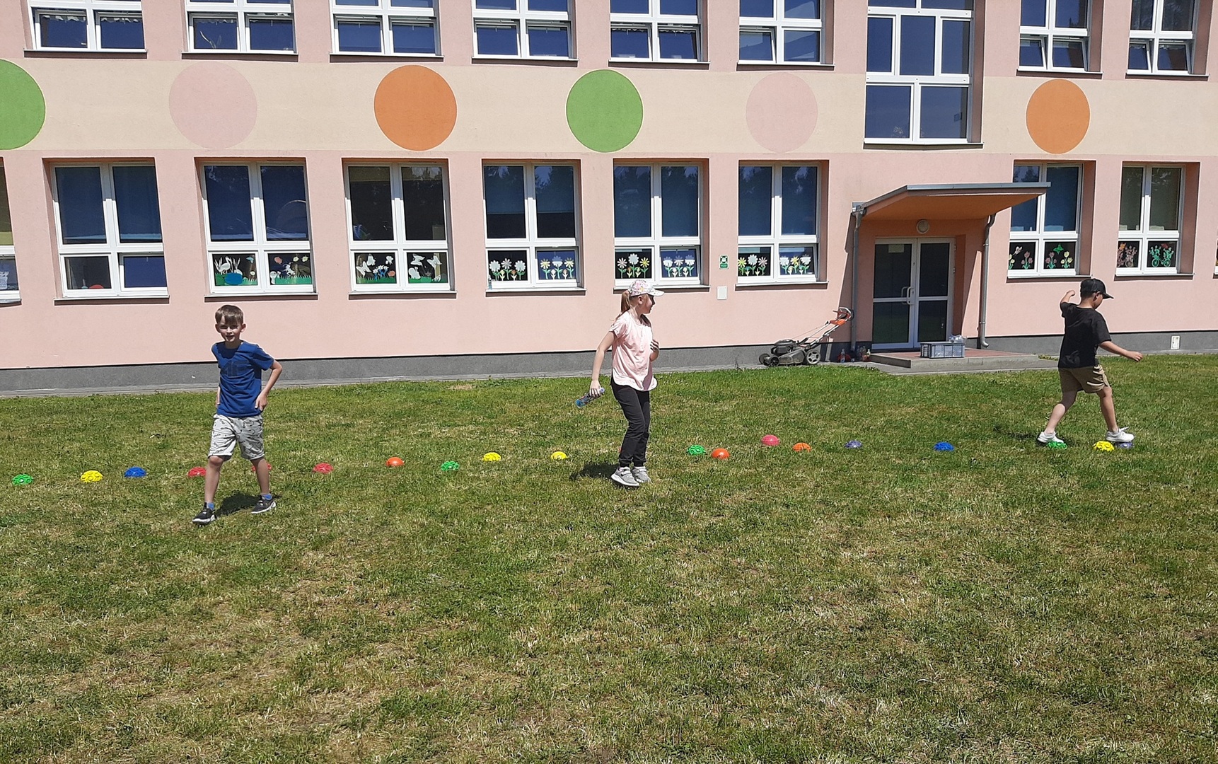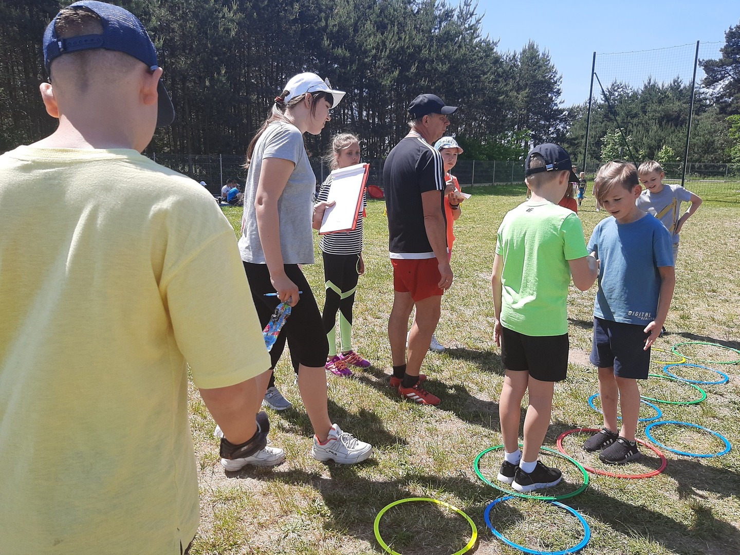 Odpowiedzialni za organizację Dnia Dziecka nauczyciele wf - pani Wioletta Kaleta i pan Paweł Zegarek - przygotowali ciekawy tor przeszkód, uczestnicy mogli również rozegrać mecze piłki siatkowej. Nie zabrakło kreatywnych pomysłów i nauki współpracy - układanie napisów z własnych ciał to świetna zabawa. Docenili ją nasi uczniowie, którzy ułożyli inicjały patrona szkoły. Dodatkową atrakcją była, zamówiona przez Radę Rodziców, dmuchana zjeżdżalnia.
