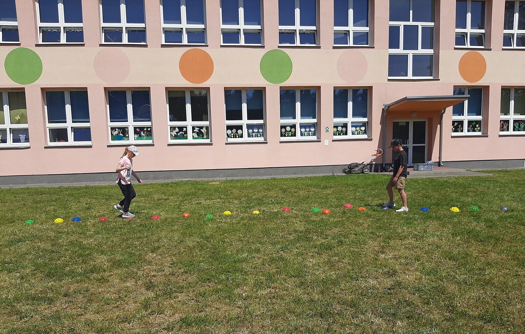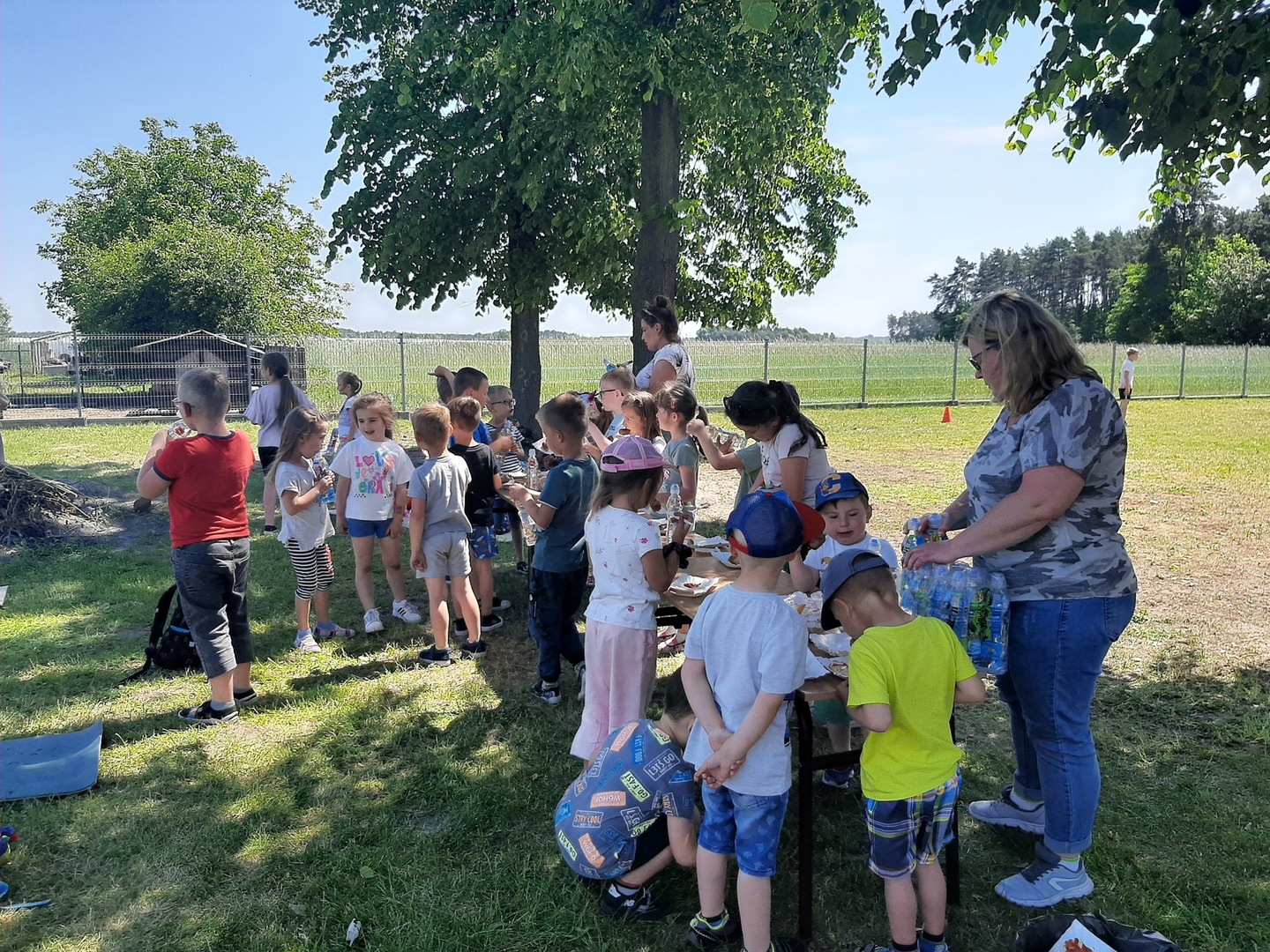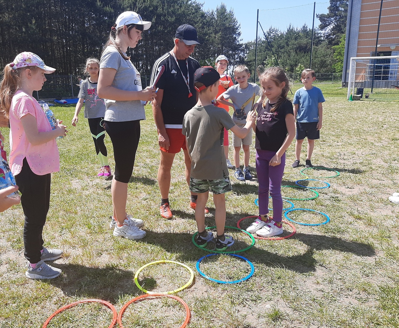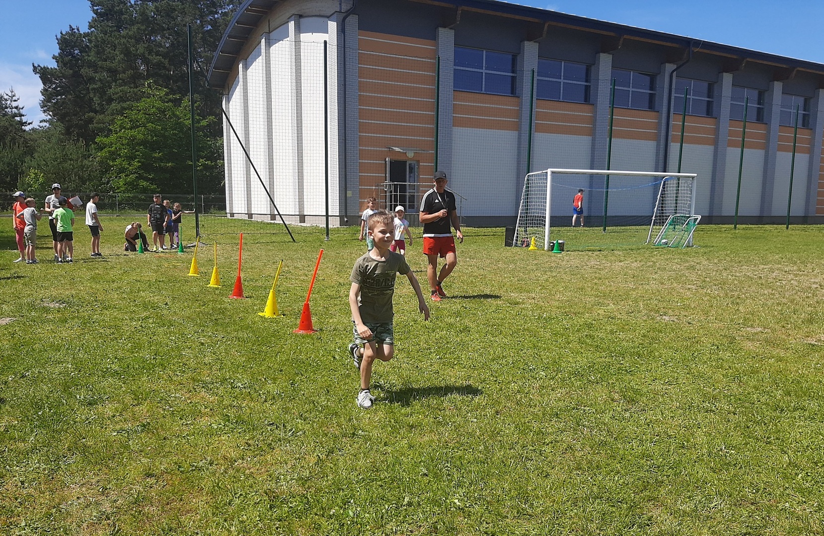 Odpowiedzialni za organizację Dnia Dziecka nauczyciele wf - pani Wioletta Kaleta i pan Paweł Zegarek - przygotowali ciekawy tor przeszkód, uczestnicy mogli również rozegrać mecze piłki siatkowej. Nie zabrakło kreatywnych pomysłów i nauki współpracy - układanie napisów z własnych ciał to świetna zabawa. Docenili ją nasi uczniowie, którzy ułożyli inicjały patrona szkoły. Dodatkową atrakcją była, zamówiona przez Radę Rodziców, dmuchana zjeżdżalnia.
