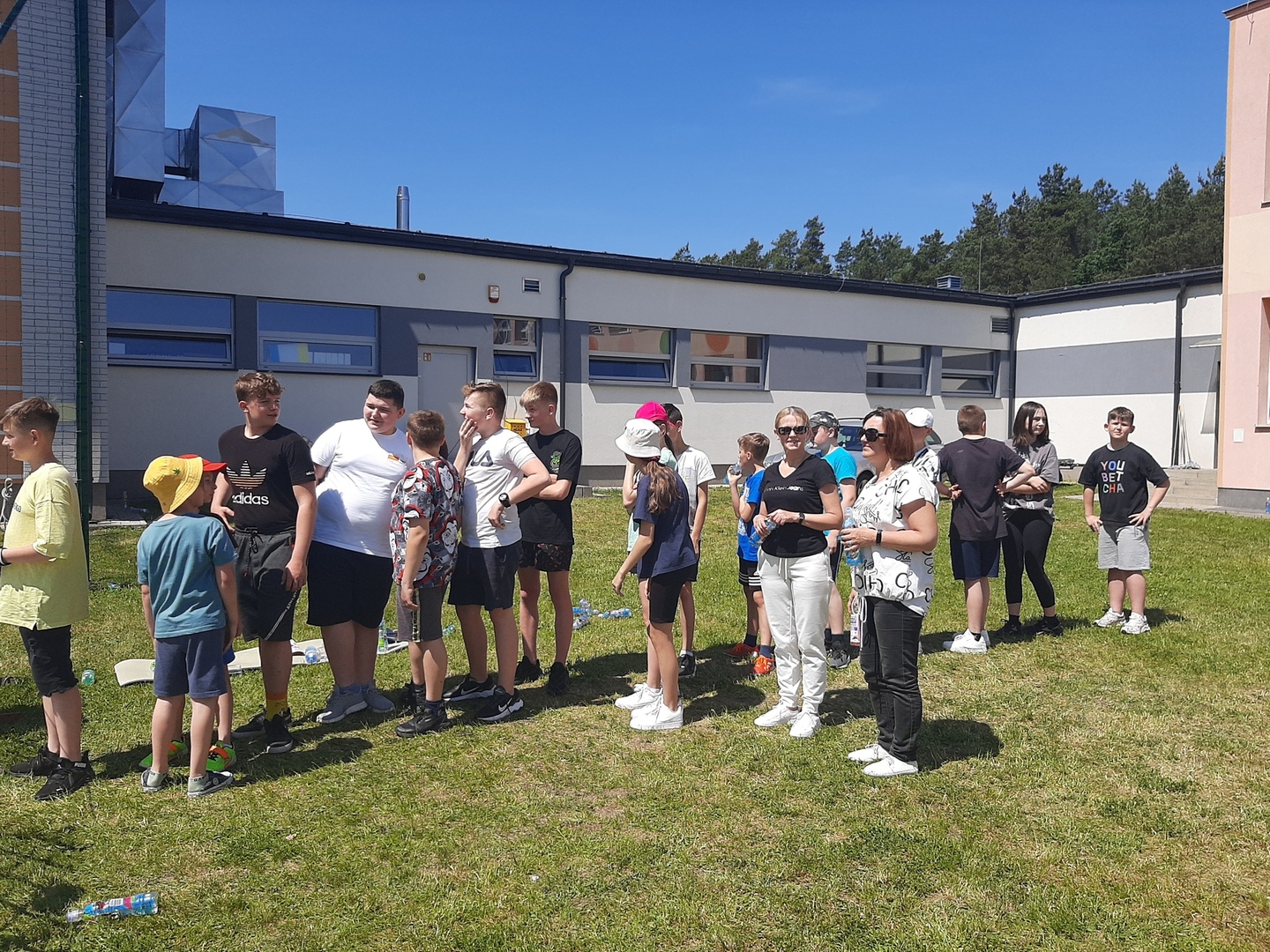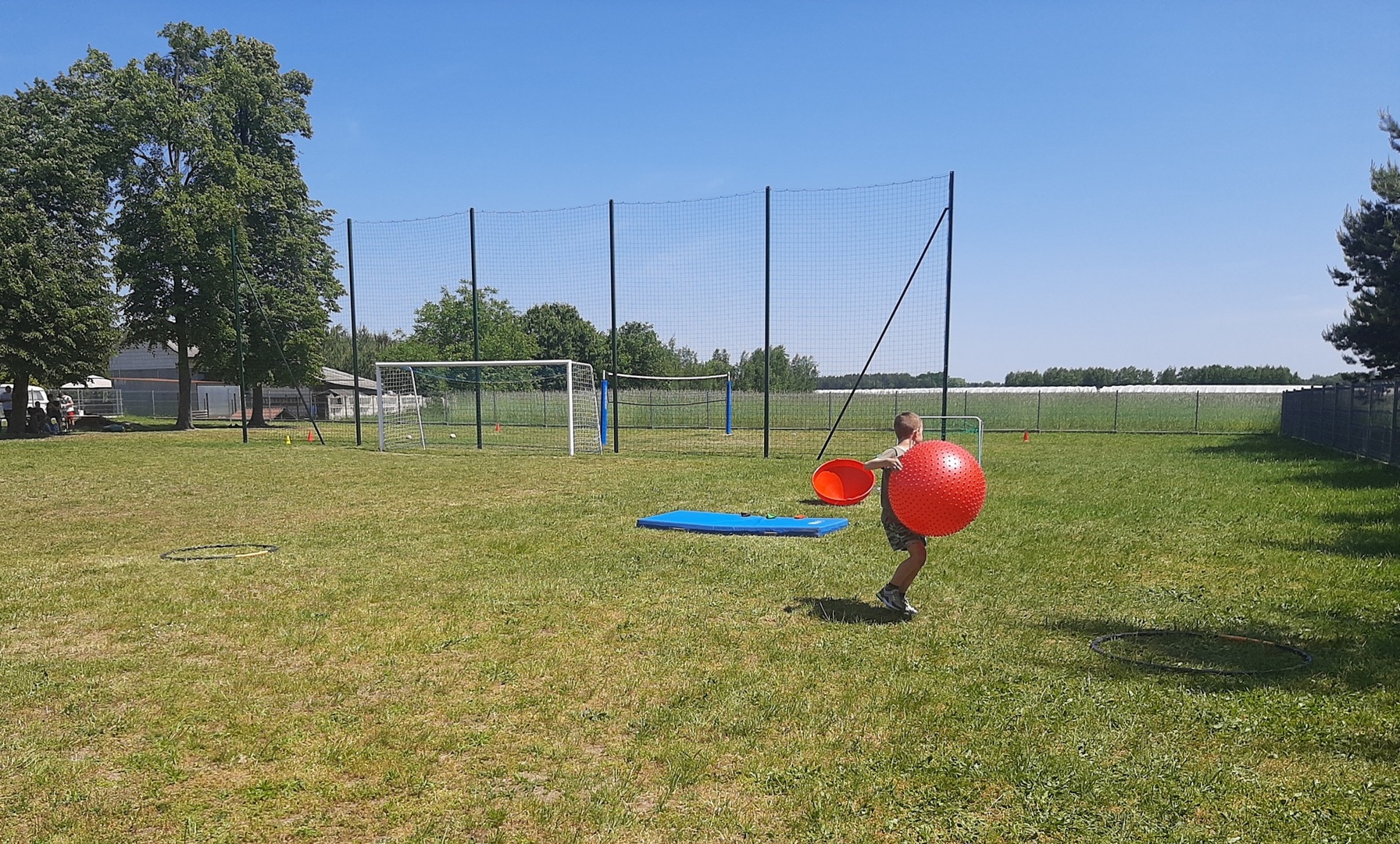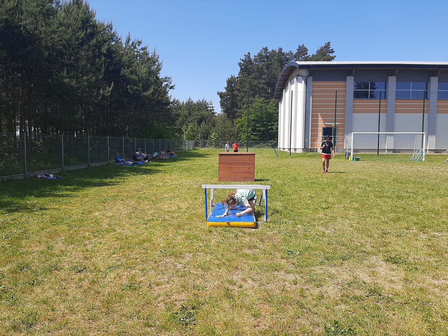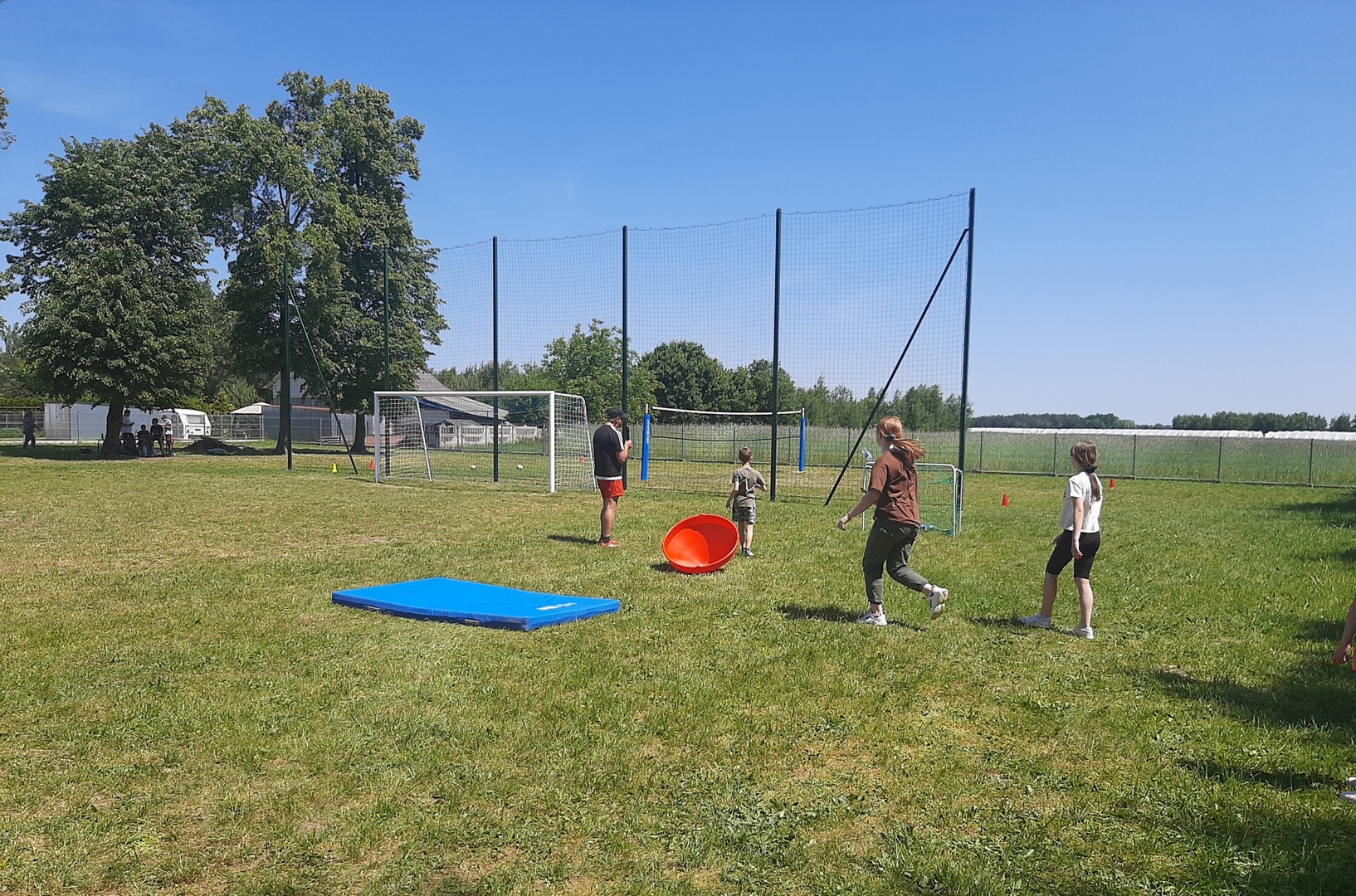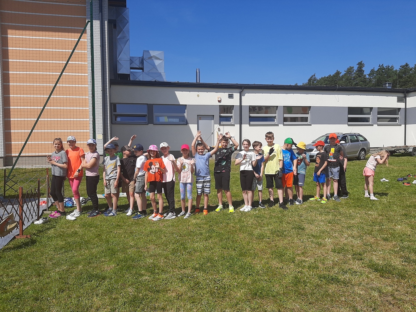 Odpowiedzialni za organizację Dnia Dziecka nauczyciele wf - pani Wioletta Kaleta i pan Paweł Zegarek - przygotowali ciekawy tor przeszkód, uczestnicy mogli również rozegrać mecze piłki siatkowej. Nie zabrakło kreatywnych pomysłów i nauki współpracy - układanie napisów z własnych ciał to świetna zabawa. Docenili ją nasi uczniowie, którzy ułożyli inicjały patrona szkoły. Dodatkową atrakcją była, zamówiona przez Radę Rodziców, dmuchana zjeżdżalnia.