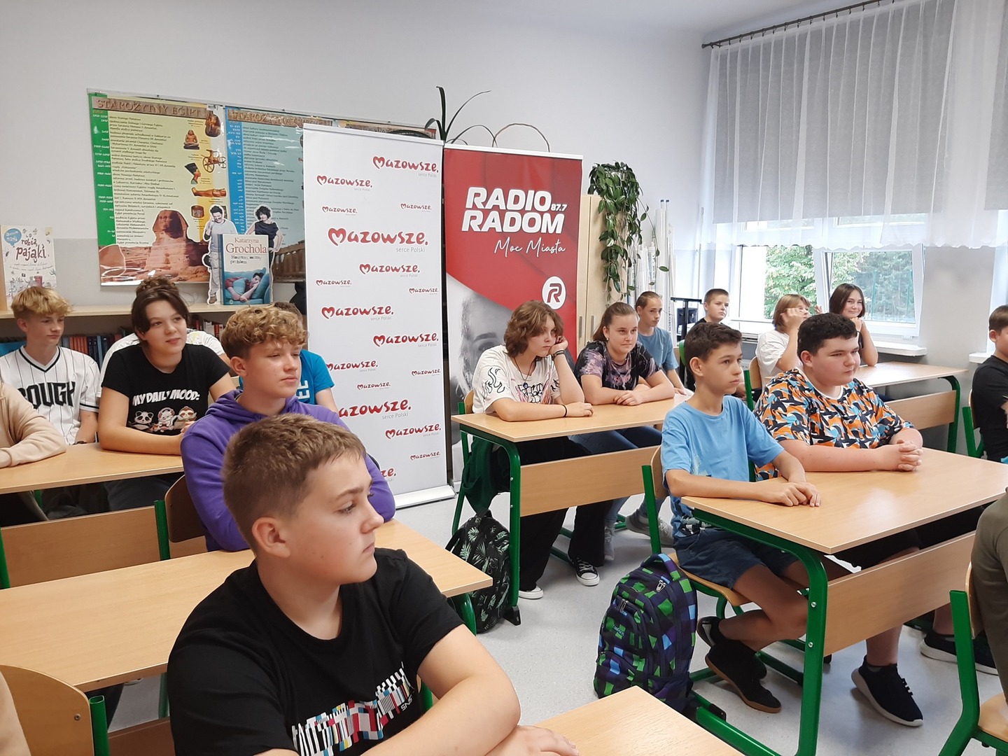 W ramach 7. edycji projektu "Złota 10 czyli Mazowiecka Szkółka Dziennikarska" naszą szkołę odwiedzili dzisiaj dziennikarze Radia Radom 87,7 FM - pani Marzena Tarnowska i pan Michał Tarnowski.