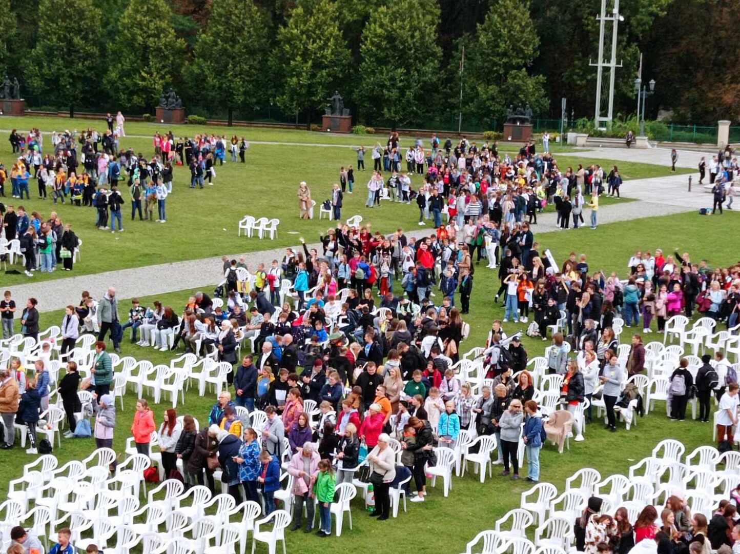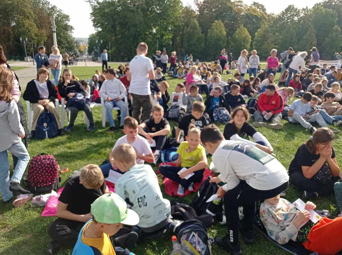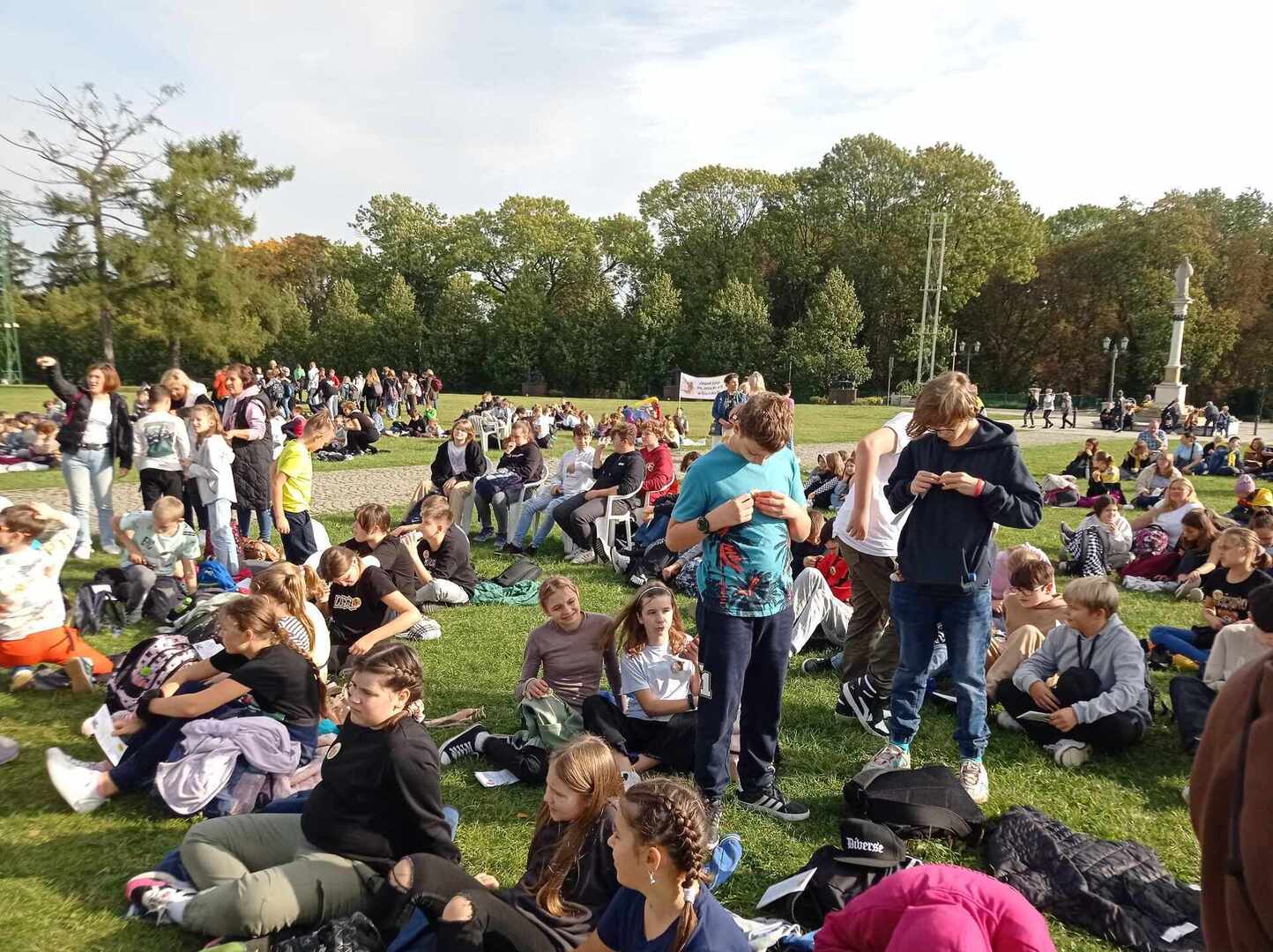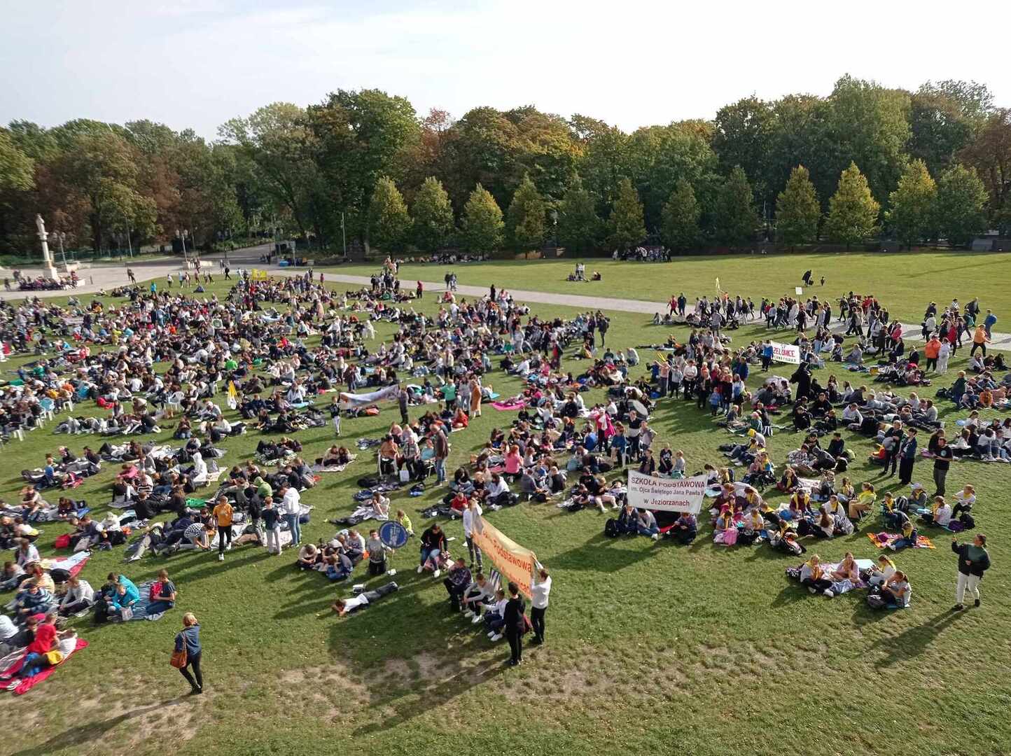 Po przyjeździe uczestniczyliśmy w koncercie Magdy Anioł, który zaktywizował i zintegrował pielgrzymów. Podczas Mszy Świętej biskup radomski Marek Solarczyk przypomniał nauczanie świętego Polaka i podkreślił rolę miłości i odpowiedzialności w życiu młodych ludzi. Jako przykład młodego człowieka wiernego wartościom podał błogosławionego Carlo Acutisa, którego wspomnienie obchodziliśmy. Do zgromadzonych prawie 7000 uczniów powiedział, że sztandary szkolne, których było 170, powinny być przypomnieniem ideałów i celu, do którego dąży młody człowiek. Wyraził nadzieję, że każdy młody człowiek będzie się rozwijał według swych zainteresowań i możliwości oraz pracował dla dobra siebie i innych.