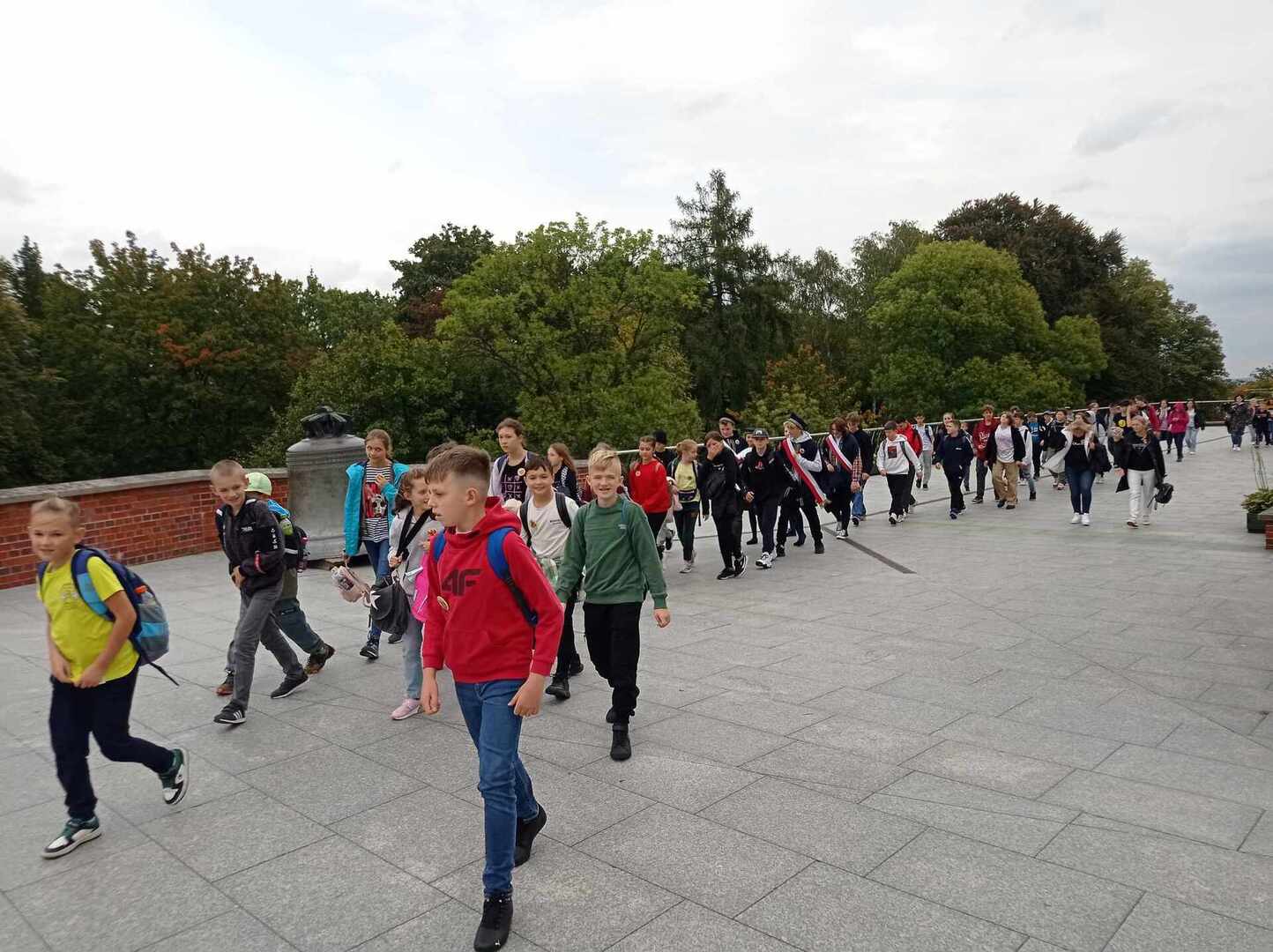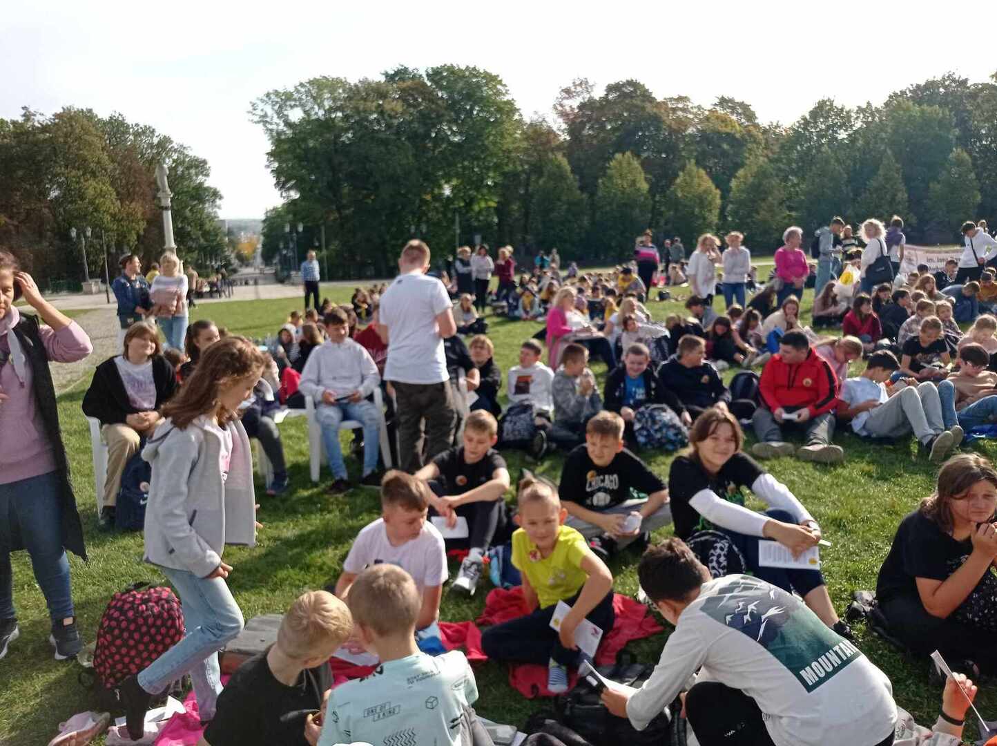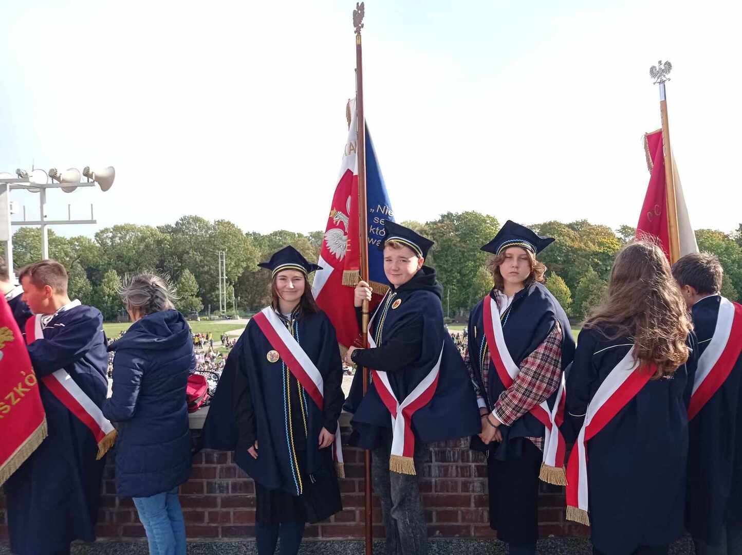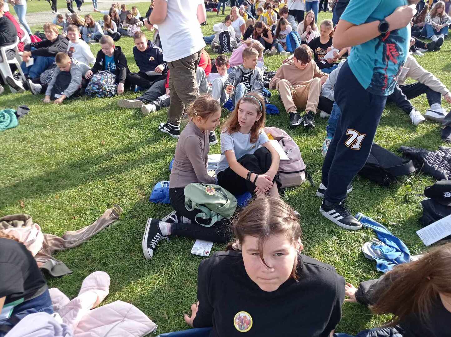 Po przyjeździe uczestniczyliśmy w koncercie Magdy Anioł, który zaktywizował i zintegrował pielgrzymów. Podczas Mszy Świętej biskup radomski Marek Solarczyk przypomniał nauczanie świętego Polaka i podkreślił rolę miłości i odpowiedzialności w życiu młodych ludzi. Jako przykład młodego człowieka wiernego wartościom podał błogosławionego Carlo Acutisa, którego wspomnienie obchodziliśmy. Do zgromadzonych prawie 7000 uczniów powiedział, że sztandary szkolne, których było 170, powinny być przypomnieniem ideałów i celu, do którego dąży młody człowiek. Wyraził nadzieję, że każdy młody człowiek będzie się rozwijał według swych zainteresowań i możliwości oraz pracował dla dobra siebie i innych.