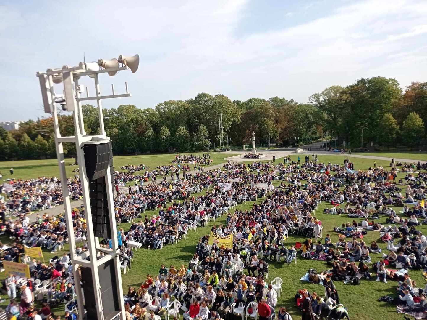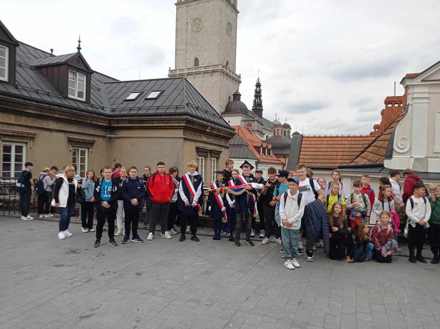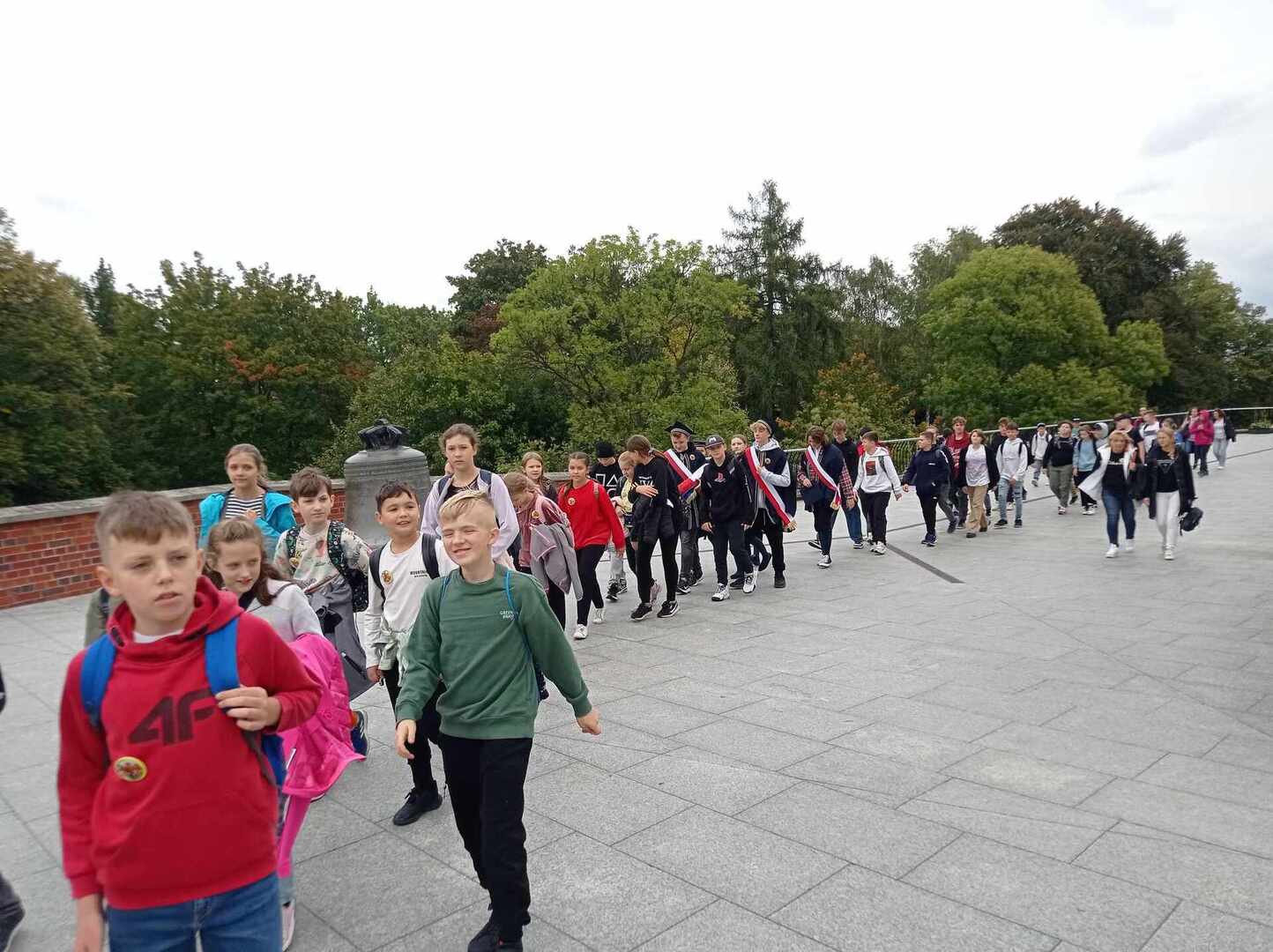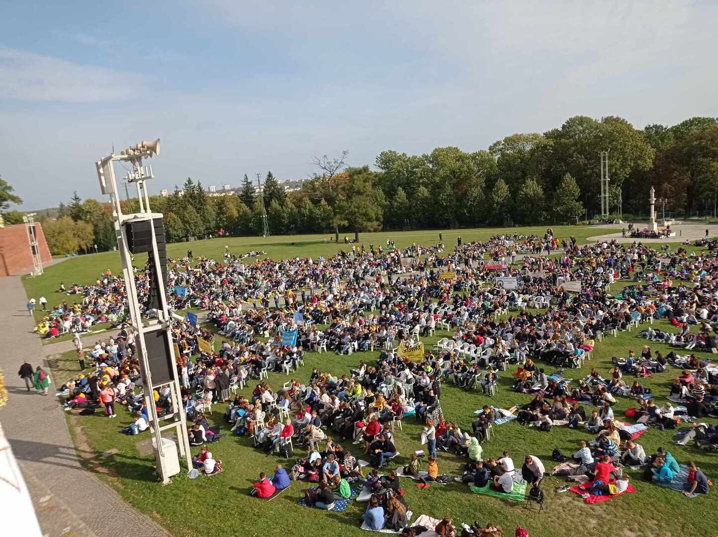 Po przyjeździe uczestniczyliśmy w koncercie Magdy Anioł, który zaktywizował i zintegrował pielgrzymów. Podczas Mszy Świętej biskup radomski Marek Solarczyk przypomniał nauczanie świętego Polaka i podkreślił rolę miłości i odpowiedzialności w życiu młodych ludzi. Jako przykład młodego człowieka wiernego wartościom podał błogosławionego Carlo Acutisa, którego wspomnienie obchodziliśmy. Do zgromadzonych prawie 7000 uczniów powiedział, że sztandary szkolne, których było 170, powinny być przypomnieniem ideałów i celu, do którego dąży młody człowiek. Wyraził nadzieję, że każdy młody człowiek będzie się rozwijał według swych zainteresowań i możliwości oraz pracował dla dobra siebie i innych.