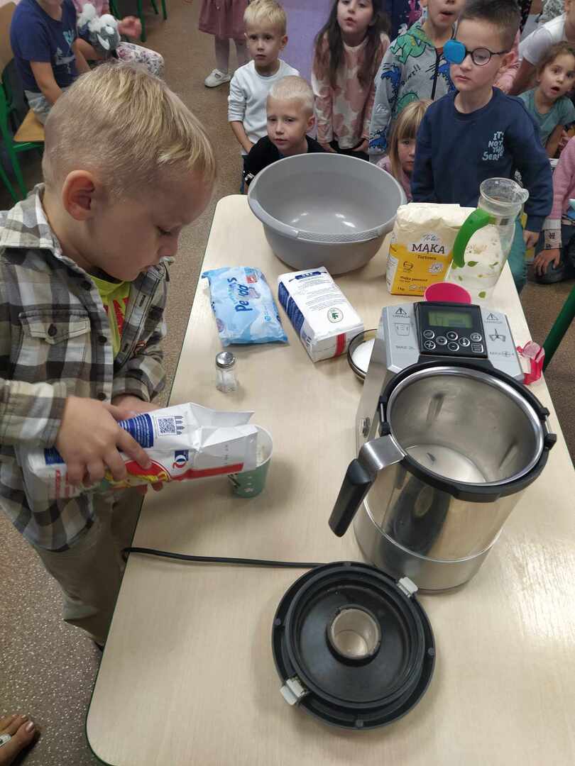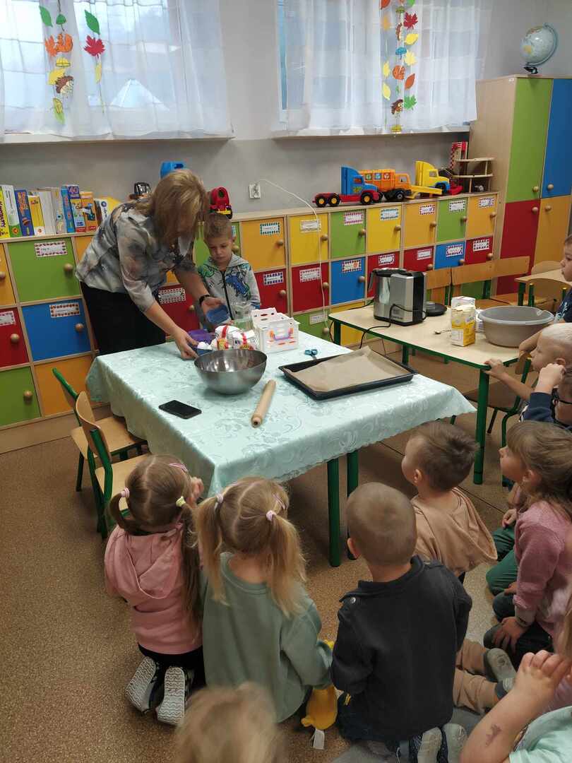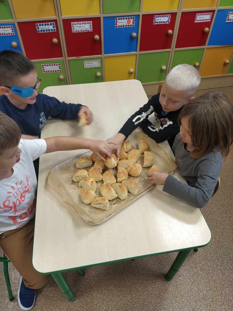 Dzieci poznały zawód piekarza oraz etapy produkcji chleba. Wspólnie upiekliśmy pyszne bułeczki. Przygotowanie przysmaków sprawiło maluchom wiele radości.