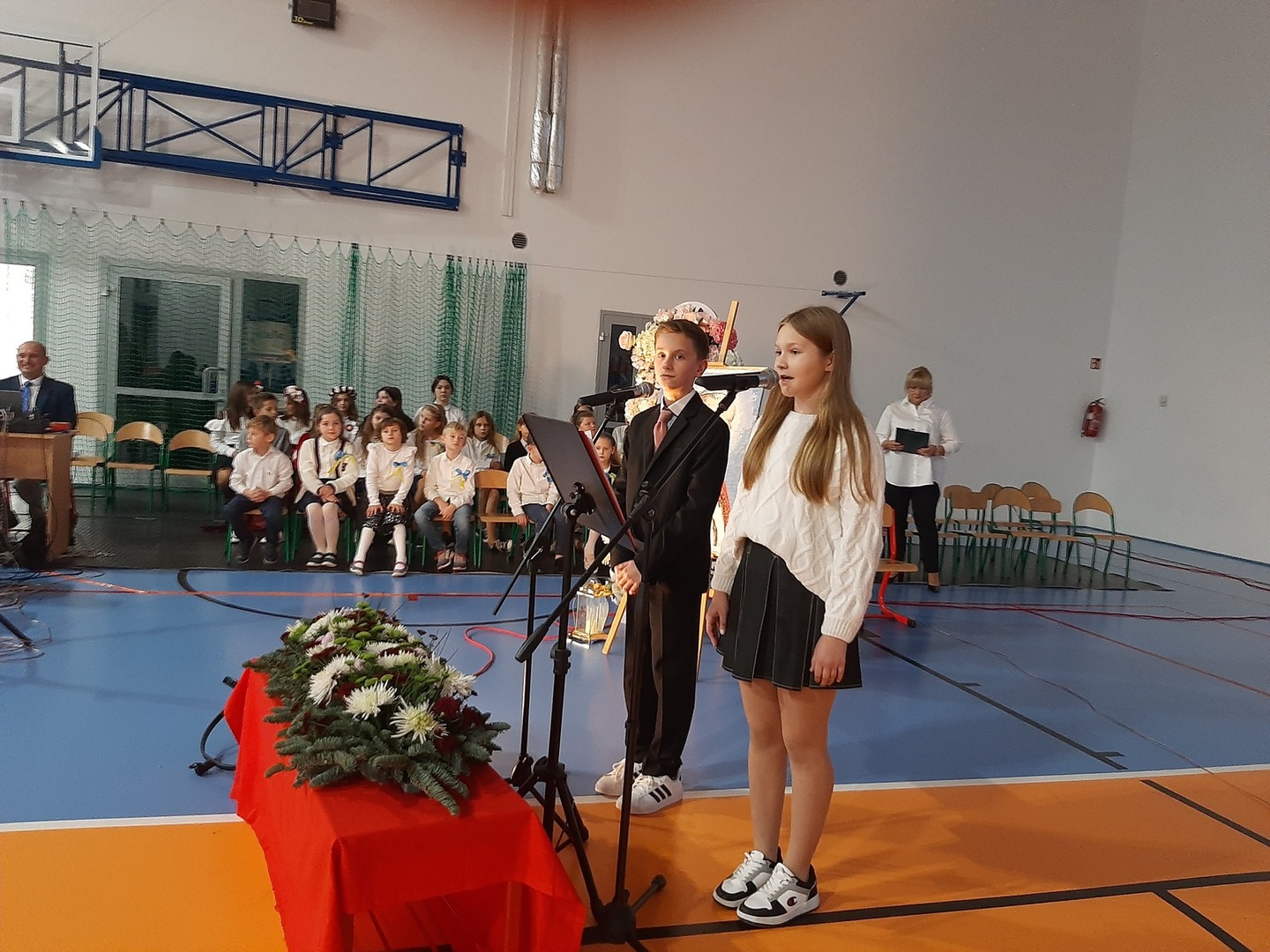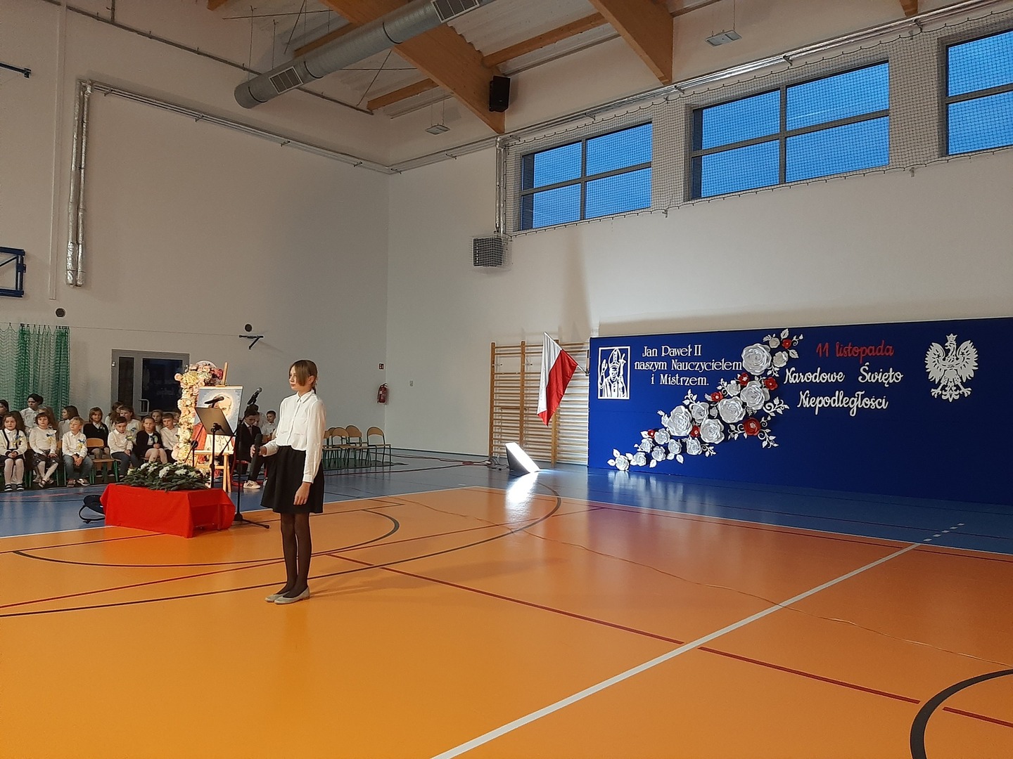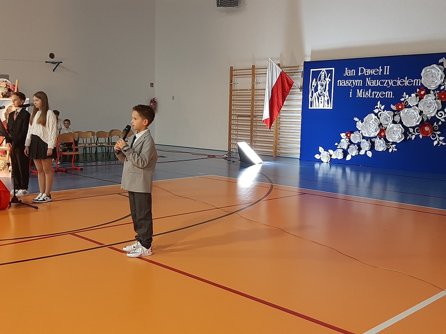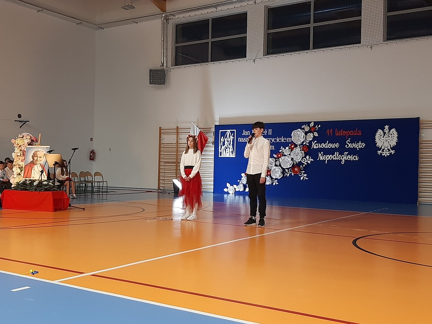 W odpowiedzi na przesłanie naszego patrona, który wołał: Polsko, umiej być wdzięczna! Nasi wychowankowie zapewniali, że nie pozwolimy zapomnieć, że będziemy przekazywać karty historii kolejnym pokoleniom. W krótkiej scence przypomnieli o tym, jak Polacy odzyskali Niepodległą Ojczyznę.