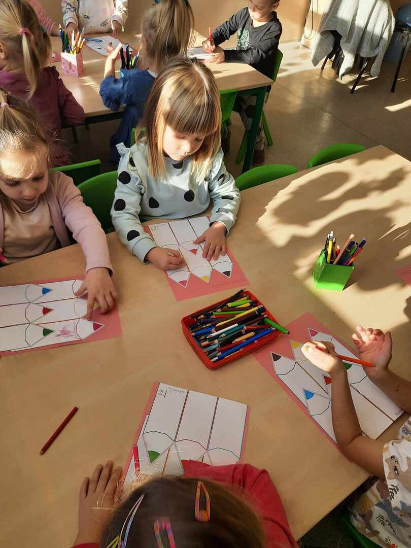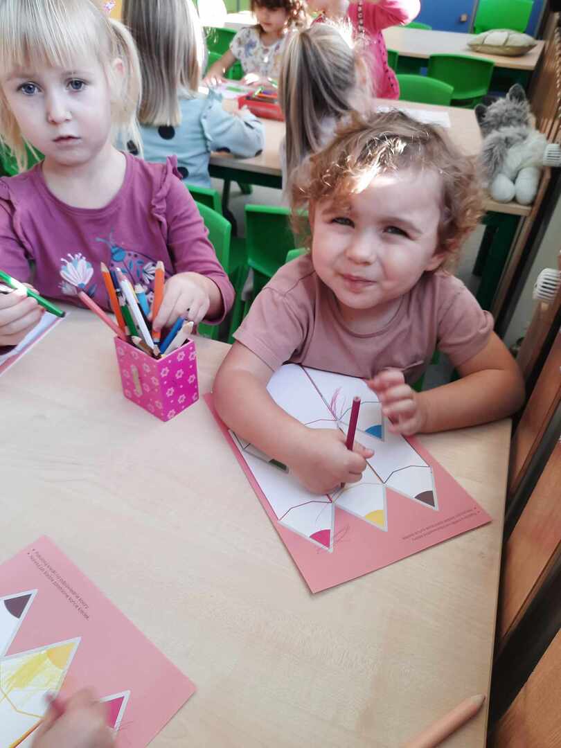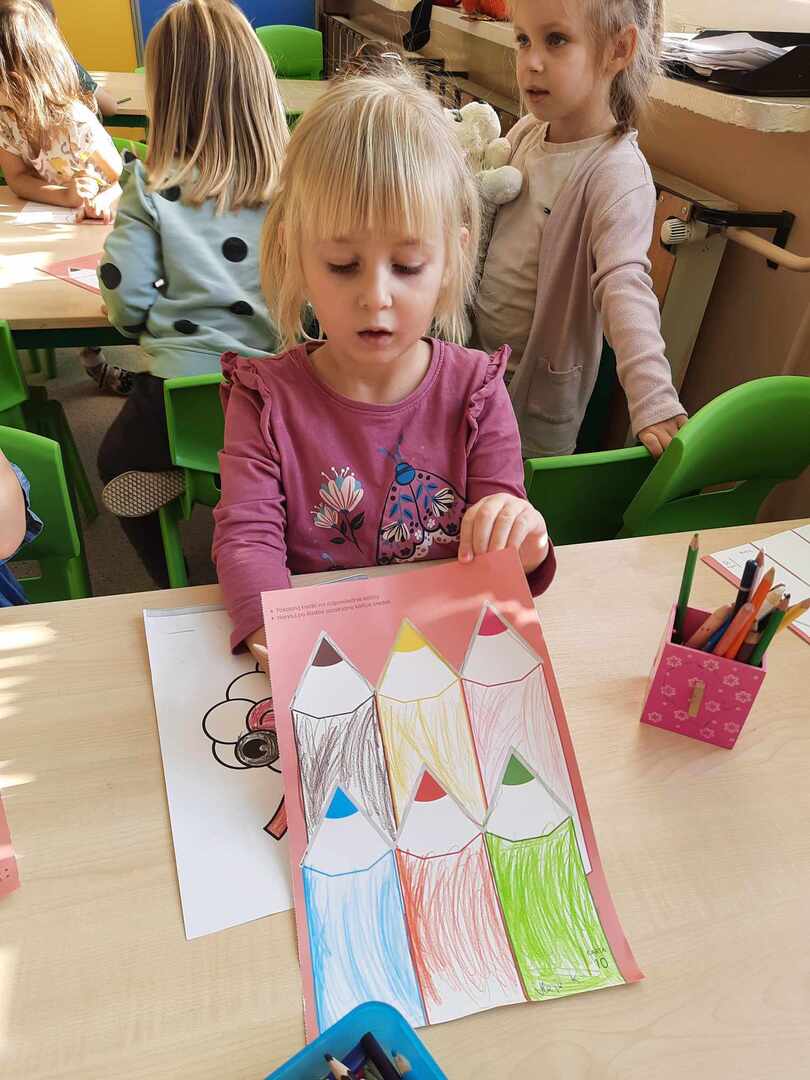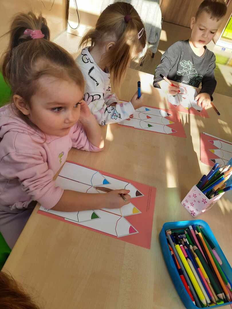 Tego dnia Wesołe Żuczki oraz Misie oglądały film pt. „Jedyneczka w fabryce kredek”. Kredki wykorzystaliśmy nie tylko do rysowania i kolorowania, ale również do zabaw matematycznych.