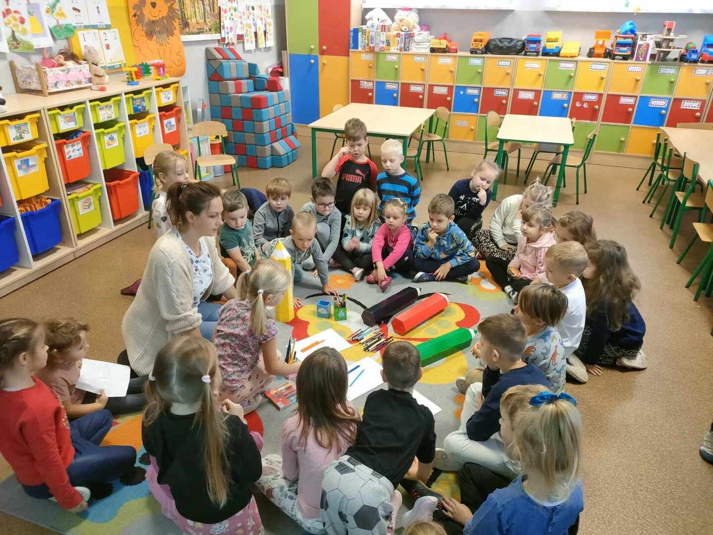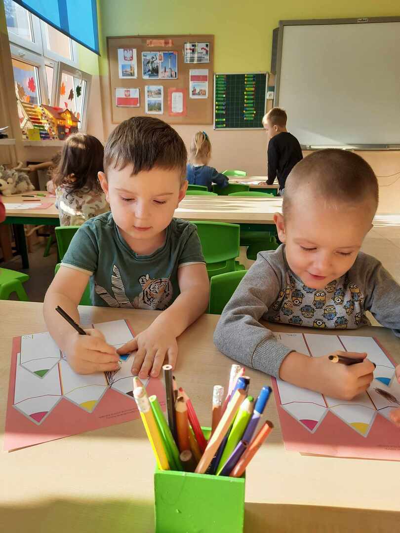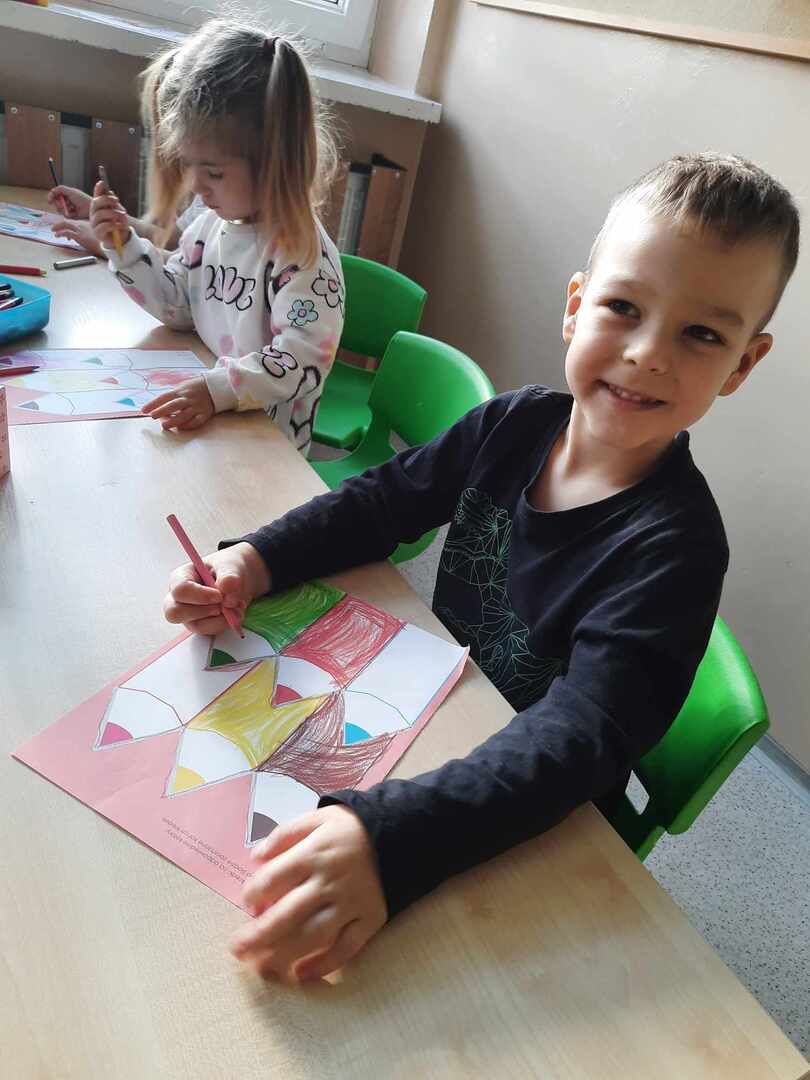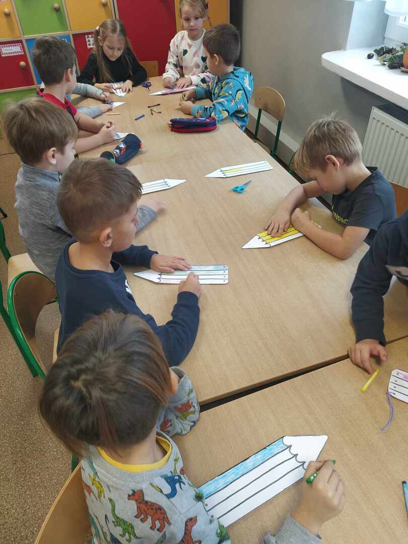 Tego dnia Wesołe Żuczki oraz Misie oglądały film pt. „Jedyneczka w fabryce kredek”. Kredki wykorzystaliśmy nie tylko do rysowania i kolorowania, ale również do zabaw matematycznych.