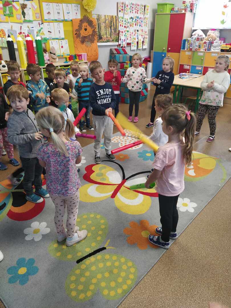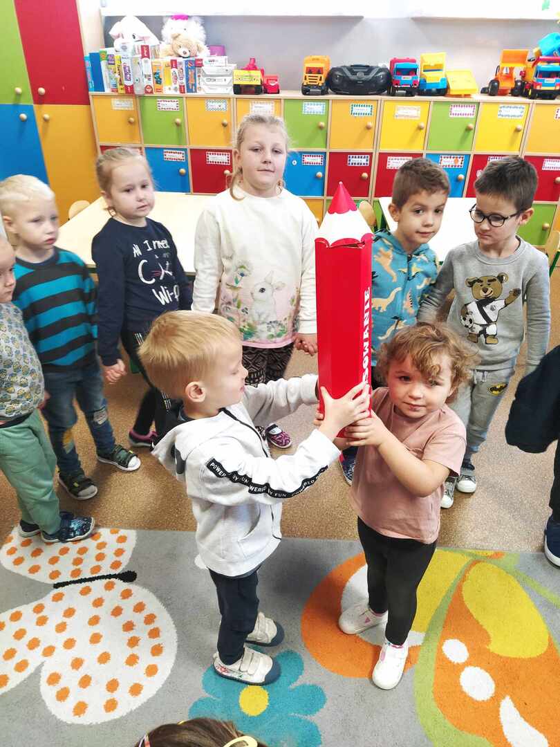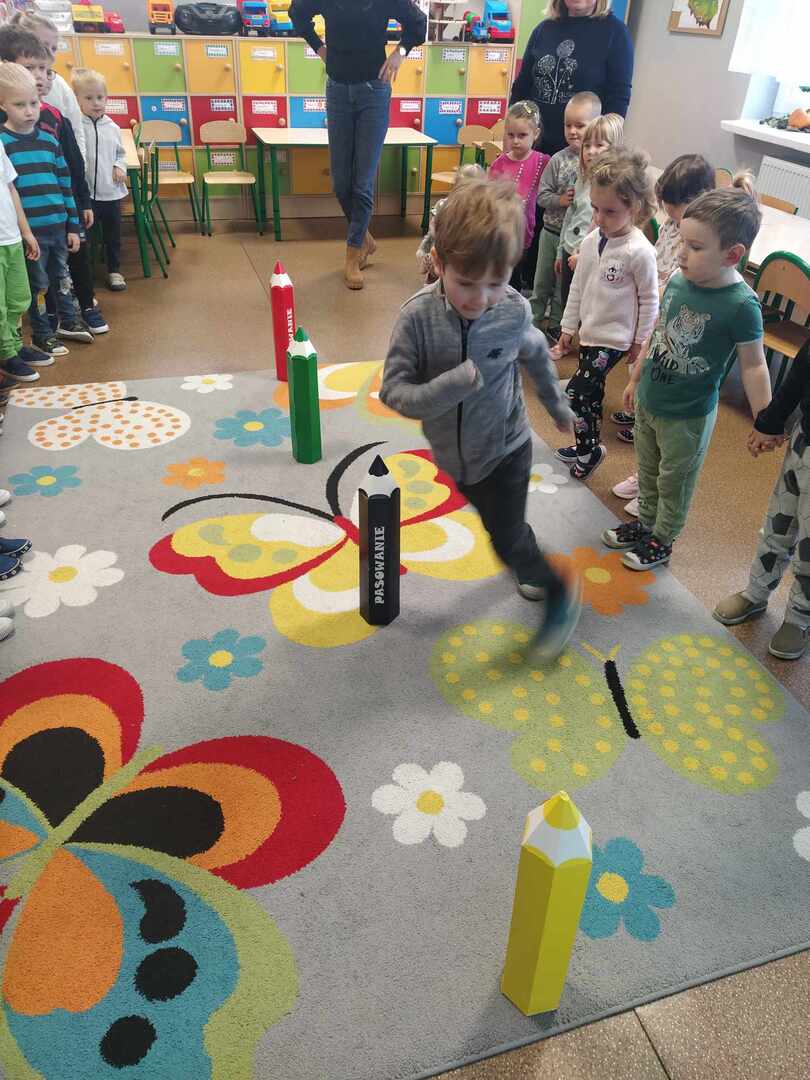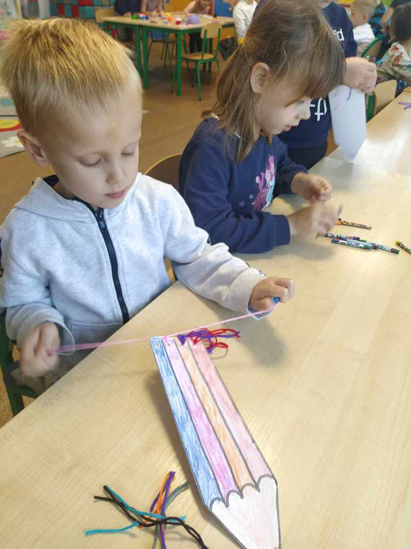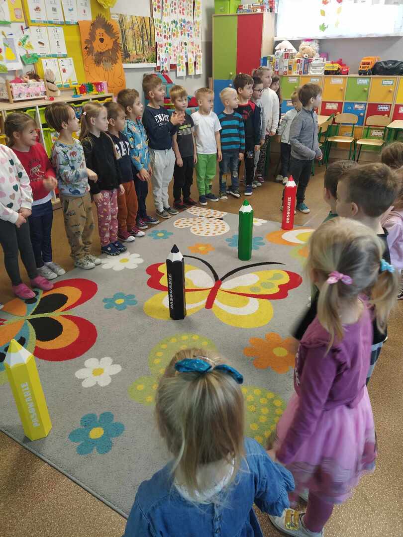 Dzieci wesoło bawiły się podczas zabaw rytmicznych oraz ruchowych przy piosence „Kolorowe kredki”. Wykonały piękną zakładkę do książki. Był to bardzo wesoły i kolorowy dzień.