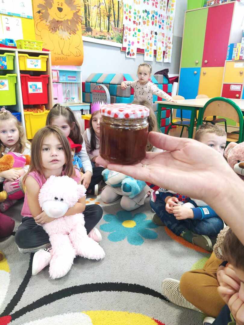 Przedszkolaki zostały zaproszone do wspólnej zabawy w misiowej krainie. Poznały historię święta, wspólnie recytowały wiersz o misiu. Dla dzieci tego dnia przygotowano wiele atrakcji: zabawy ruchowe i plastyczne, zagadki, misiowe tańce oraz degustację herbaty z miodem.
