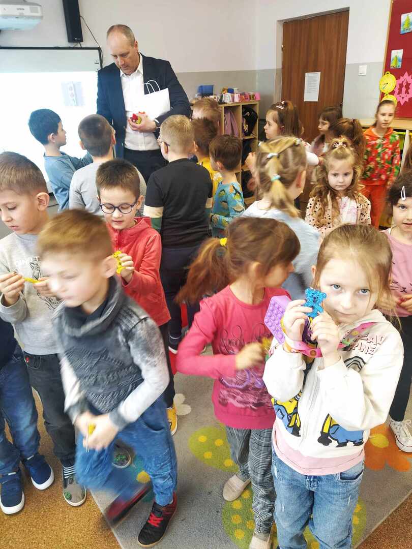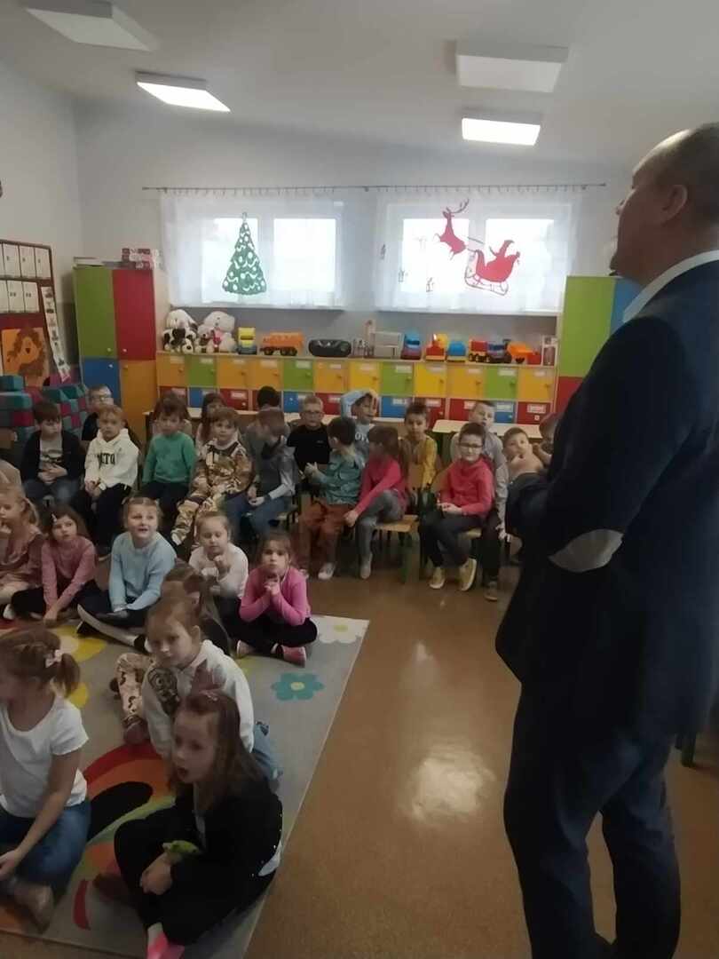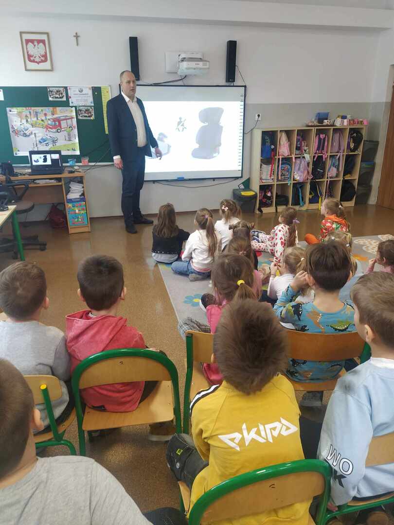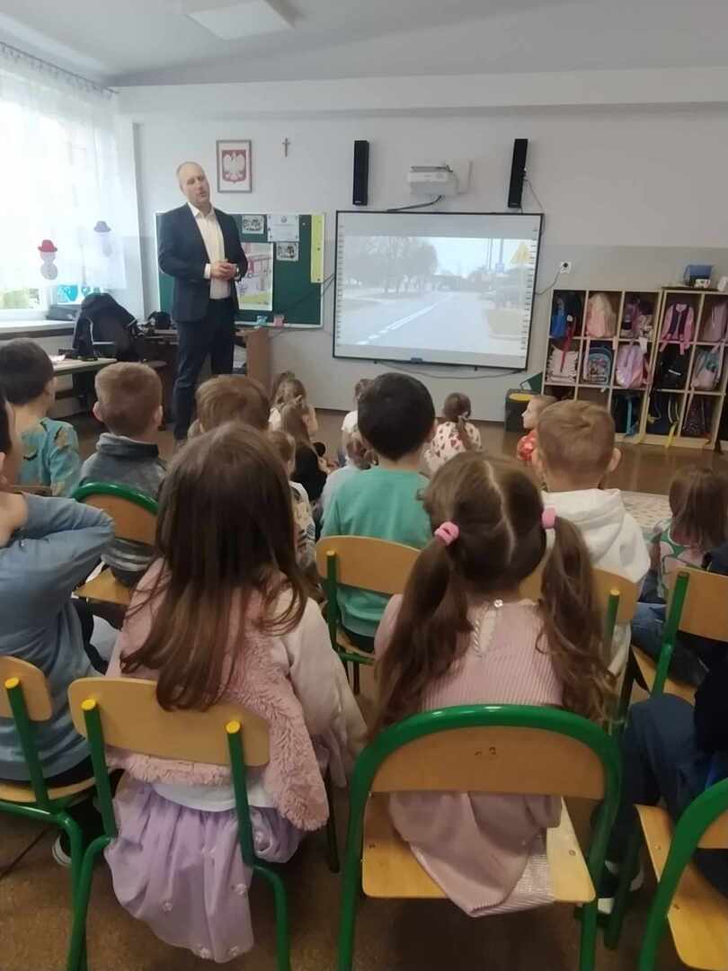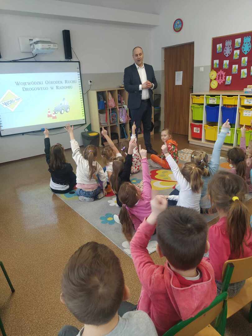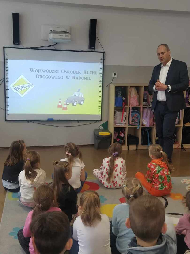 8 lutego w ramach akcji „Widoczny i bezpieczny przedszkolak” oraz „Bezpieczny pierwszoklasista” odbyło się spotkanie z przedstawicielem Wojewódzkiego Ośrodka Ruchu Drogowego na temat bezpiecznych zachowań na drodze. Podczas spotkania dzieci utrwaliły zasady ruchu drogowego oraz obiecały, że będą nosiły odblaski, które dostały w prezencie podczas prelekcji.