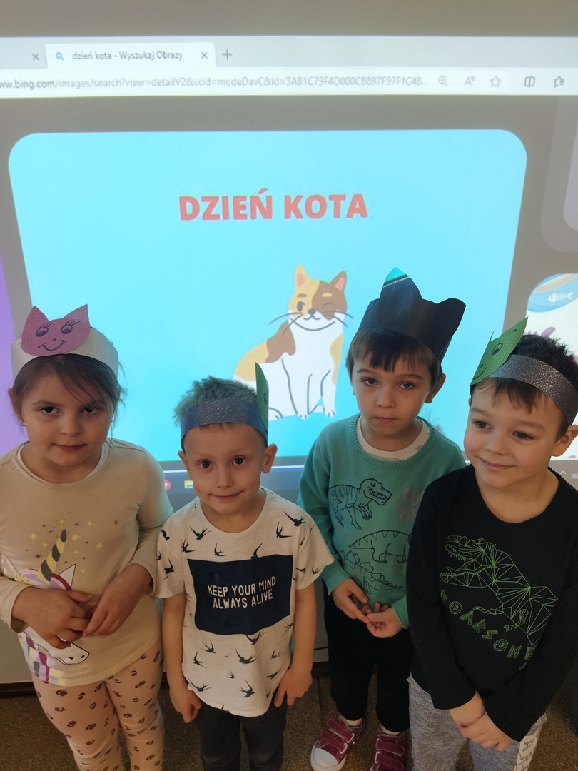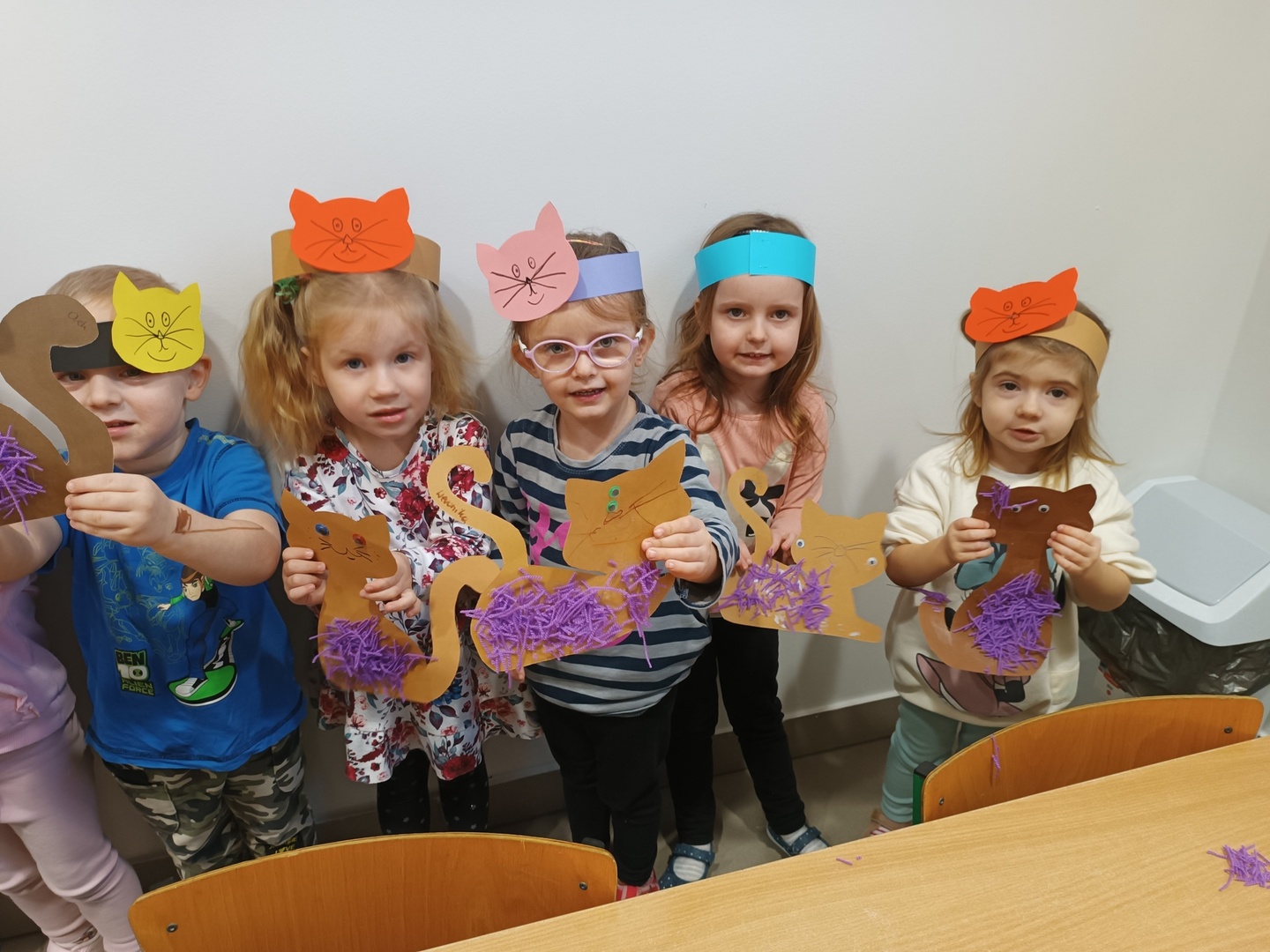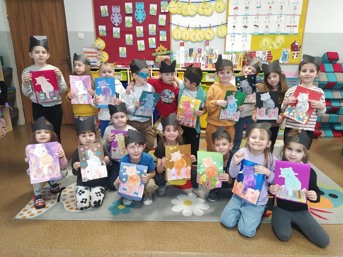 W poniedziałek 19.02. obchodziliśmy nietypowe święto „Światowy Dzień Kota”. Tego dnia w oddziałach przedszkolnych zajęcia i zabawy zdominowała "kocia" tematyka. Przedszkolaki obejrzały prezentację multimedialną, nauczyły się wiersza oraz wykonały pracę plastyczną. Była to wspaniała okazja, by uwrażliwić dzieci na potrzeby wszystkich zwierząt. Dzień spędziliśmy w radosnej atmosferze.