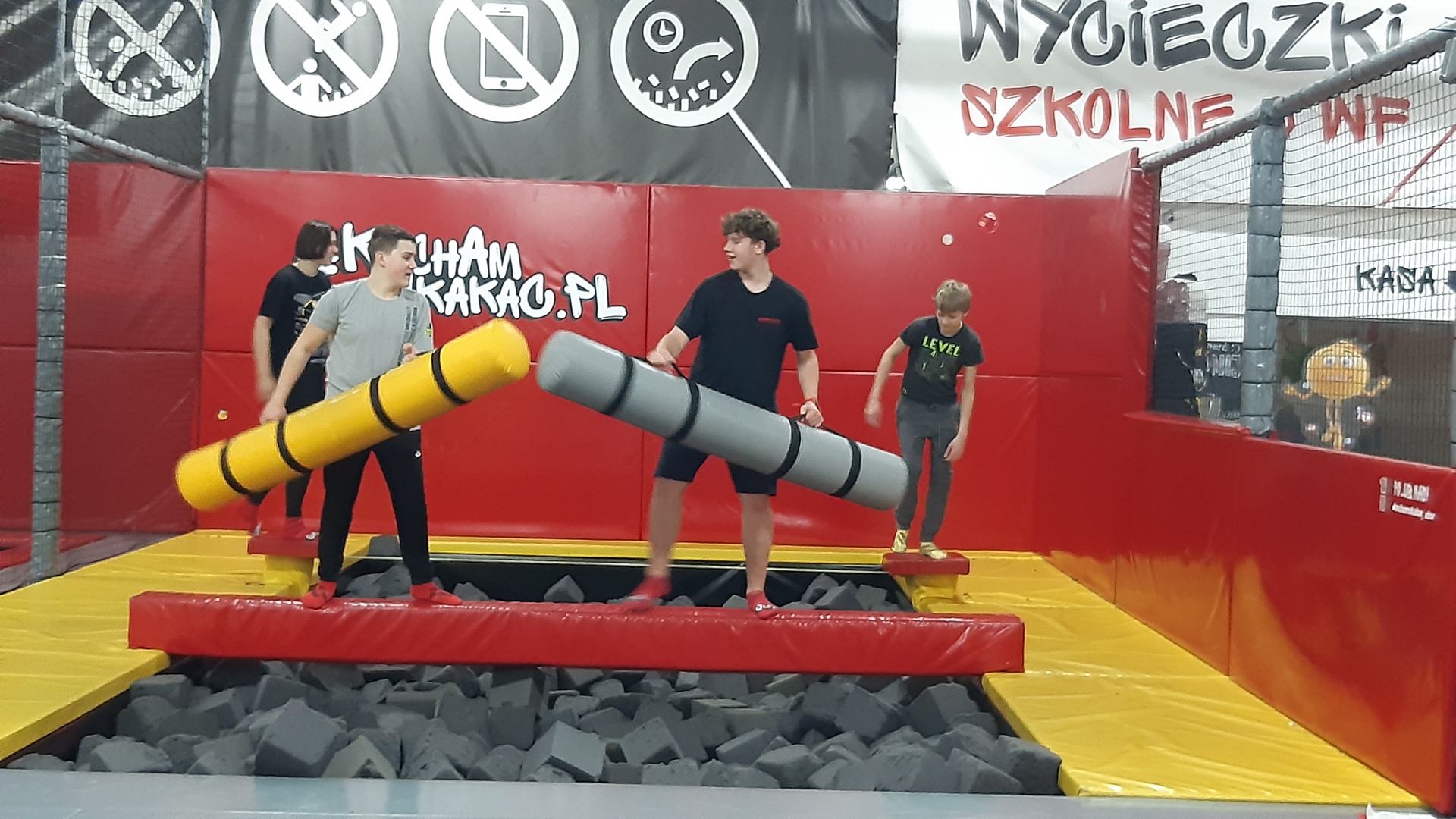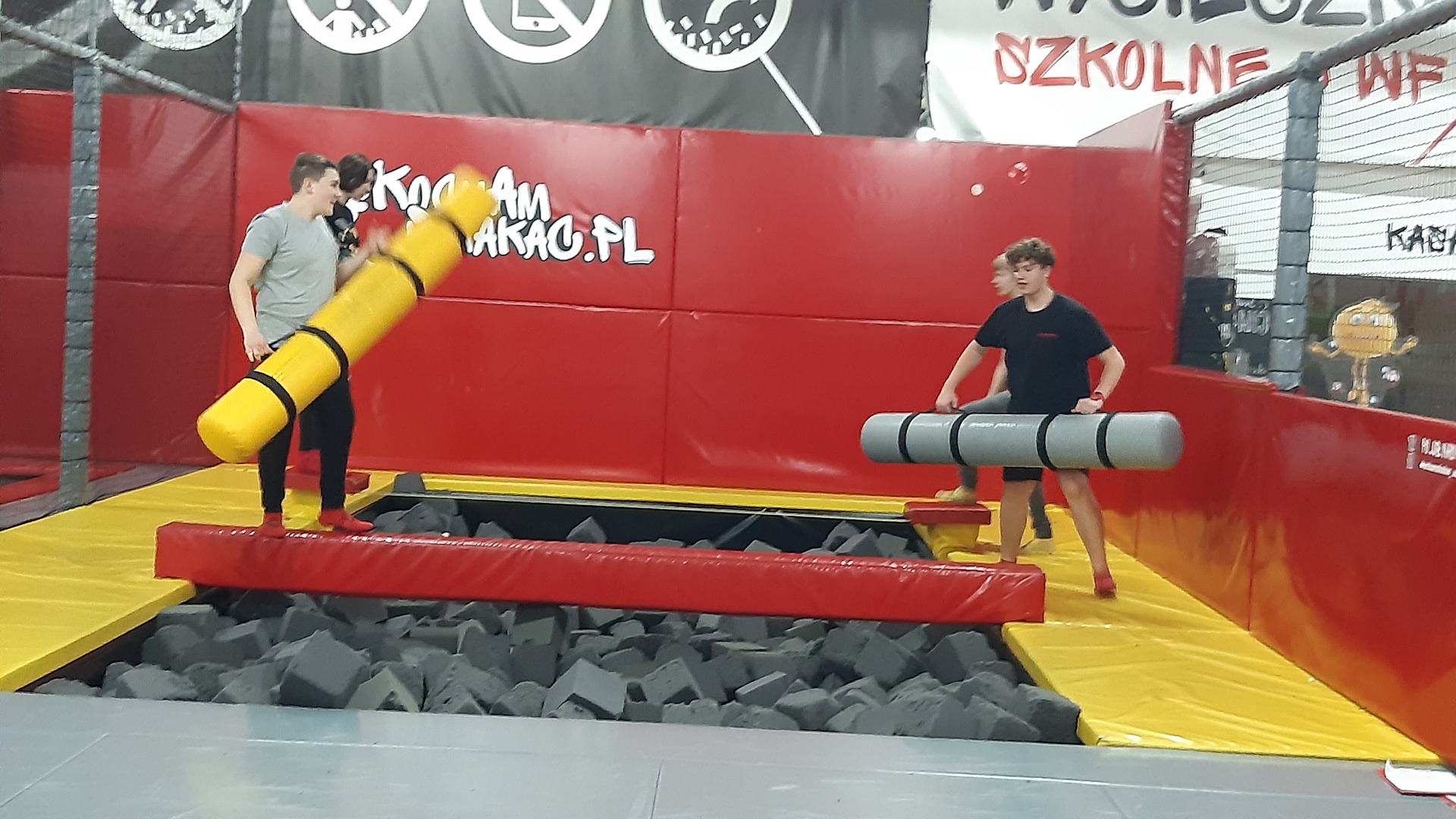 Park Trampolin #Kocham Skakać dostarczył uczniom wielu atrakcji: basen z gąbkami, poducha powietrzna, gladiatorzy…! Zabawa była super.