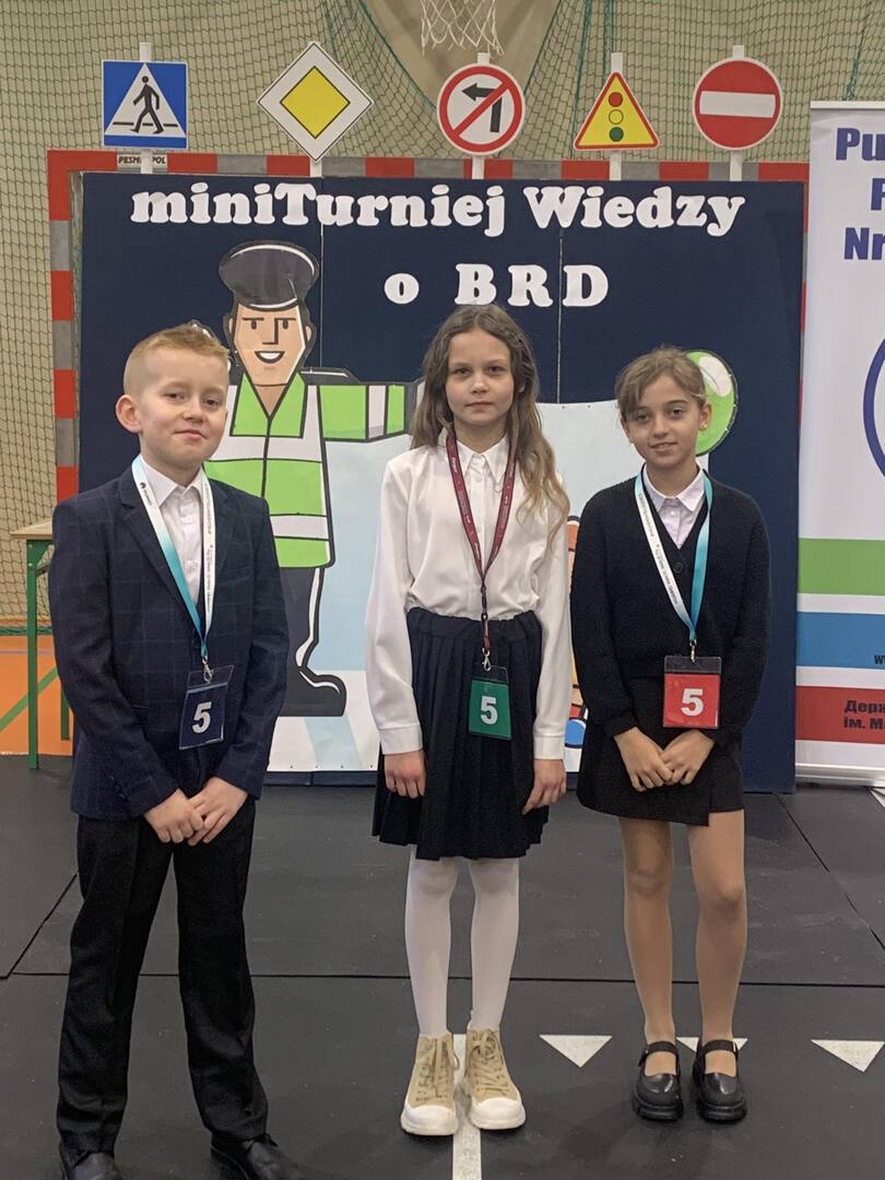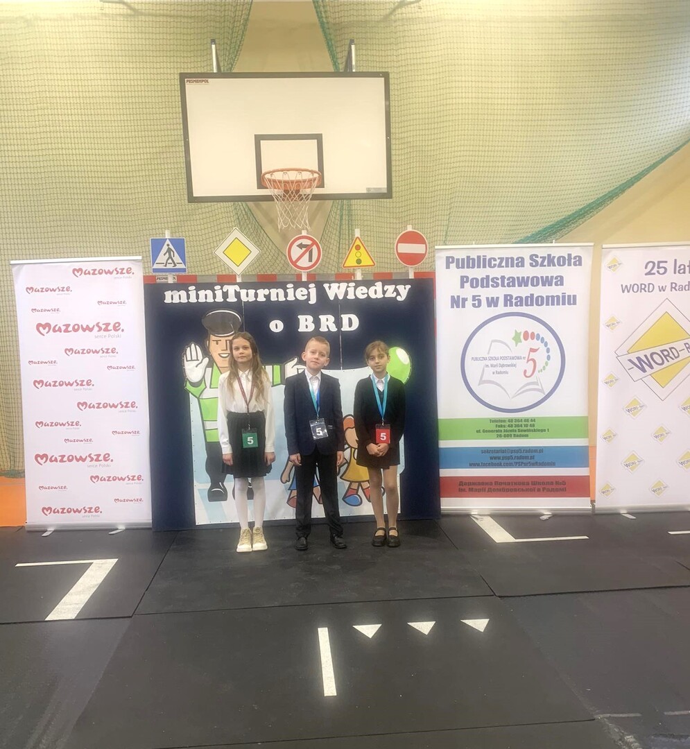 W dniu 6 marca 2024 roku w Publicznej Szkole Podstawowej nr 5 im. Marii Dąbrowskiej w Radomiu odbyła się kolejna edycja "Powiatowego MiniTurnieju Wiedzy o BRD dla Klas I-III Szkół Podstawowych". Organizatorami konkursu i fundatorami nagród byli: Samorząd Mazowsza, WORD Radom i PSP nr 5 im. Marii Dąbrowskiej. W turnieju wzięło udział 15 szkół. Naszą szkołę reprezentowała trzyosobowa drużyna uczniów klasy III w składzie: Nikola Michałowska, Klara Rafalak, Adrian Stępień. Turniej składał się z części teoretycznej i praktycznej. Nasi reprezentanci mogą poszczycić się dużym sukcesem - drużynowo zdobyli II miejsce, indywidualnie uczennica Klara Rafalak zajęła miejsce III. Zwycięzcy otrzymali dyplomy i piękne nagrody rzeczowe. Serdecznie gratulujemy i życzymy dalszych sukcesów.