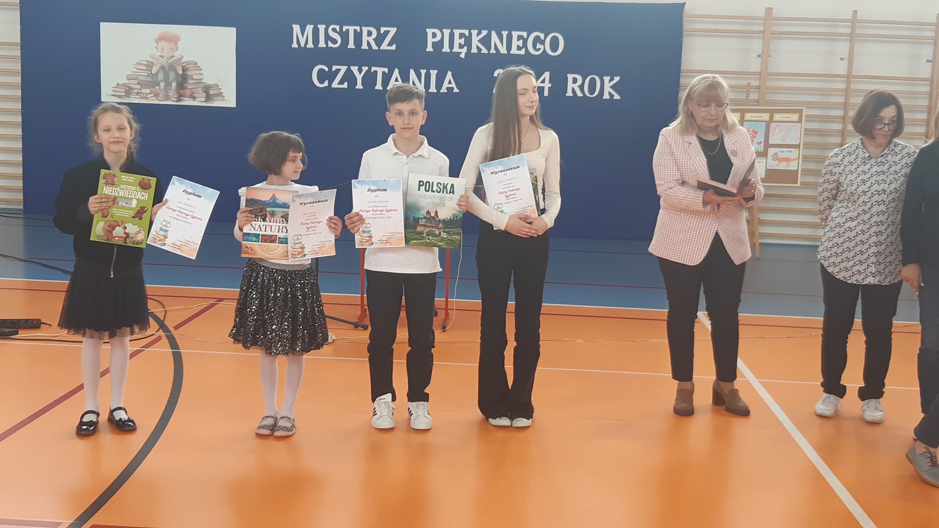Tytuł Mistrza Pięknego Czytania w kategorii klas V – VIII zdobył uczeń klasy VI - Jarosław Koszelnik, a wyróżnienie w tej kategorii otrzymała uczennica klasy VII – Julia Walczak i uczeń klasy V– Piotr Pajerczak.