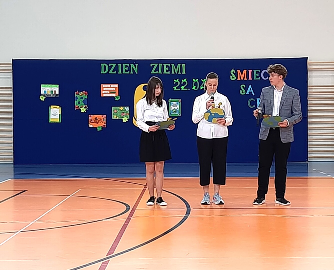 W tym tygodniu w naszej szkole obchodziliśmy Dzień Ziemi. Z tej okazji odbył apel, którego hasło przewodnie brzmiało „ŚMIECI SĄ CENNE”.