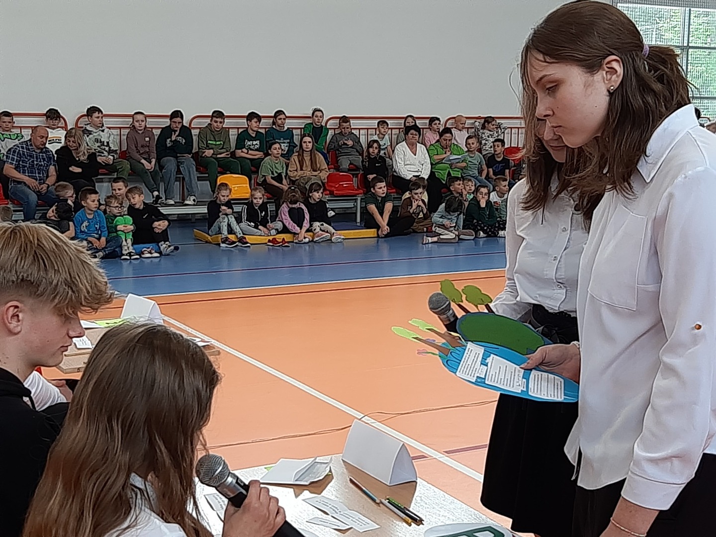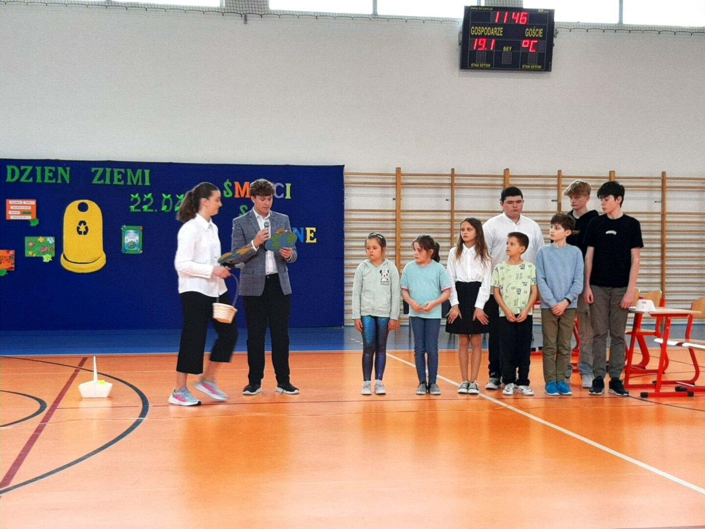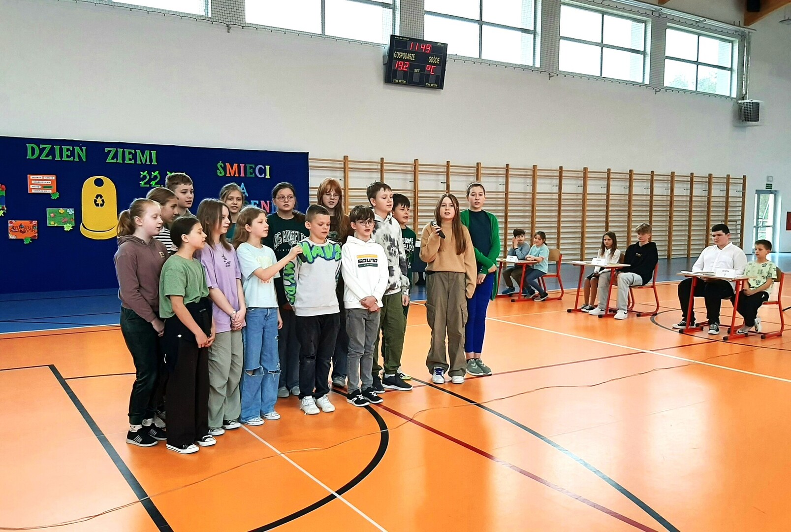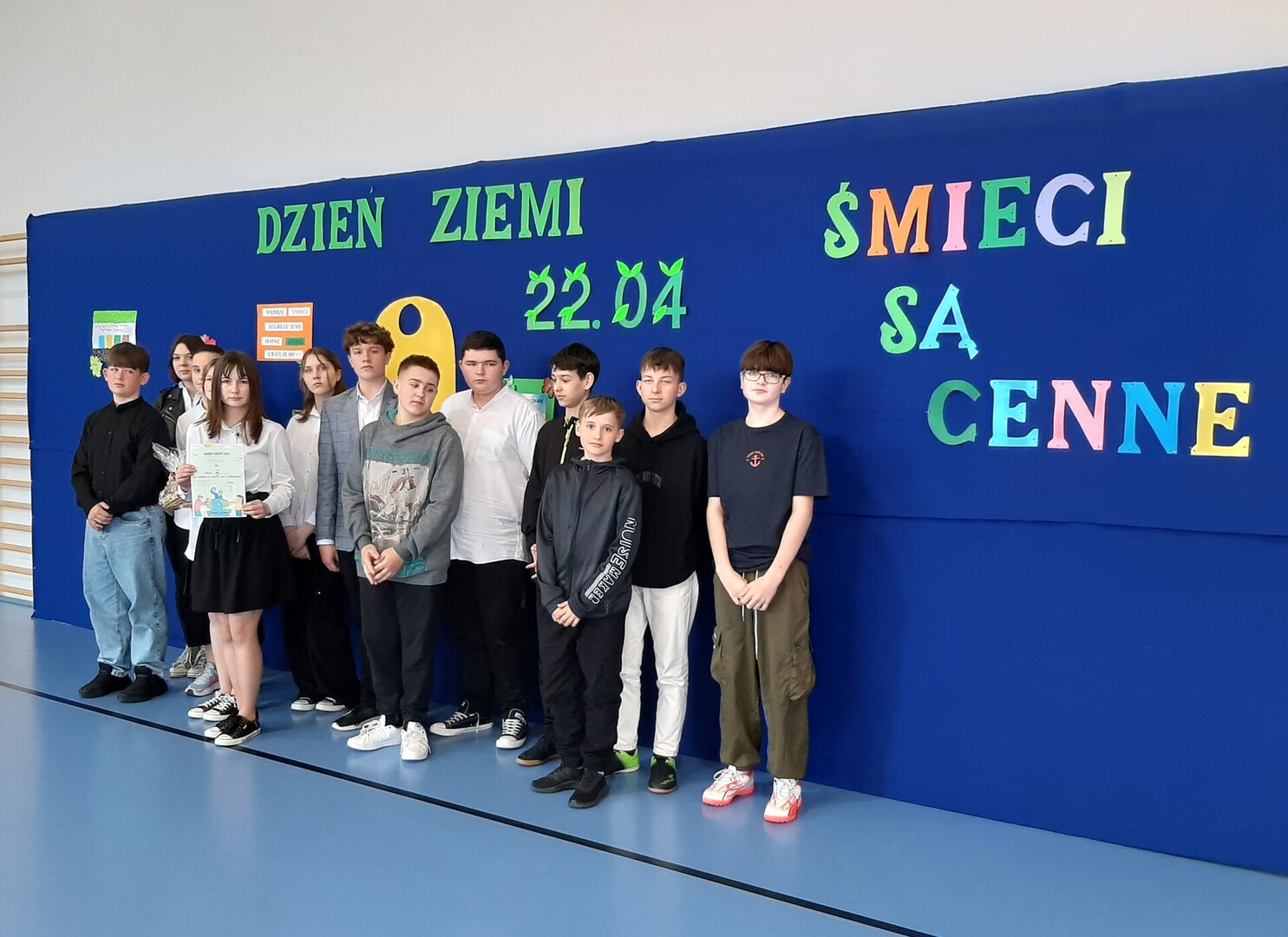 Uczniowie klasy 7 przygotowali zadania konkursowe dla wybranych wcześniej przedstawicieli poszczególnych oddziałów. Zespoły rywalizowały w konkursie “Śmieci są cenne”. Chcąc zaangażować jak największą liczbę uczniów przygotowali również zadania dla publiczności.