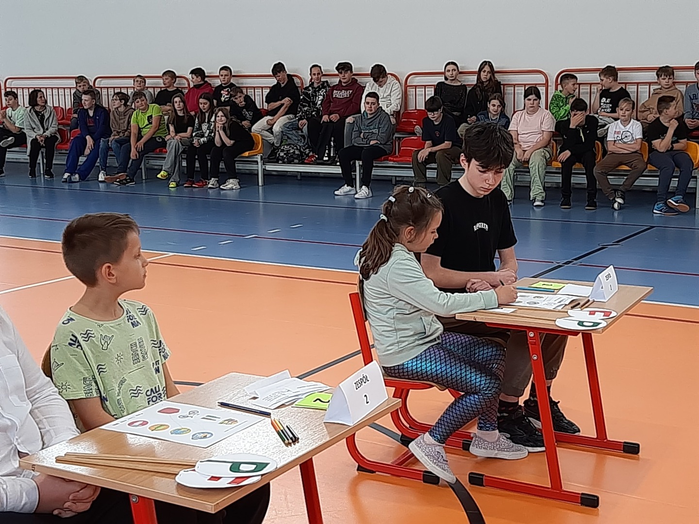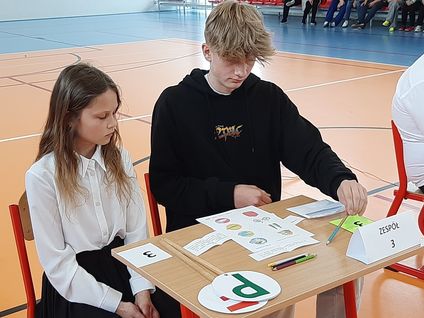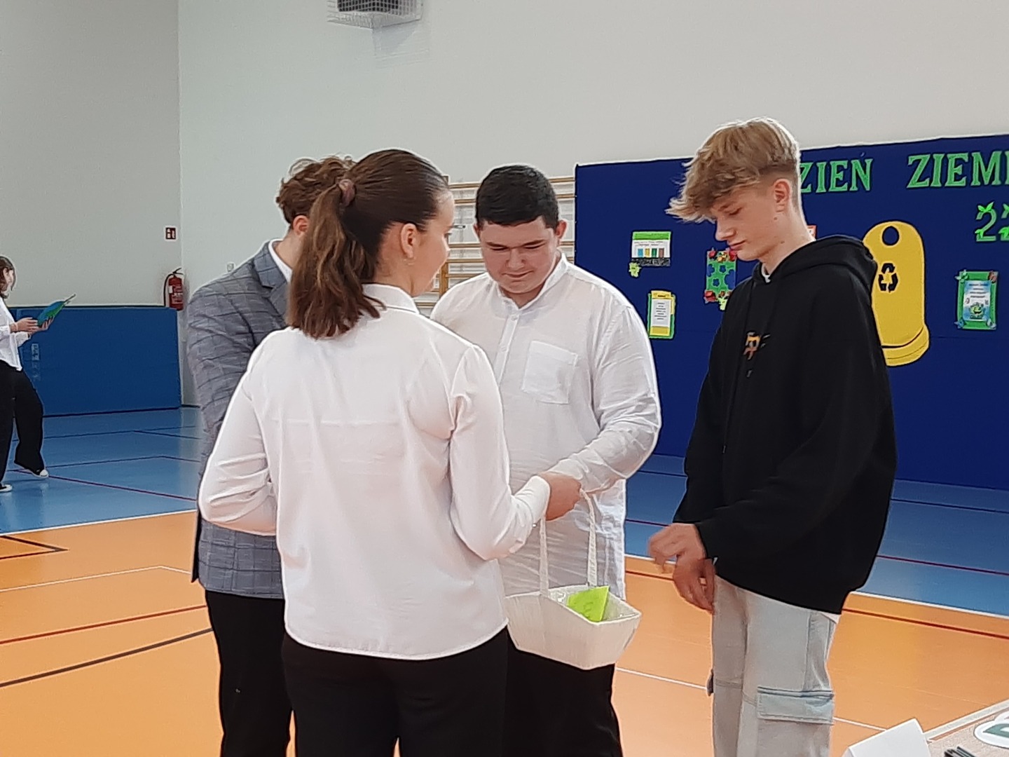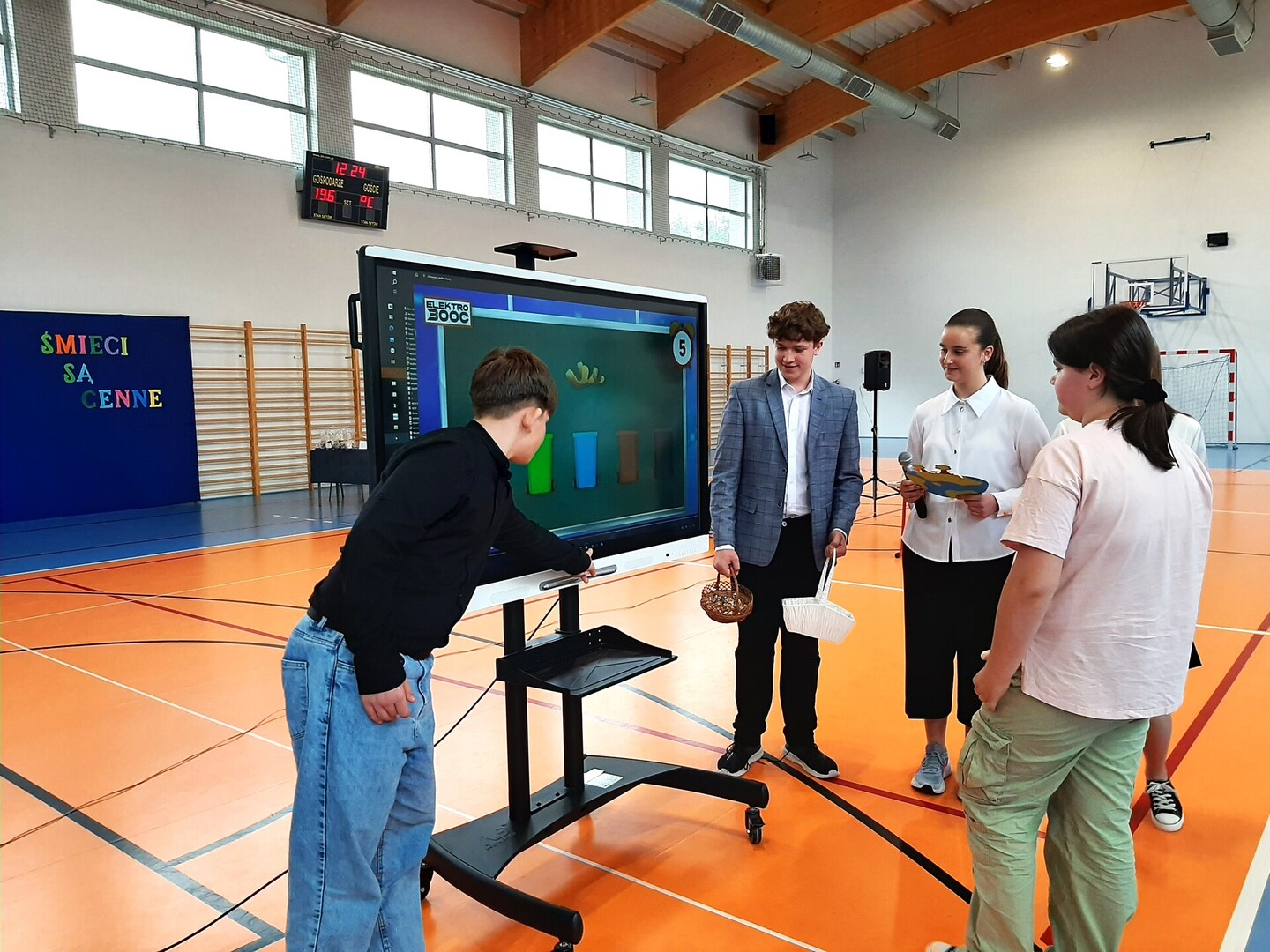 Uczniowie klasy 7 przygotowali zadania konkursowe dla wybranych wcześniej przedstawicieli poszczególnych oddziałów. Zespoły rywalizowały w konkursie “Śmieci są cenne”. Chcąc zaangażować jak największą liczbę uczniów przygotowali również zadania dla publiczności.