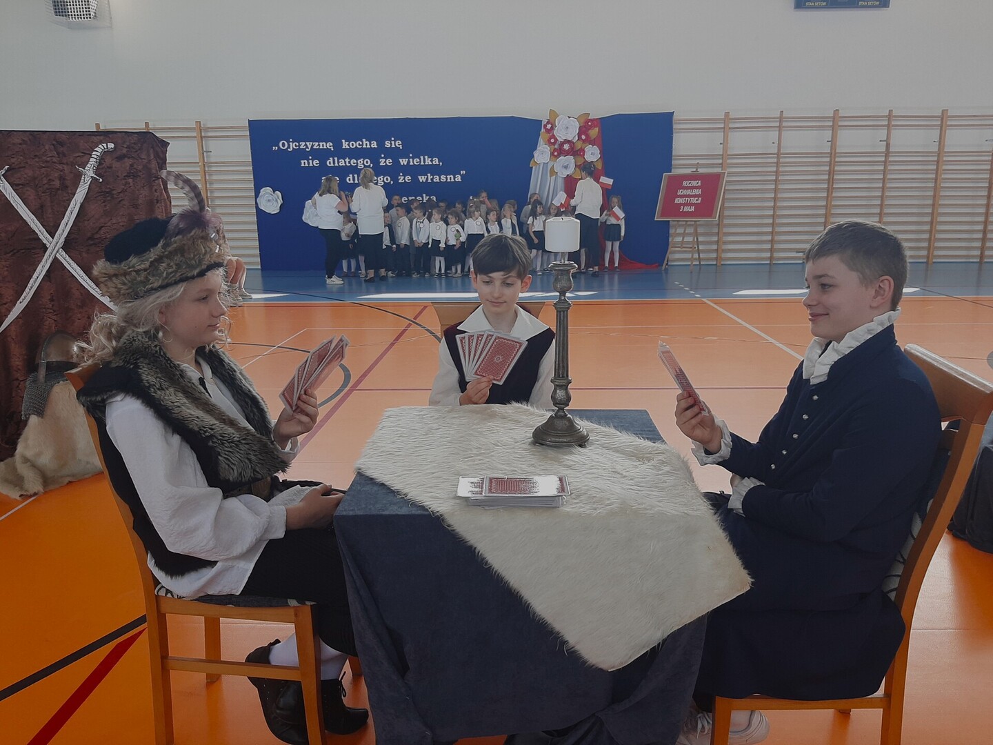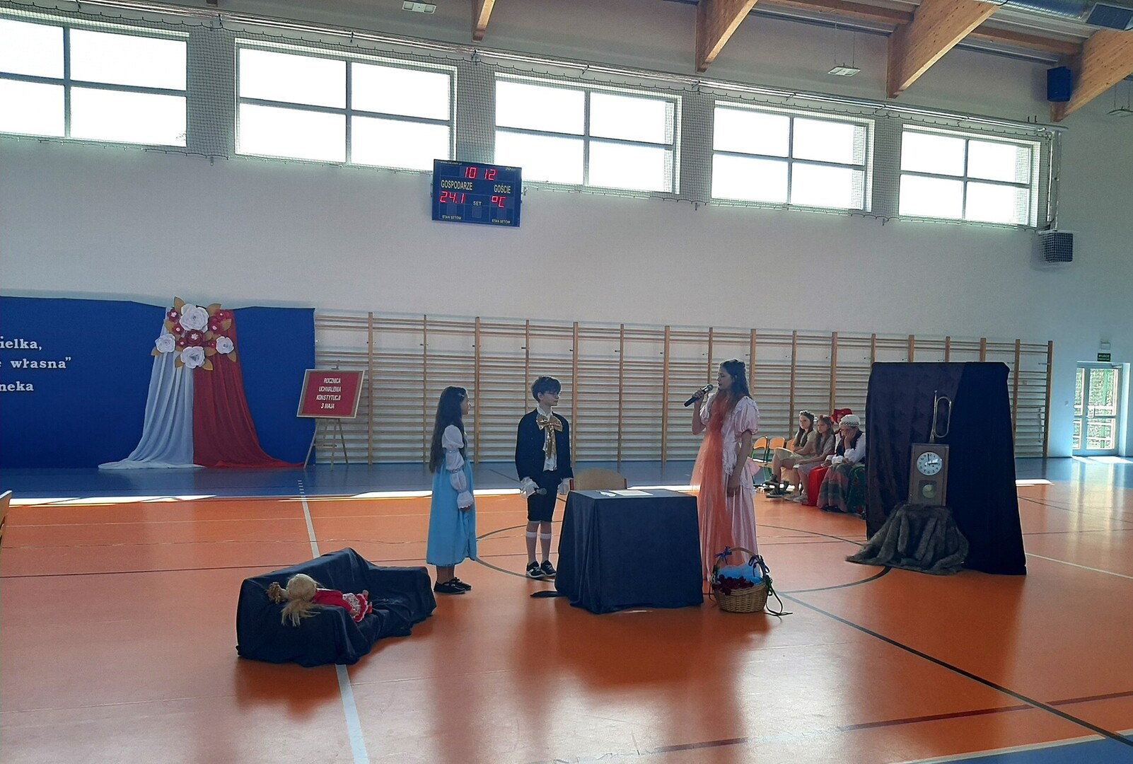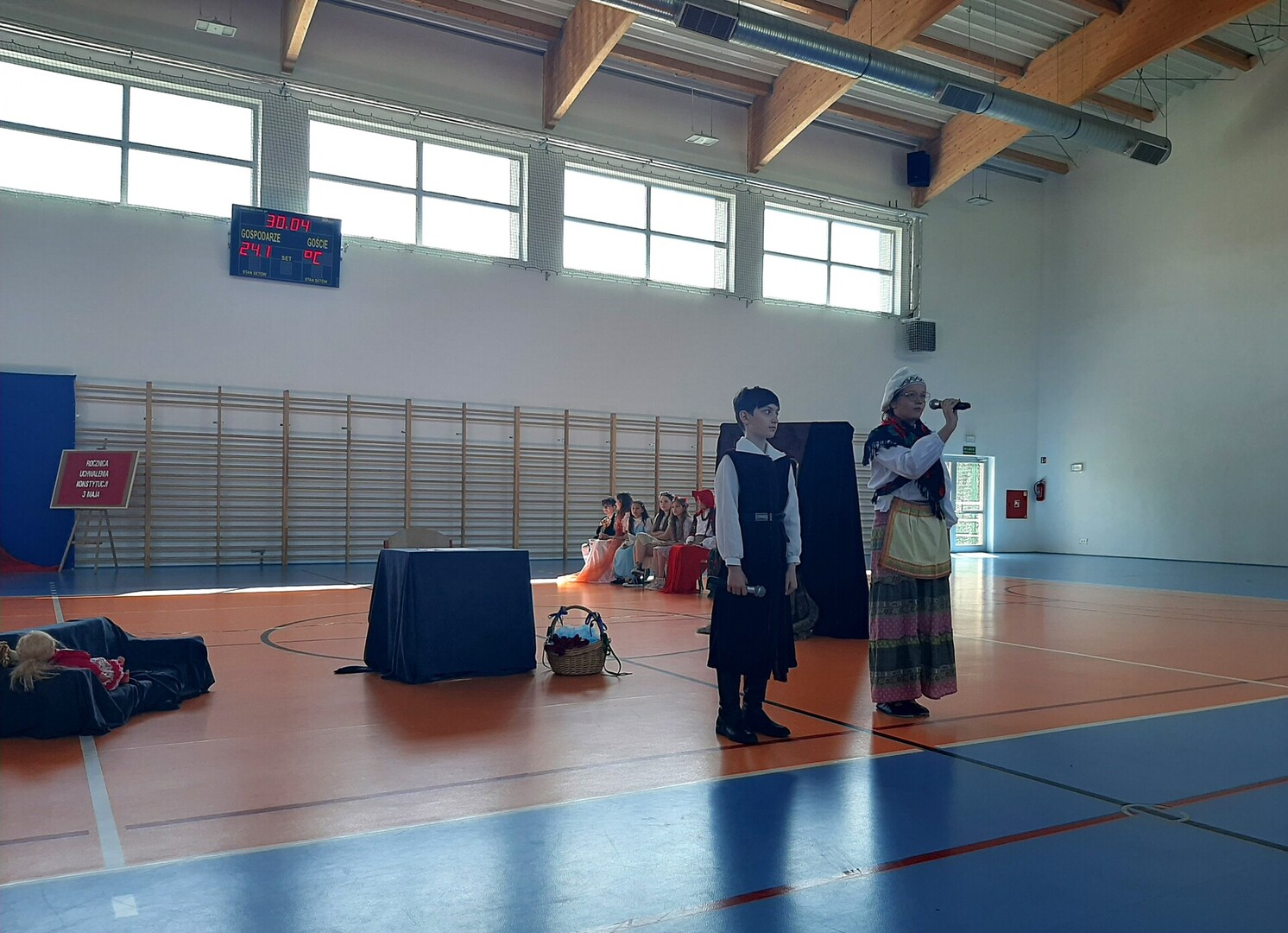 Po krótkiej lekcji patriotyzmu (prezentacji multimedialne i quizie historycznym) obejrzeliśmy miniaturę teatralną w wykonaniu uczniów klasy 5.