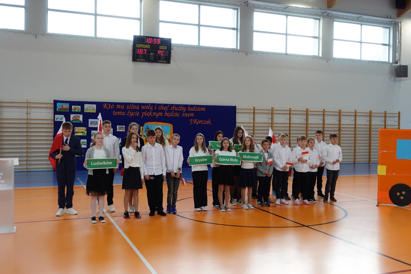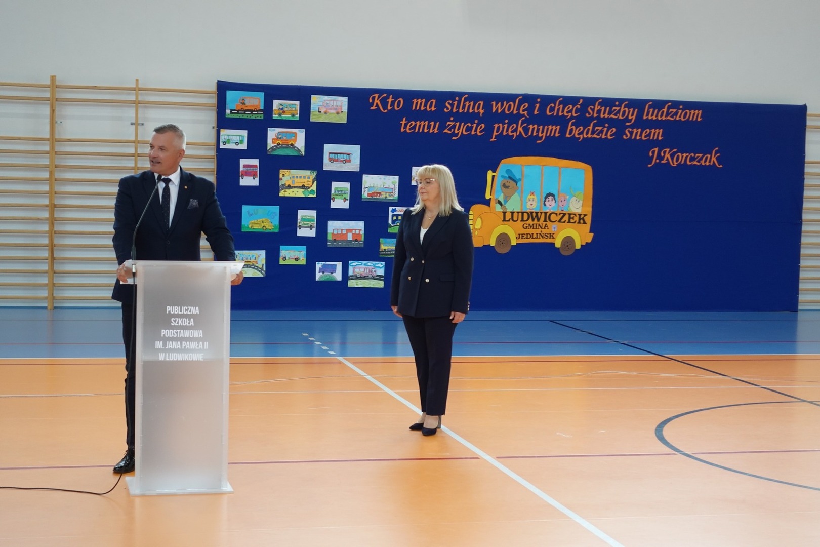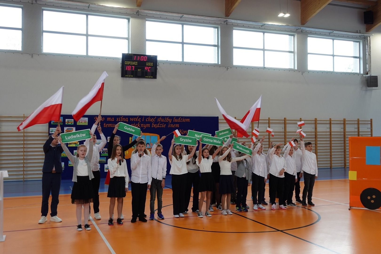 W uroczystości uczestniczyli przedstawiciele władz wojewódzkich, powiatowych i gminnych oraz cała społeczność szkolna. Z tej radosnej okazji uczniowie PSP im. Jana Pawła II w Ludwikowie przygotowali krótki program artystyczny - wycieczkę po bliższych i dalszych zakątkach naszej pięknej Ojczyzny.