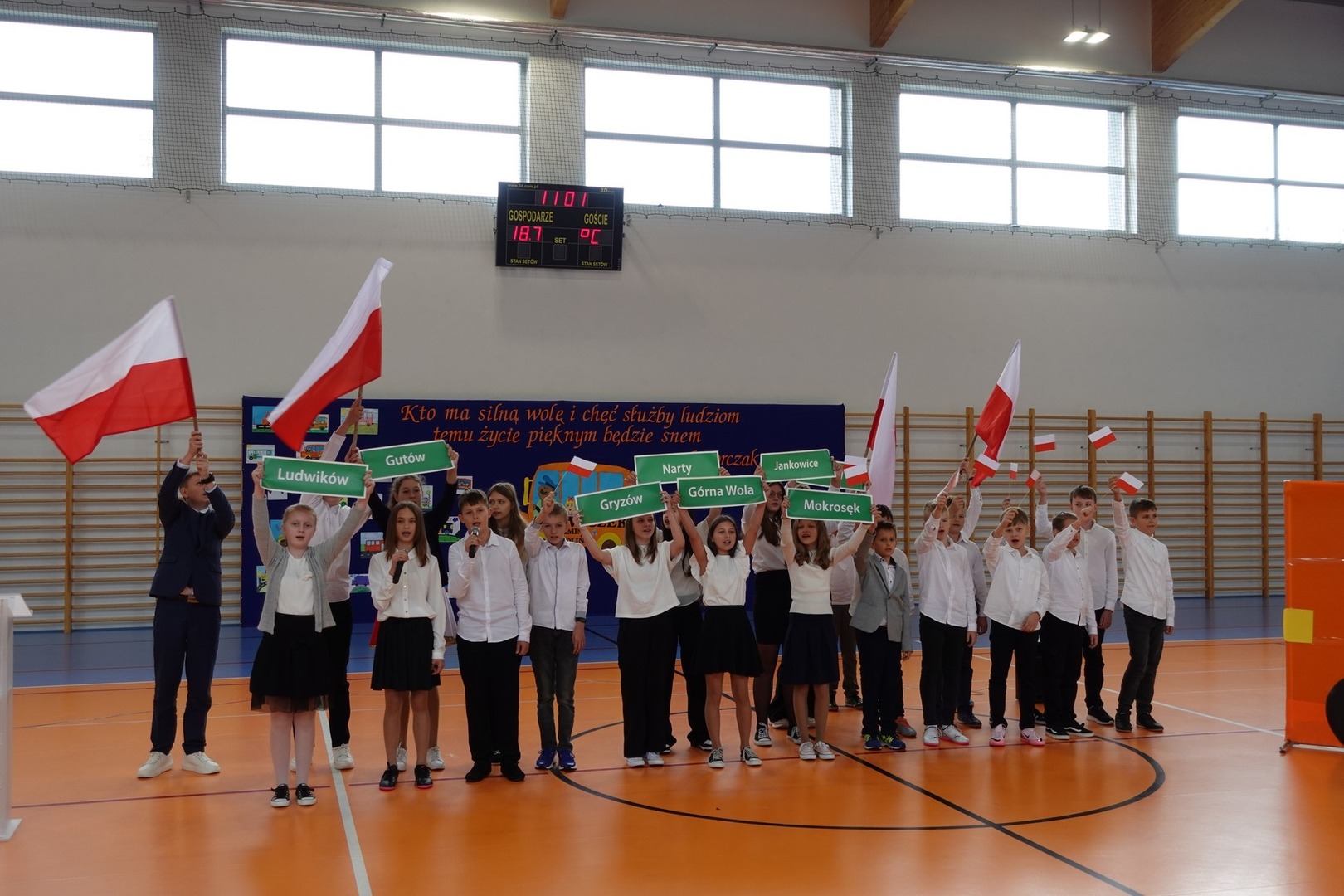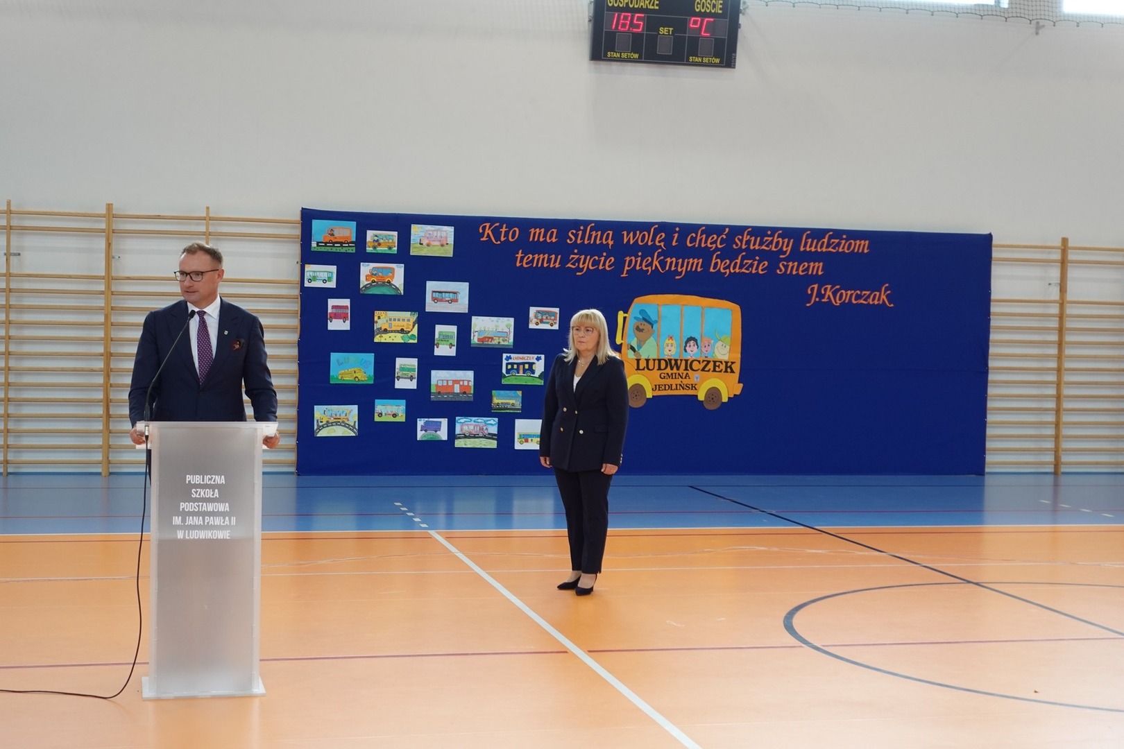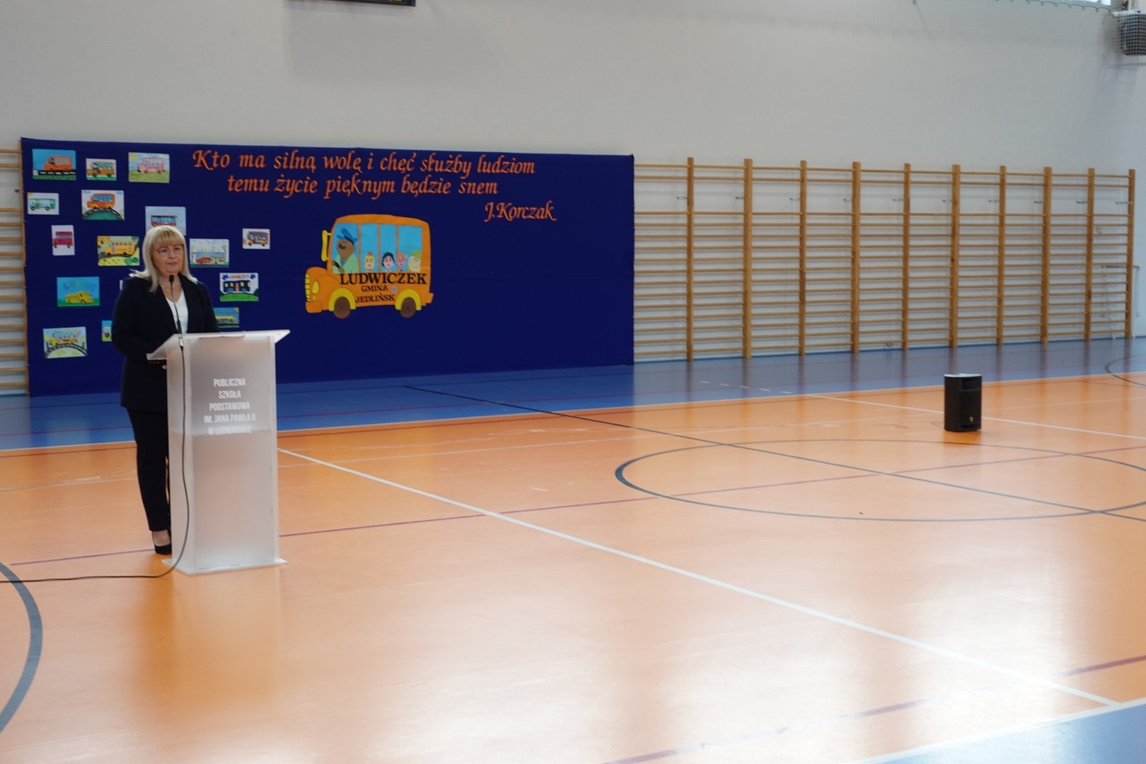 W uroczystości uczestniczyli przedstawiciele władz wojewódzkich, powiatowych i gminnych oraz cała społeczność szkolna. Z tej radosnej okazji uczniowie PSP im. Jana Pawła II w Ludwikowie przygotowali krótki program artystyczny - wycieczkę po bliższych i dalszych zakątkach naszej pięknej Ojczyzny.