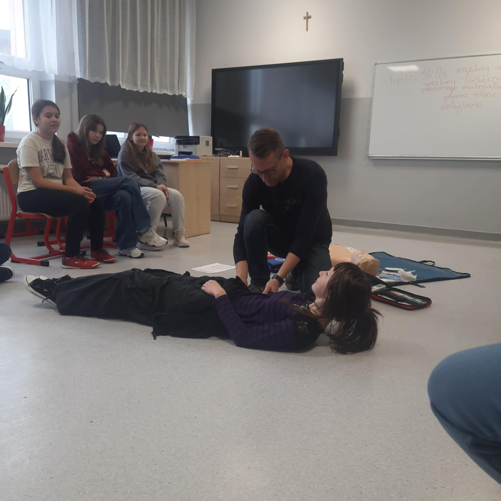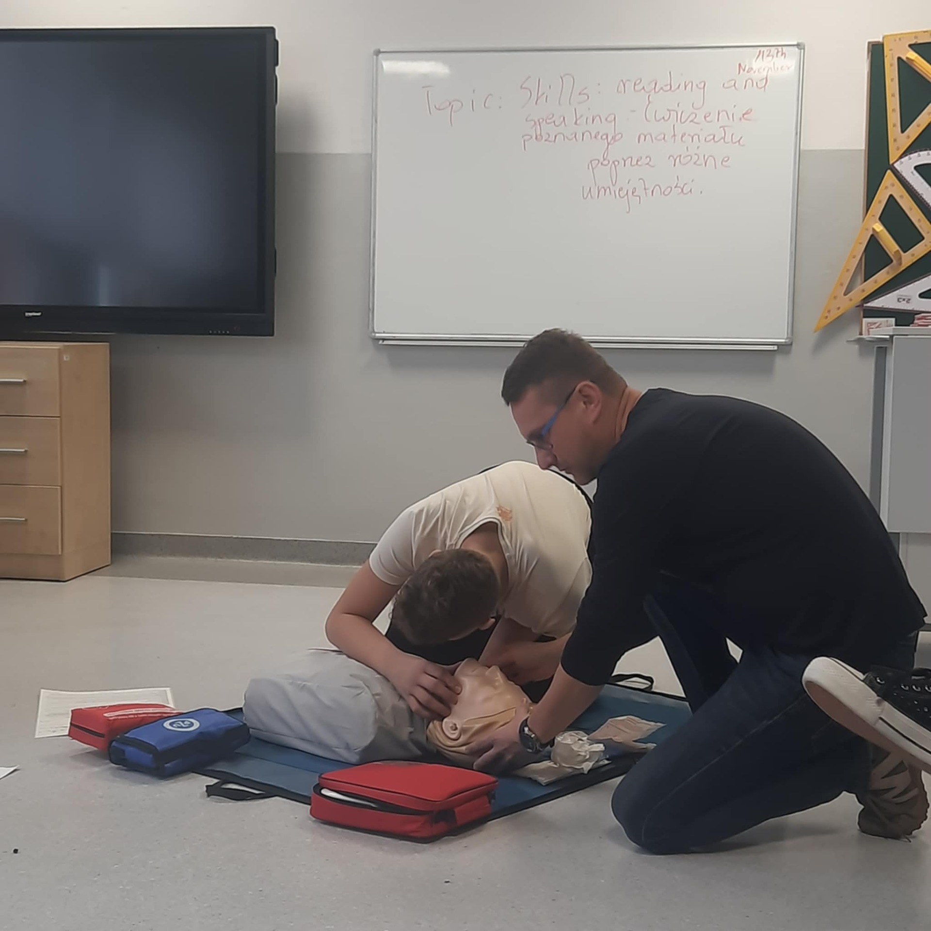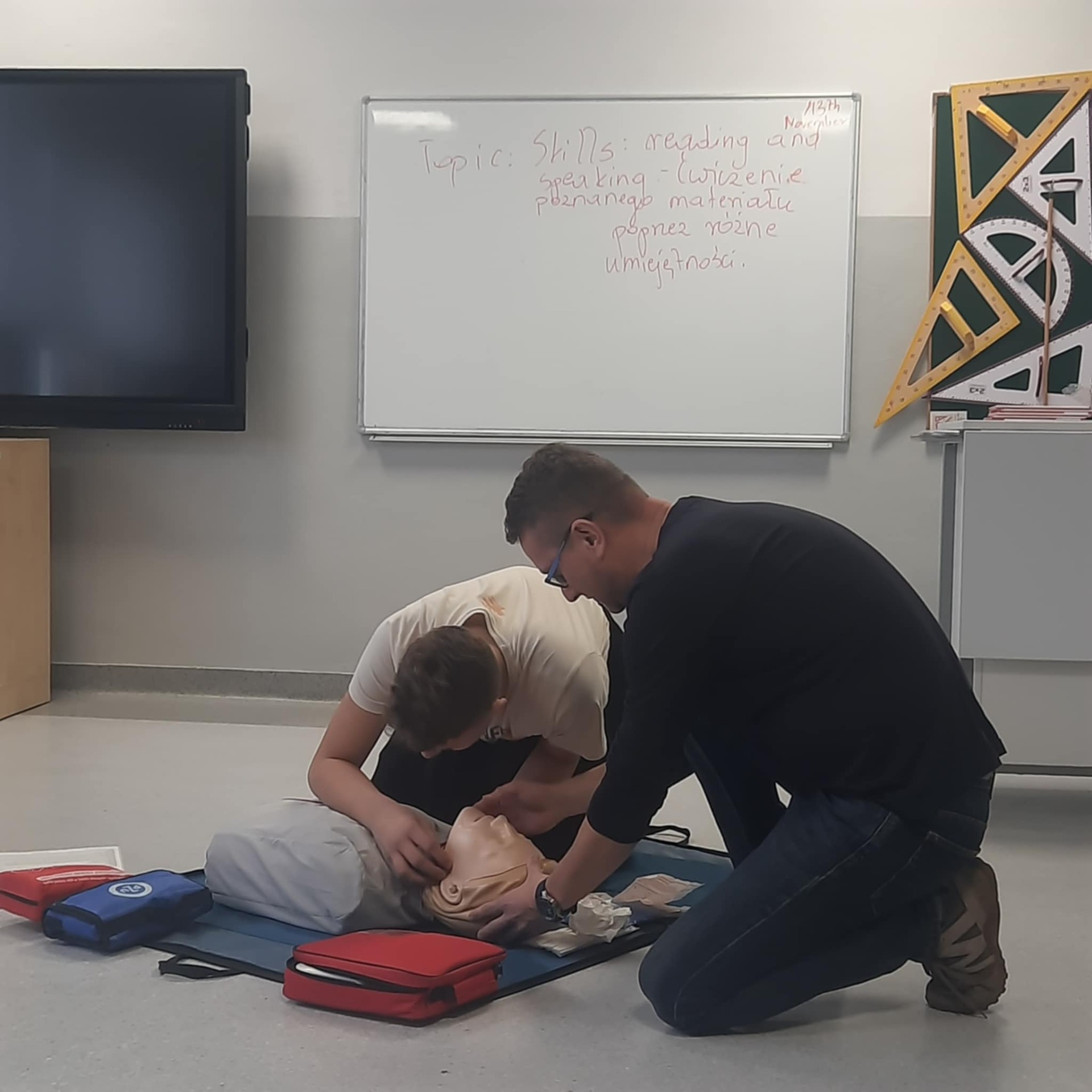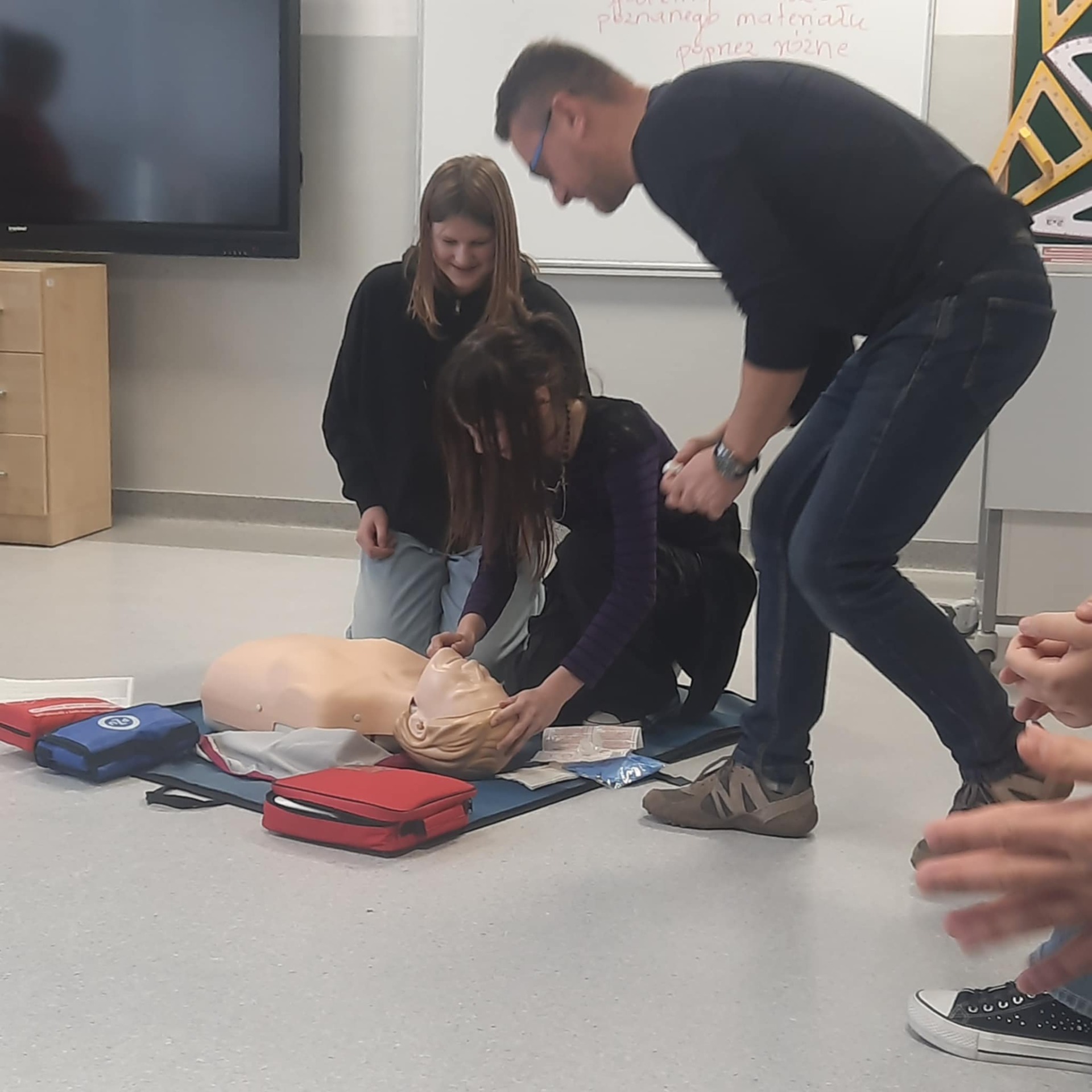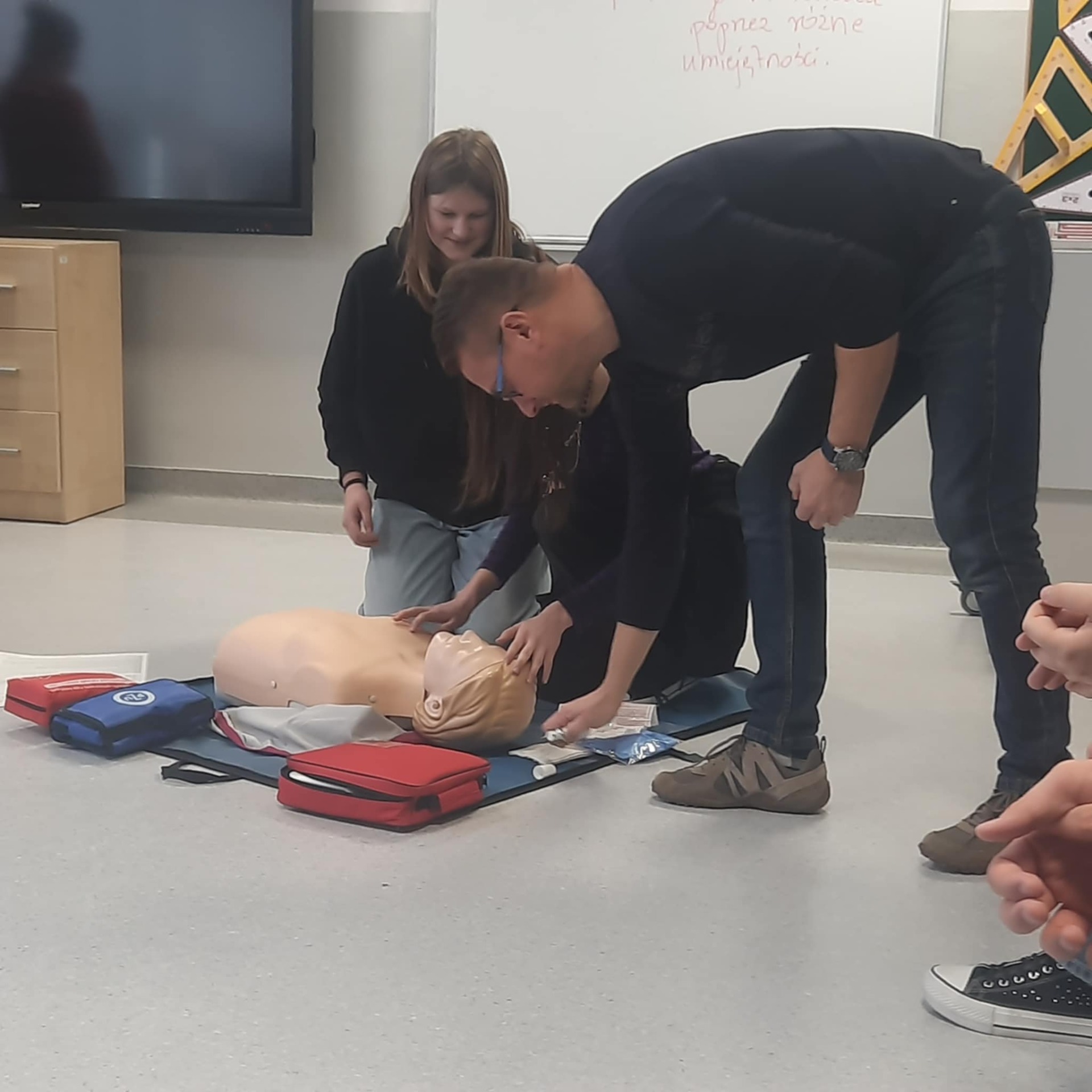 W czasie szkolenia uczniowie mieli okazję poćwiczyć na fantomie ustalony schemat udzielania pierwszej pomocy, oceniali podstawowe parametry życiowe, wykonywali resuscytację krążeniowo-oddechową, poznali zasadę działania oraz jak sposób użycia defibrylatora AED.