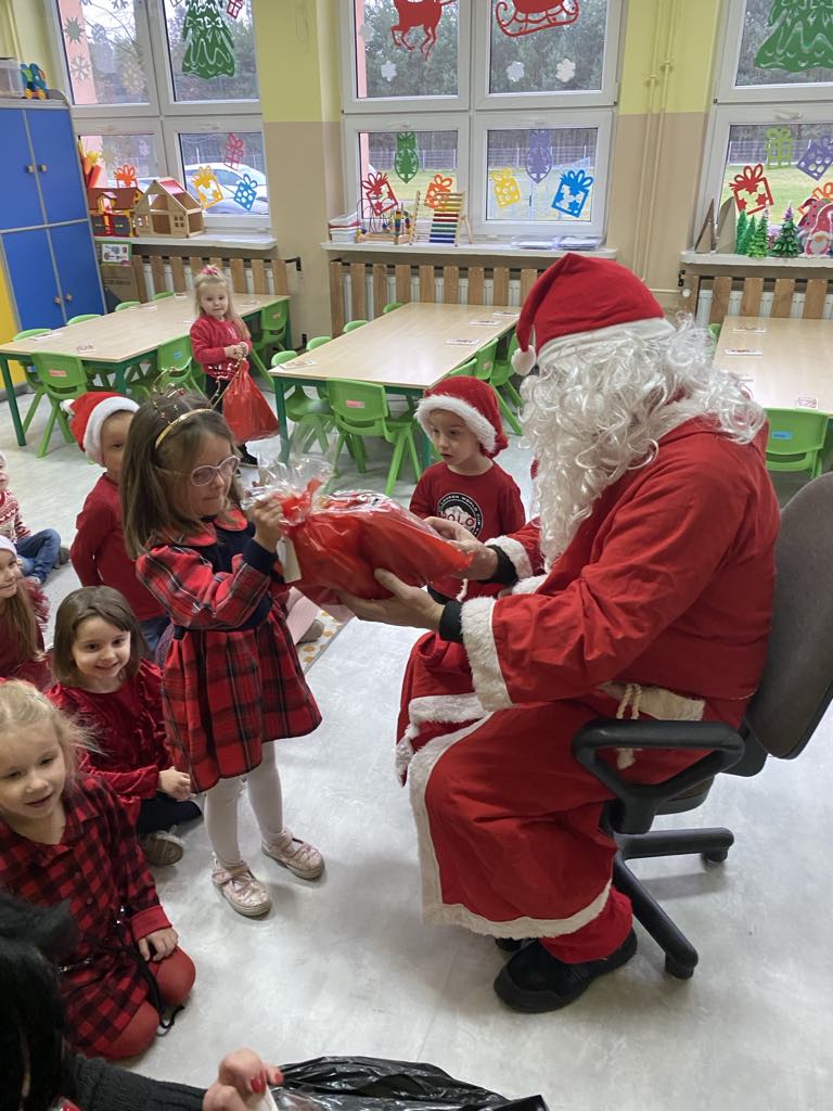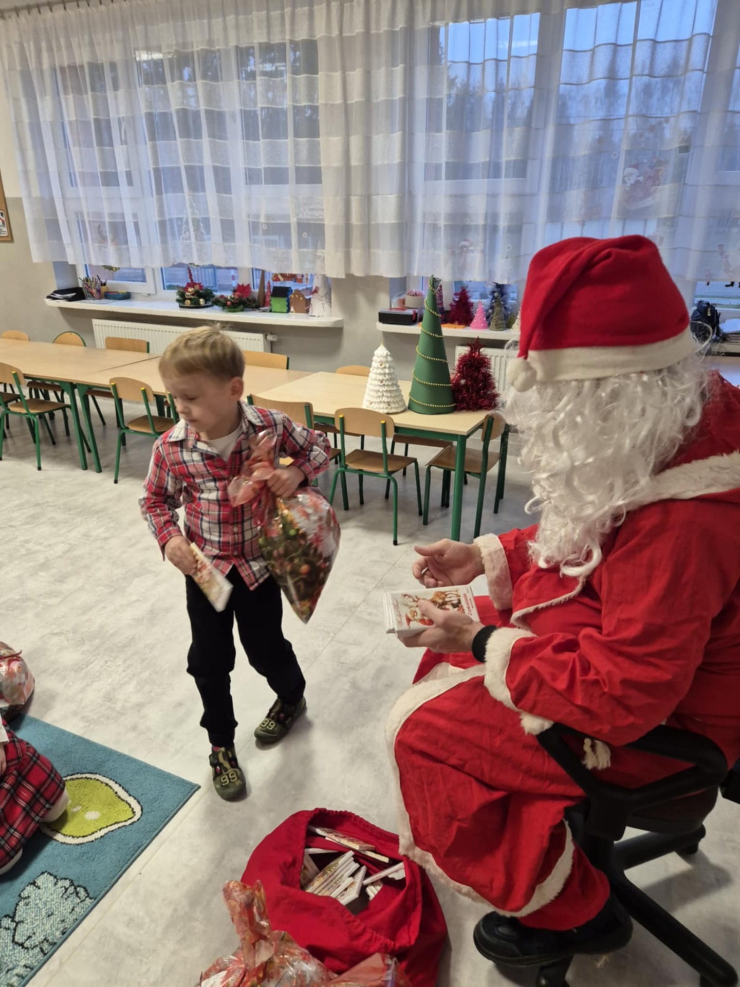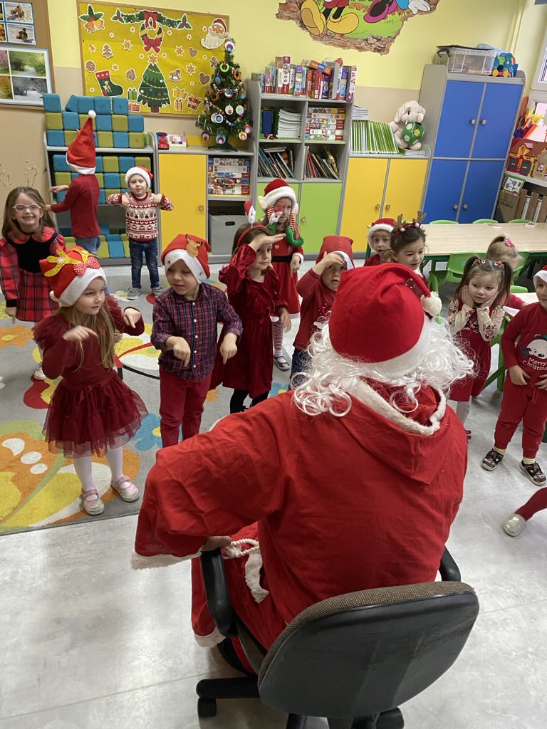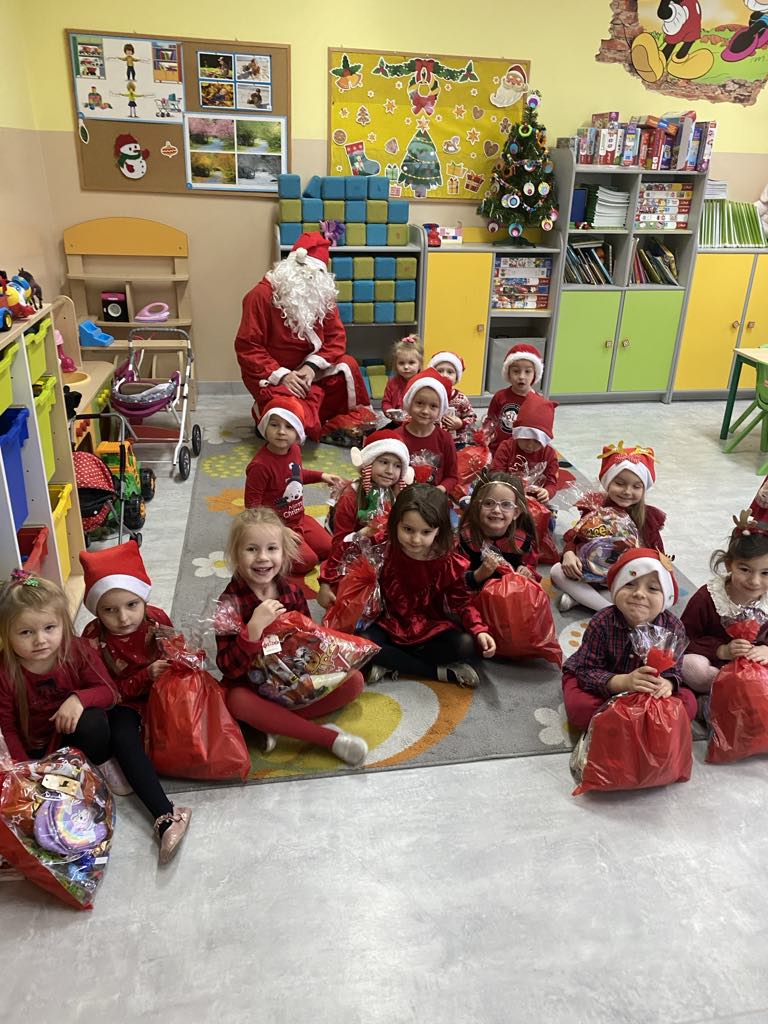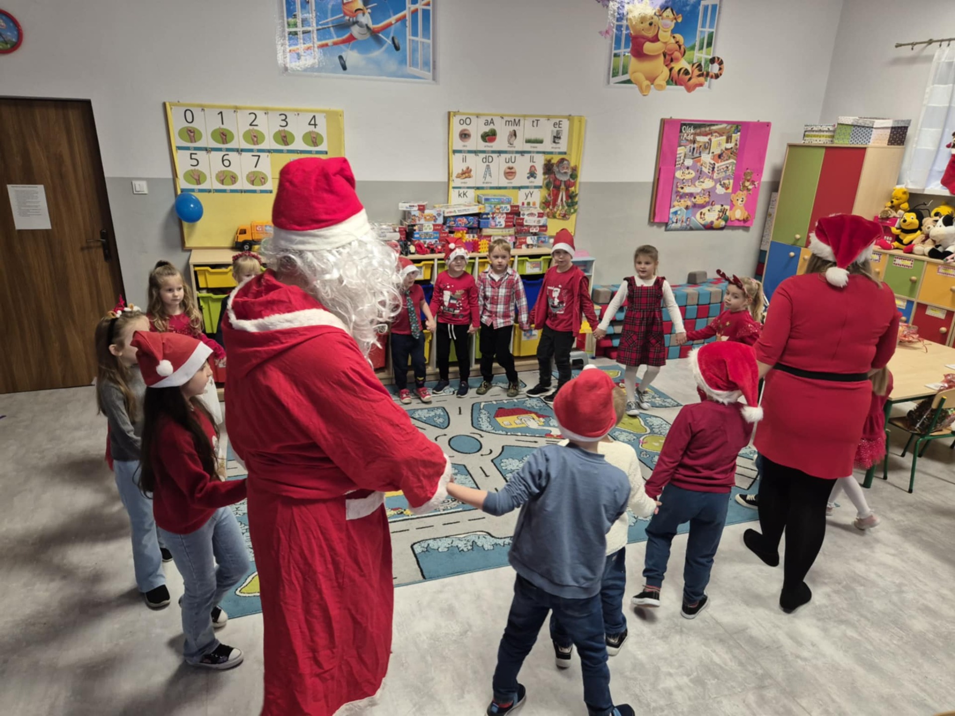 Wizyta Świętego Mikołaja w oddziałach przedszkolnych była pełna radości. Dzieci ucieszyły się na jego przybycie, wspólnie śpiewając wesołe piosenki, a także tańcząc razem z Mikołajem. Na zakończenie tej wspaniałej uroczystości maluchy otrzymały prezenty, które wywołały uśmiechy na ich twarzach i sprawiły, że ten dzień na długo pozostanie w ich pamięci.