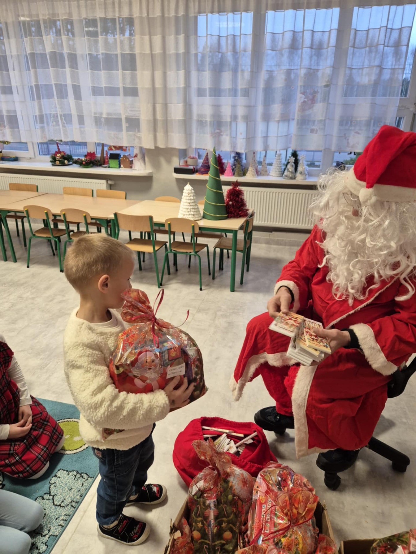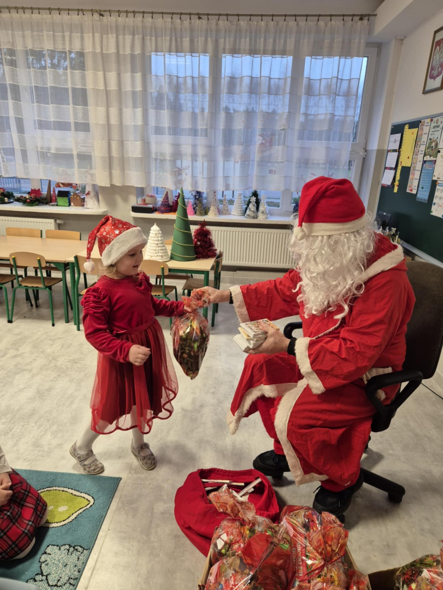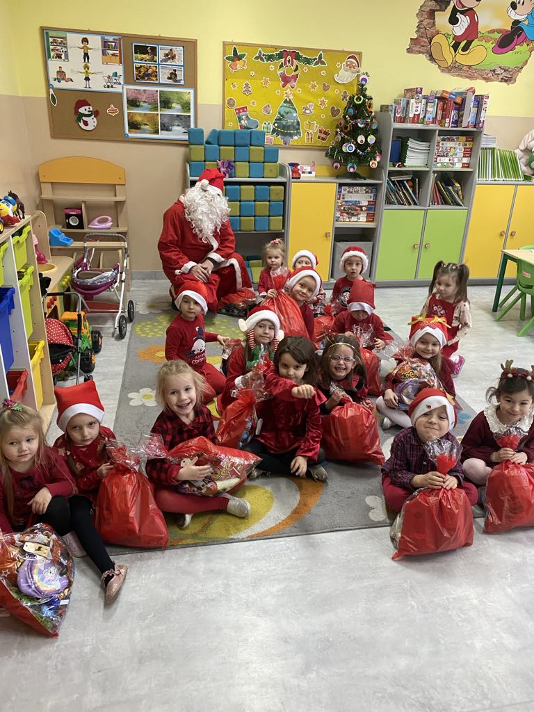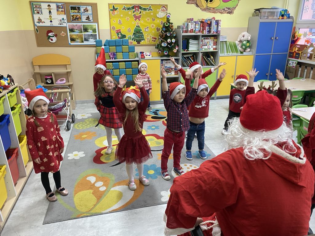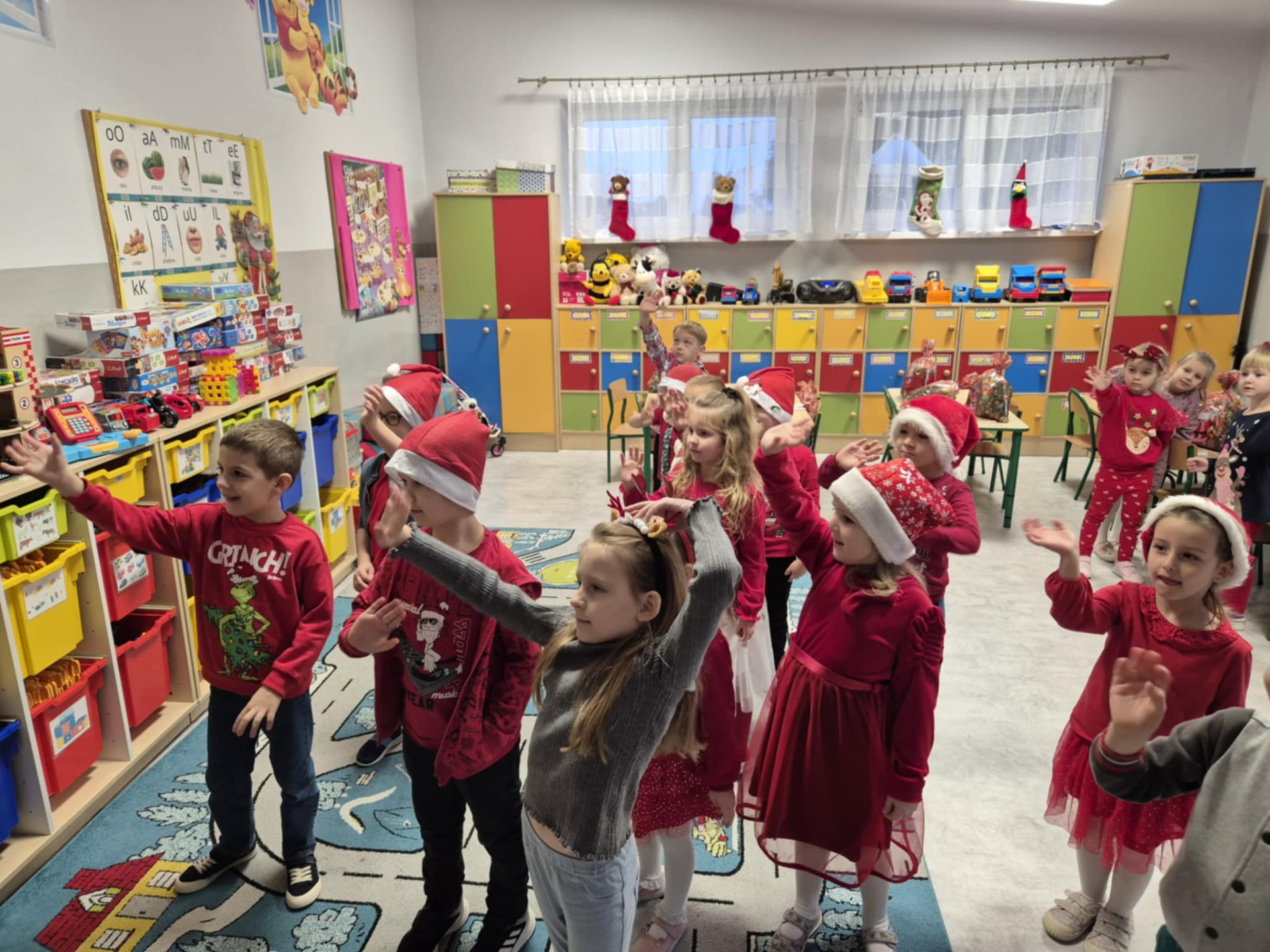 Wizyta Świętego Mikołaja w oddziałach przedszkolnych była pełna radości. Dzieci ucieszyły się na jego przybycie, wspólnie śpiewając wesołe piosenki, a także tańcząc razem z Mikołajem. Na zakończenie tej wspaniałej uroczystości maluchy otrzymały prezenty, które wywołały uśmiechy na ich twarzach i sprawiły, że ten dzień na długo pozostanie w ich pamięci.